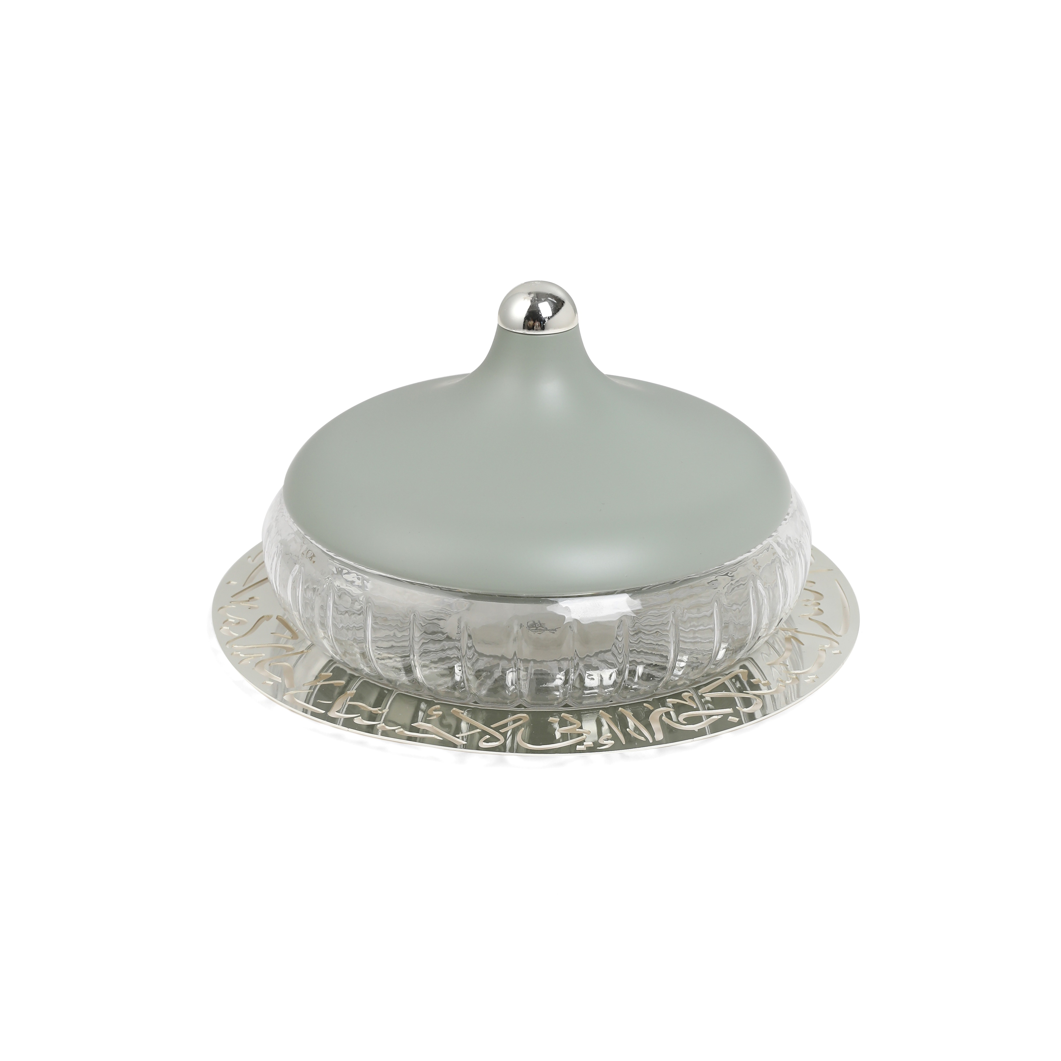 تمرية زجاج حجم كبير من جوار- أخضر فاتح و فضي