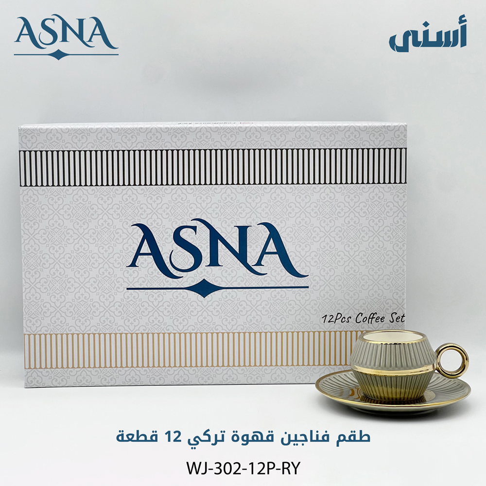 طقم فناجين قهوة تركي 12 قطعة موديل 302 - رمادي