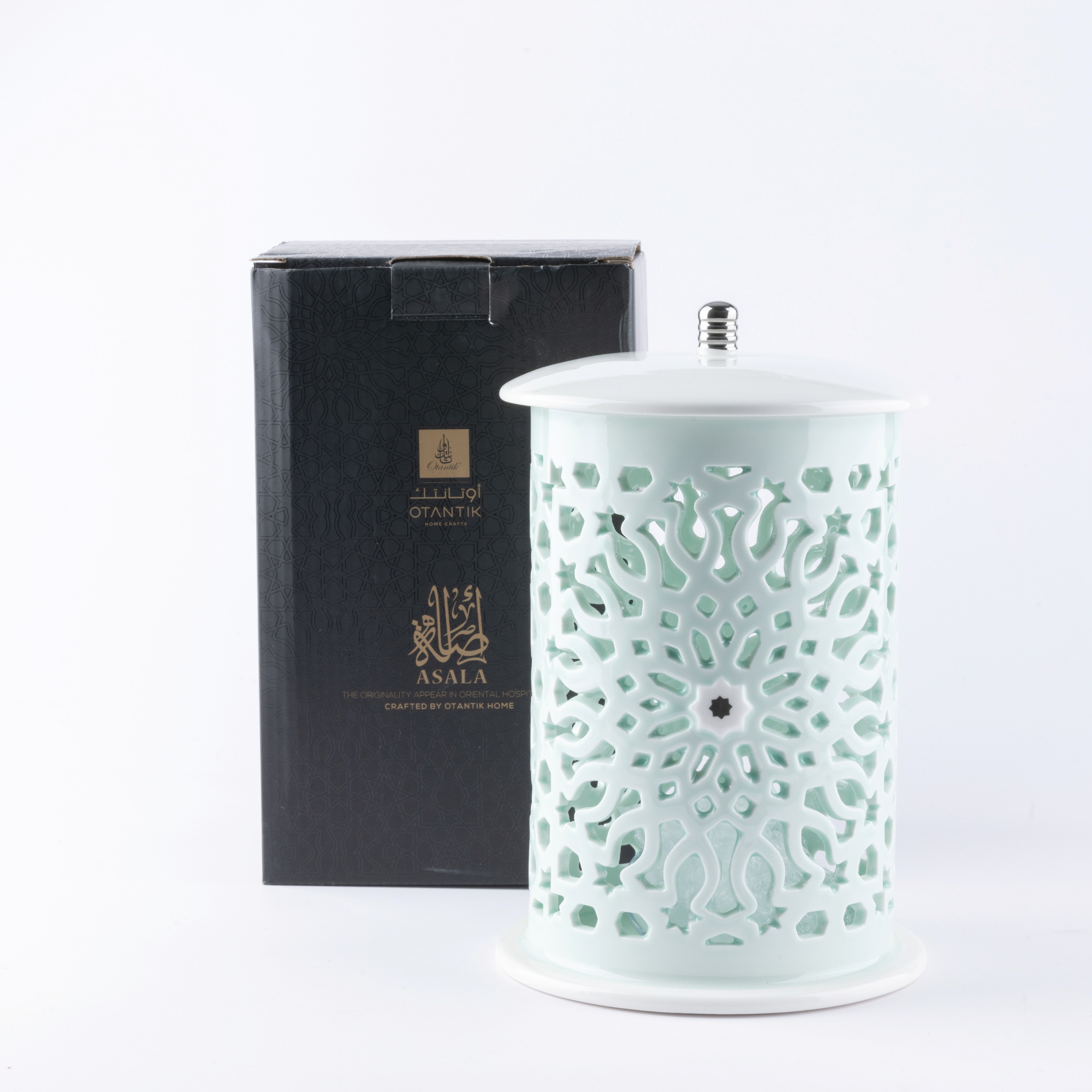 شمعدان الكتروني حجم كبير من أصالة - تركواز و فضي