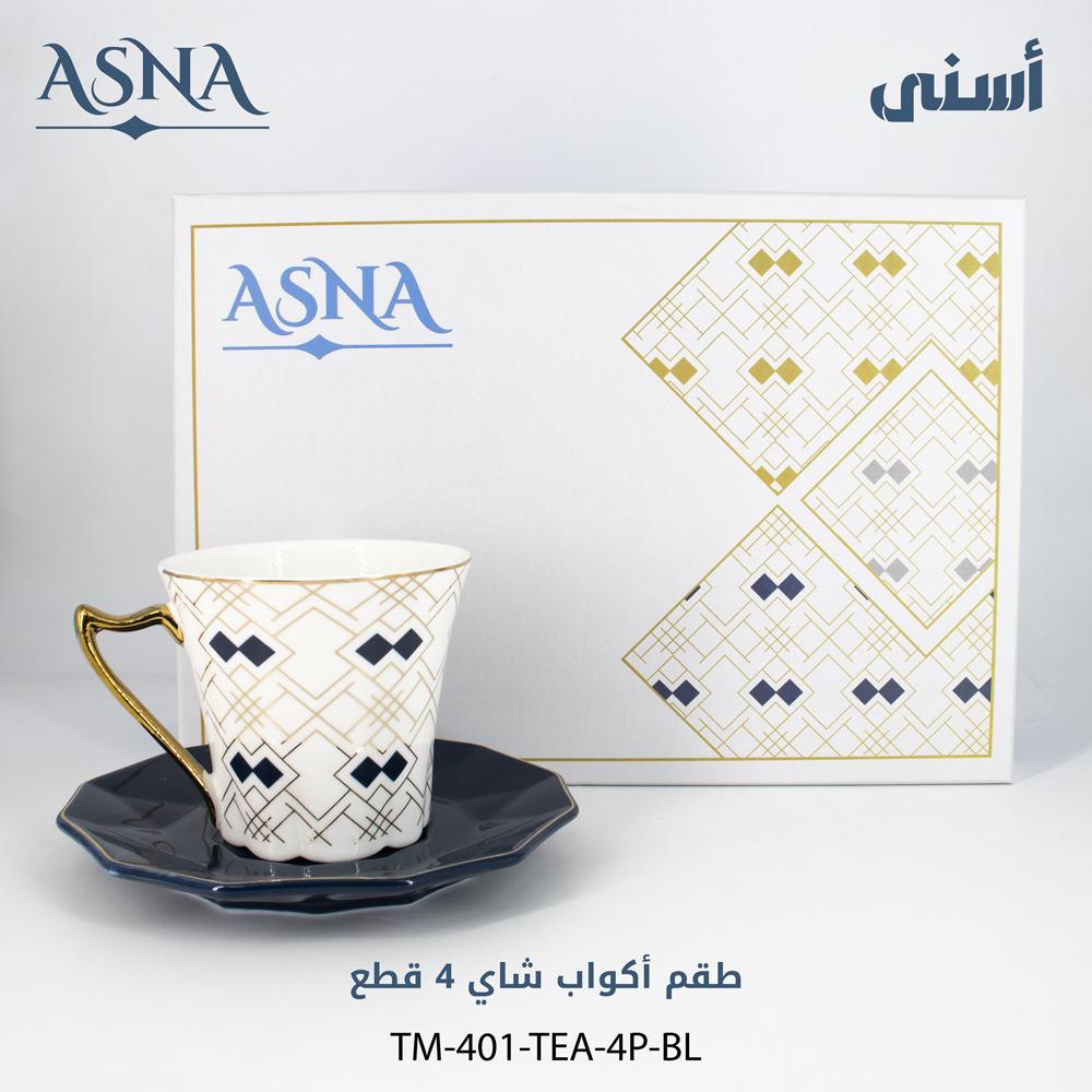 طقم أكواب شاي 4 قطع موديل 401 - أزرق