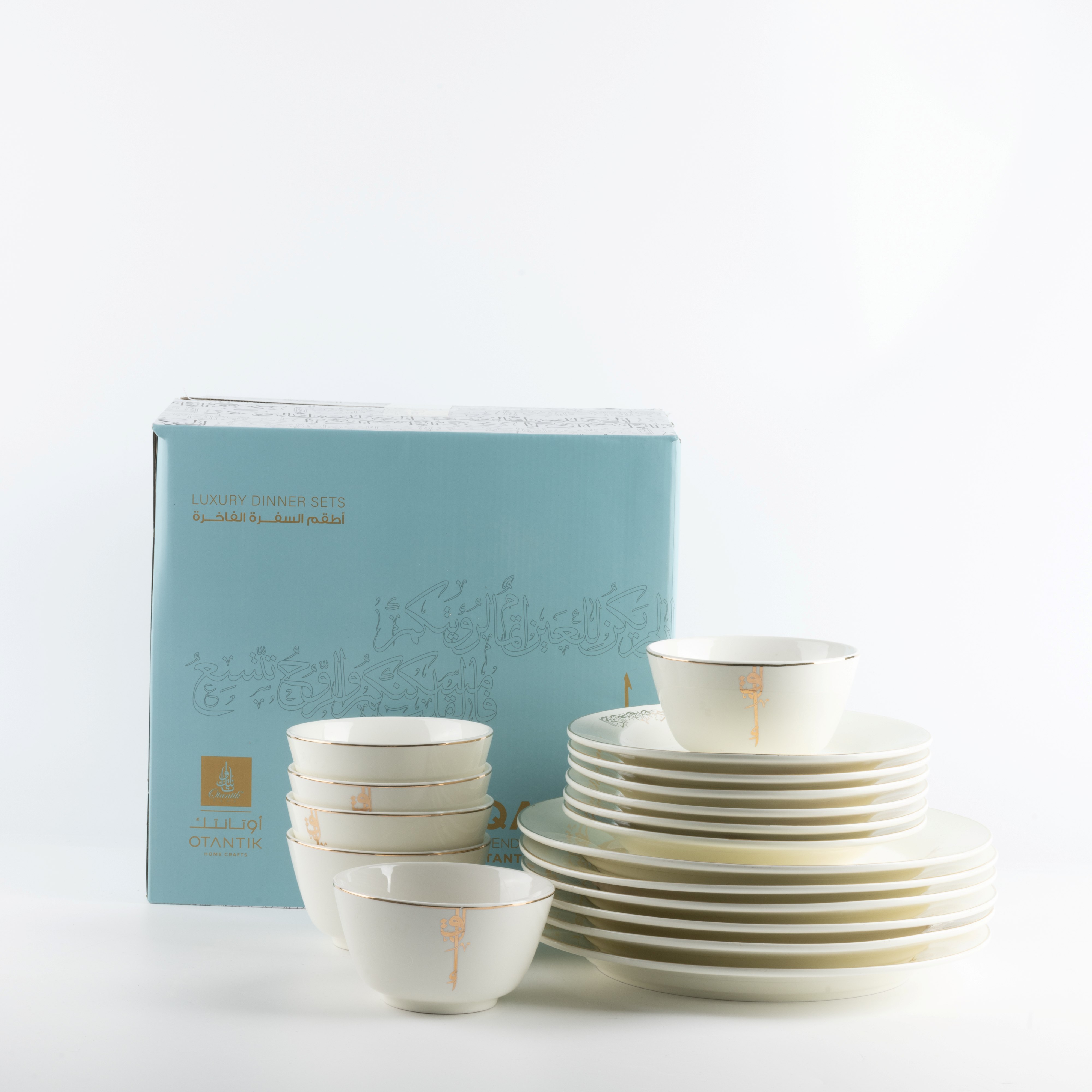 أطقم السفرة 18 قطعة من لقاء - أبيض لؤلؤي و ذهبي