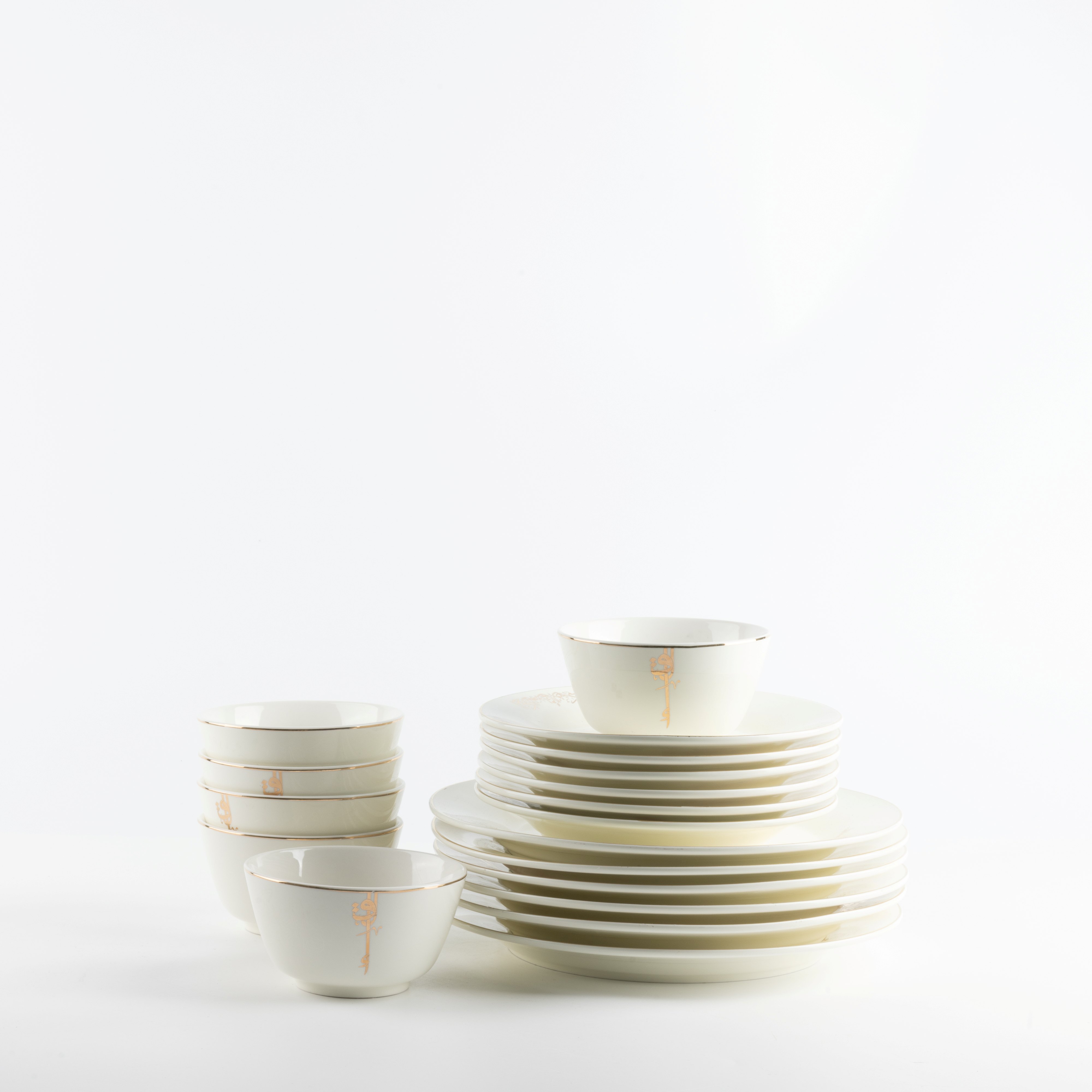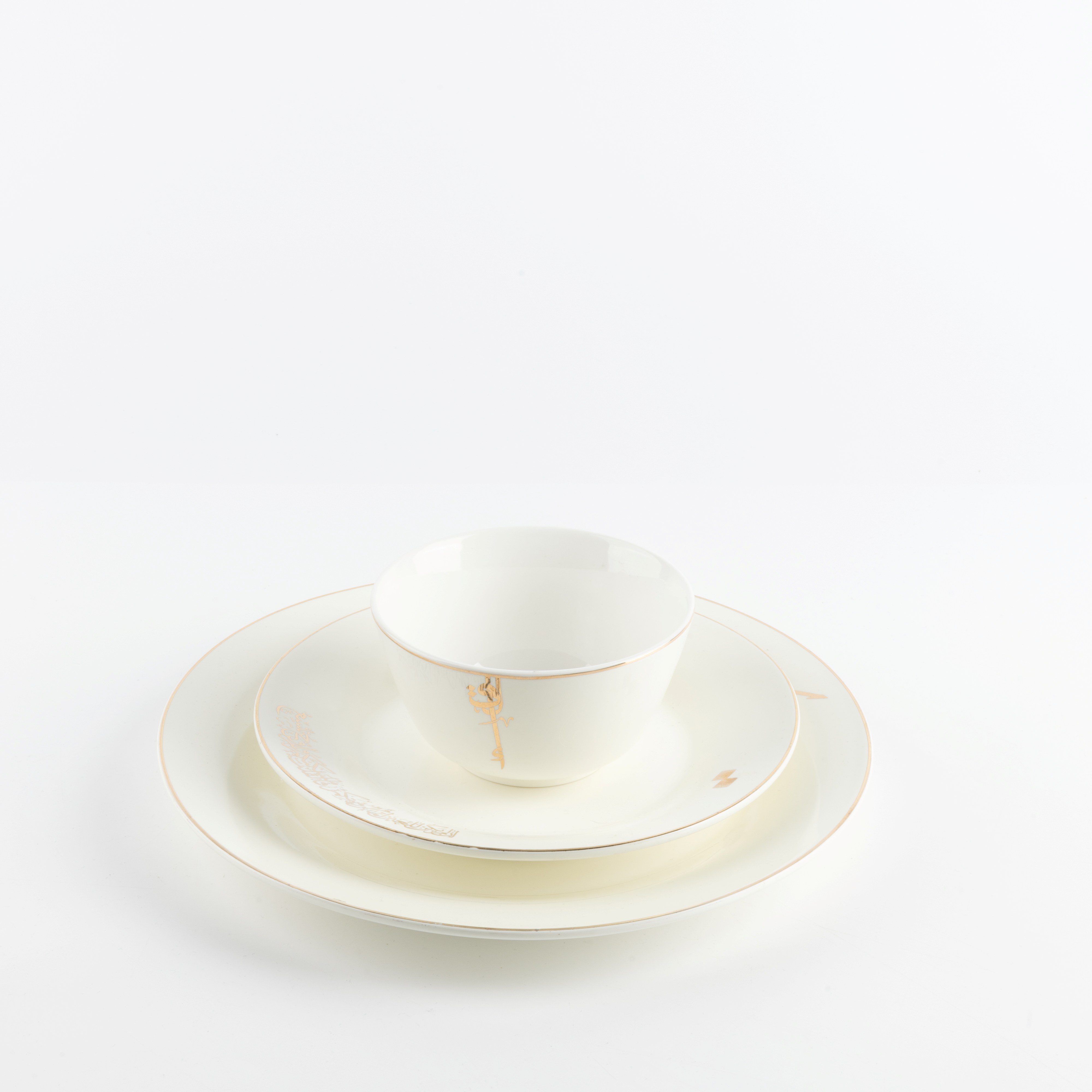 أطقم السفرة 18 قطعة من لقاء - أبيض لؤلؤي و ذهبي