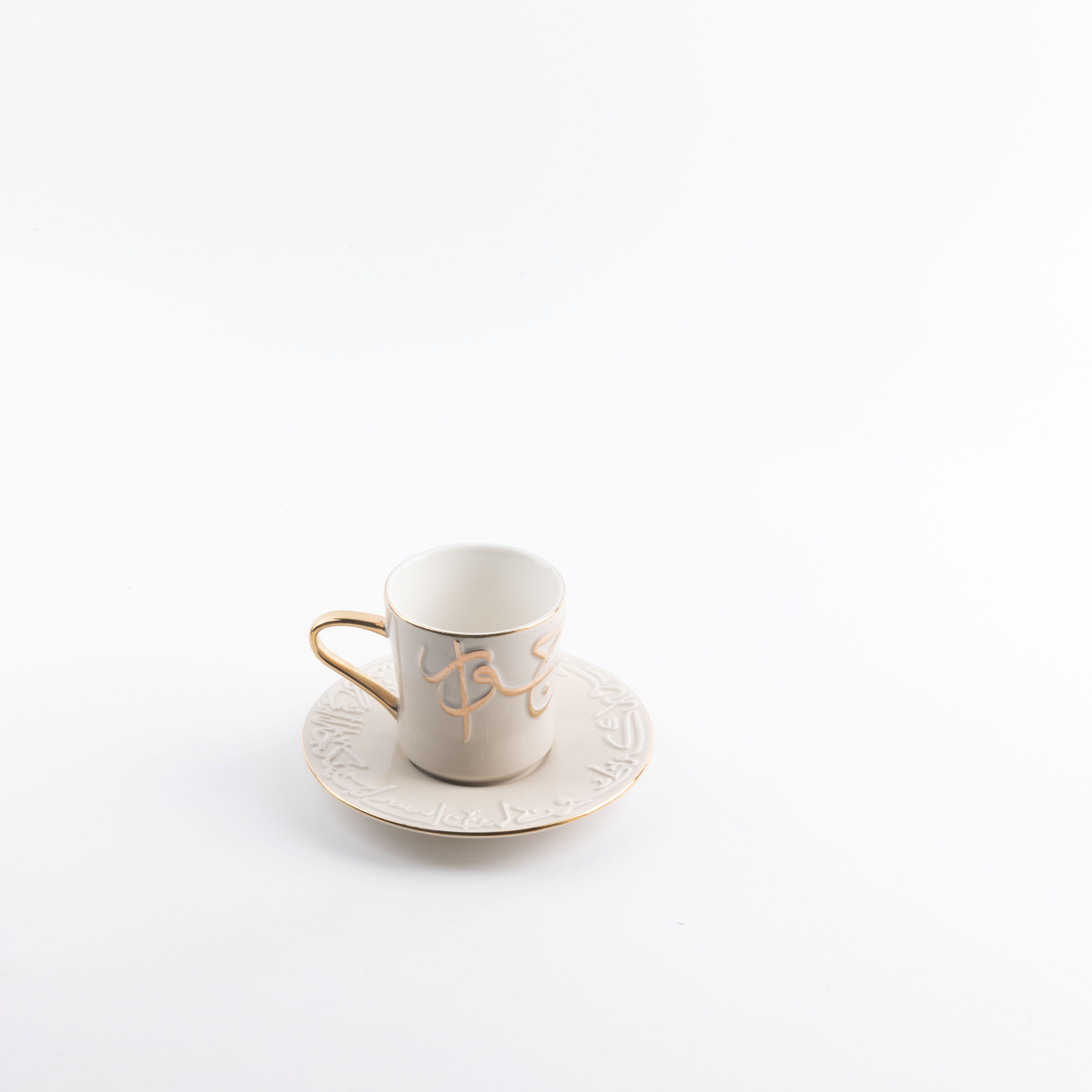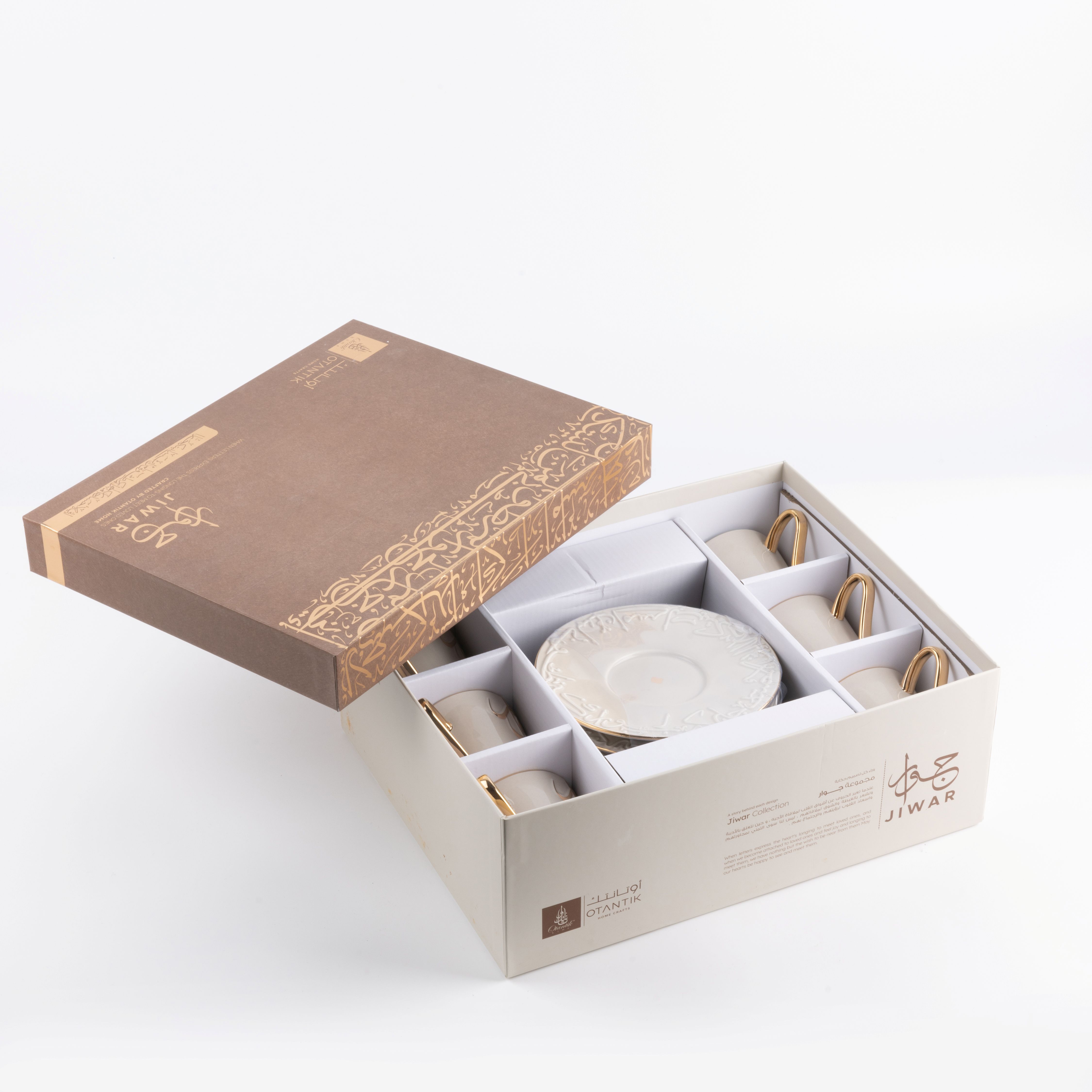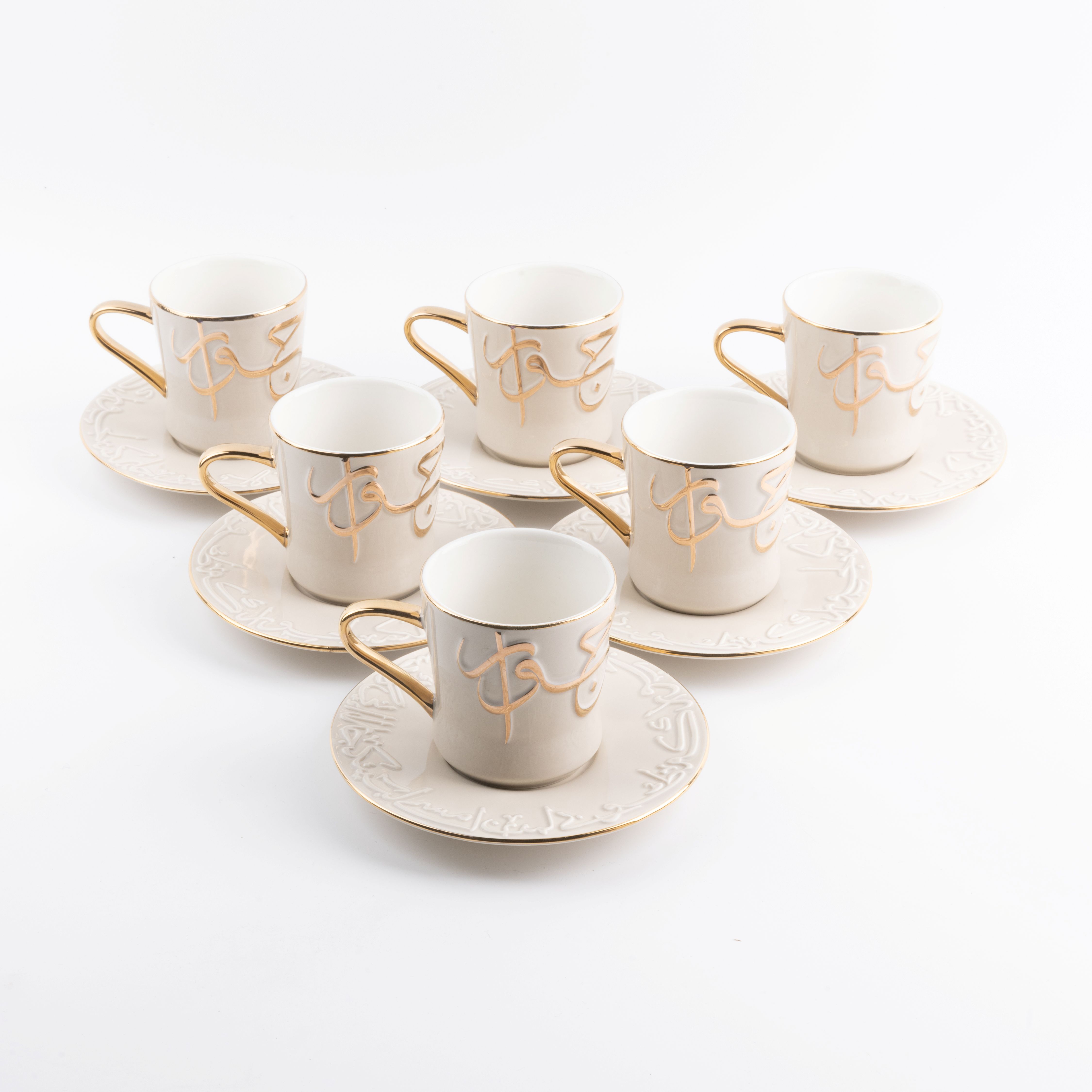 أكواب الشاي البورسلان 12 قطعة من جوار - بيج و ذهبي