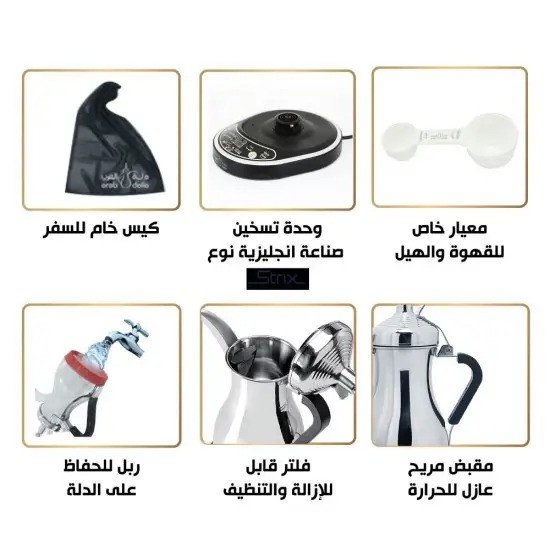 دلة العرب الكهربائية ٦٠٠ مل سلفر تقدم لك تجربة عربية أصيلة بلمسة عصرية. بتصميمها الأنيق والسهل الاستخدام، تتيح لك تحضير القهوة العربية بسرعة وكفاءة. السعة الكبيرة ٦٠٠ مل تكفي لاستضافة العائلة والأصدقاء. دلة القهوة مصنوعة من مواد عالية الجودة تضمن استدامة وأمان الاستخدام، ما يجعلها الإضافة المثالية لأي منزل محب للقهوة