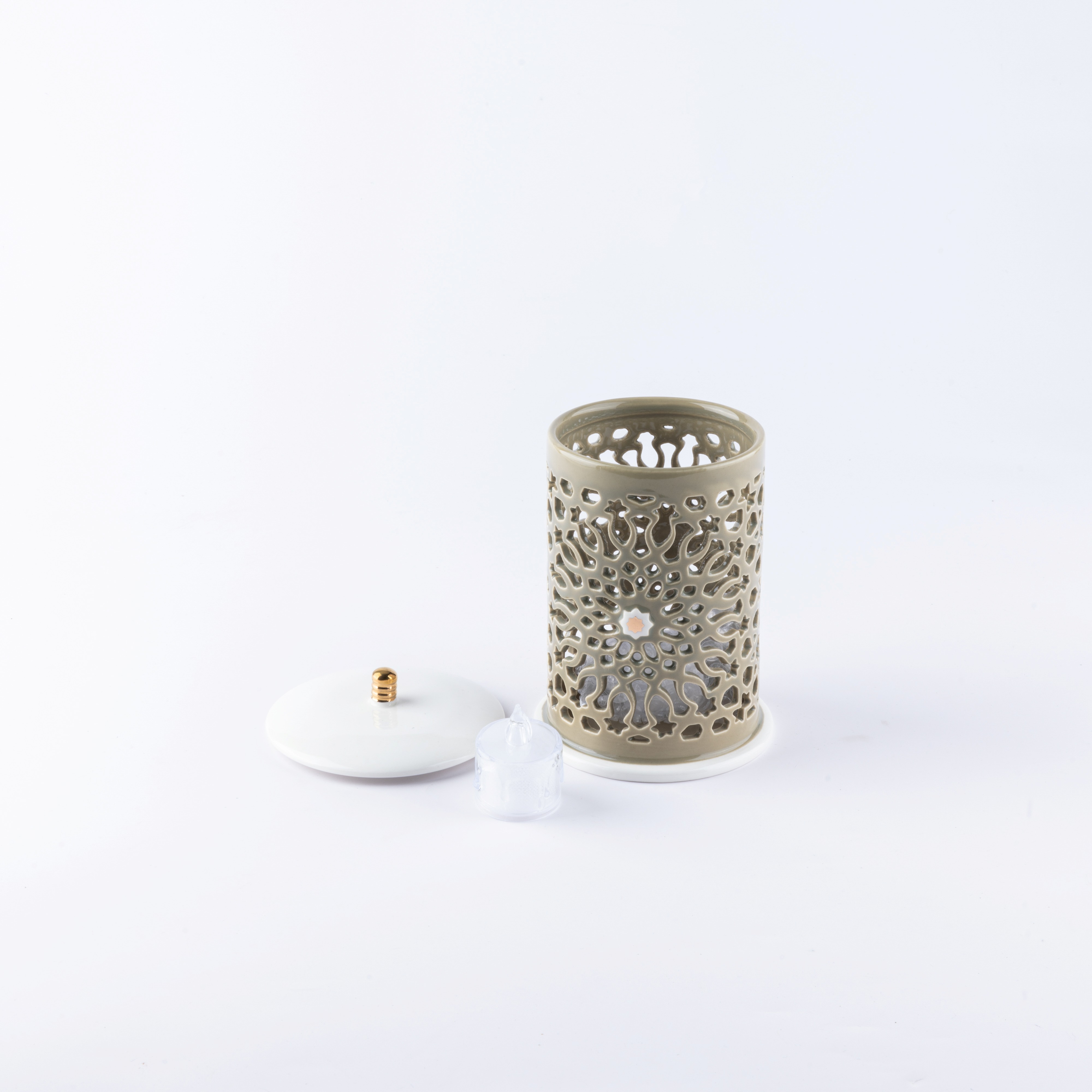 - أما القطعة الثانية فهي غطاء الشمعدان، الذي يتميز بتصميم عصري وأنيق يتناغم بانسجام مع القاعدة، حيث يتيح وضع الشموع بأمان داخل الشمعدان، مع إضافة لمسة رائعة من الجمال والدفء، الغطاء مزين بزخارف الخط العربي التراثية، مما يعزز من جاذبيته ورقيه.