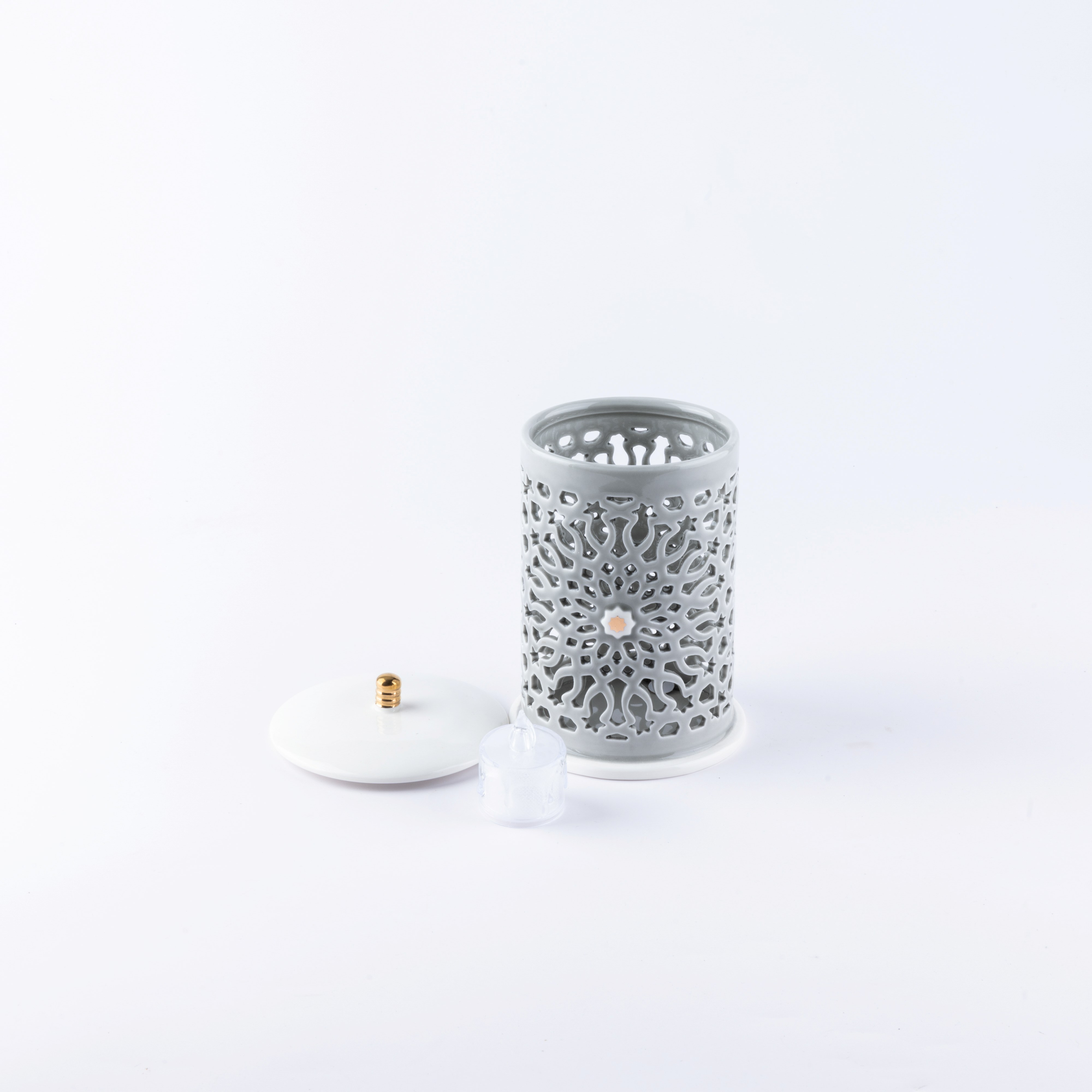 - أما القطعة الثانية فهي غطاء الشمعدان، الذي يتميز بتصميم عصري وأنيق يتناغم بانسجام مع القاعدة، حيث يتيح وضع الشموع بأمان داخل الشمعدان، مع إضافة لمسة رائعة من الجمال والدفء، الغطاء مزين بزخارف الخط العربي التراثية، مما يعزز من جاذبيته ورقيه.