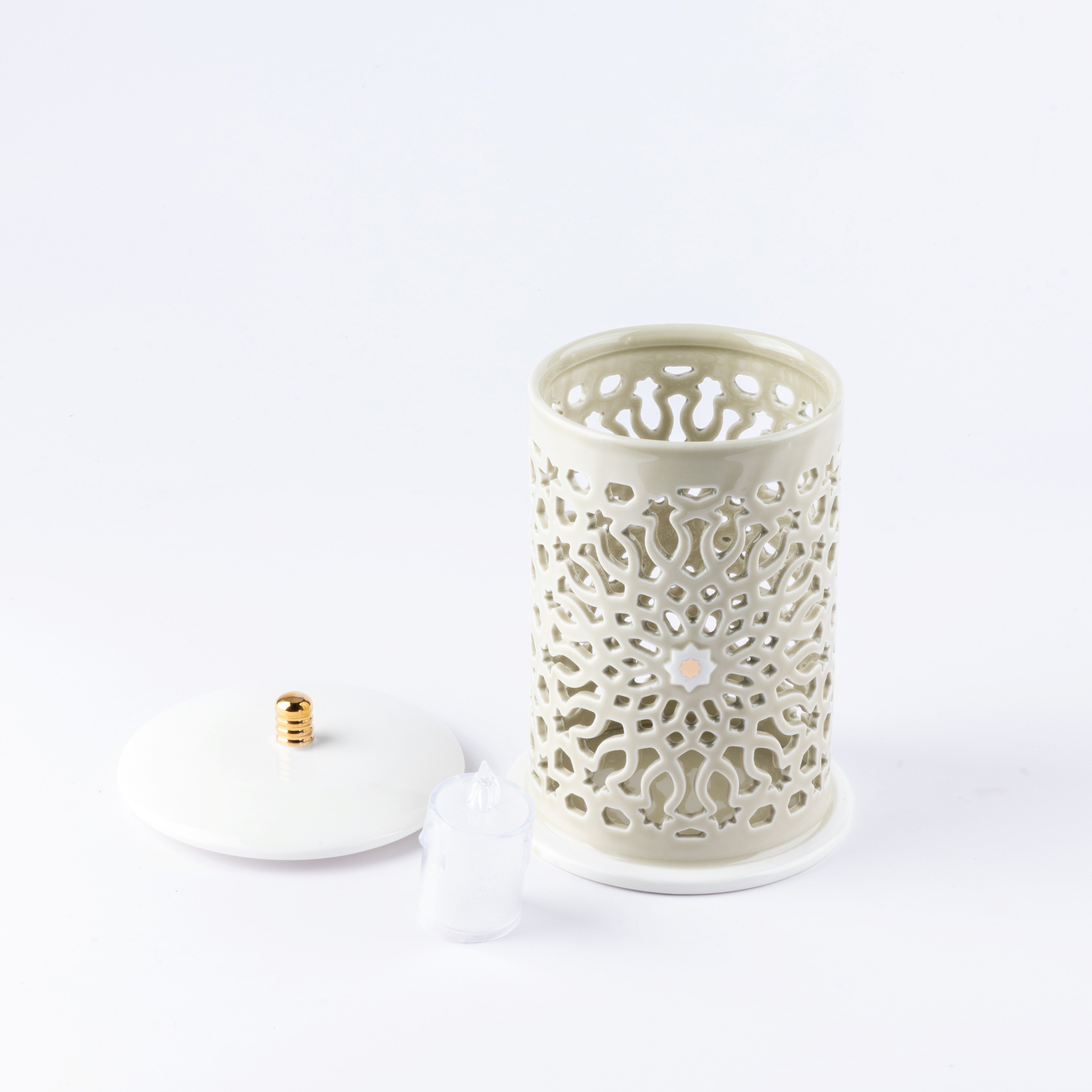 يأتي هذا الشمعدان الإلكتروني من أصالة بتصميم عصري ومميز، حيث يتسم بالفخامة والدقة، فهو مصنوع من البورسلان الفاخر، ليمنحك إضاءة هادئة وأجواء دافئة في كل زاوية، ويتألف الشمعدان من قطعتين رئيسيتين: الجسم الفاخر المصنوع من البورسلان المتقن والغطاء المميز الذي يعزز من أناقة التصميم، وبفضل حجمه المثالي وخفته، يعتبر هذا الشمعدان الخيار المثالي لتزيين أي مساحة سواء في المنزل أو المكتب، ليضيف لمسة فنية تجمع بين الأناقة والراحة.