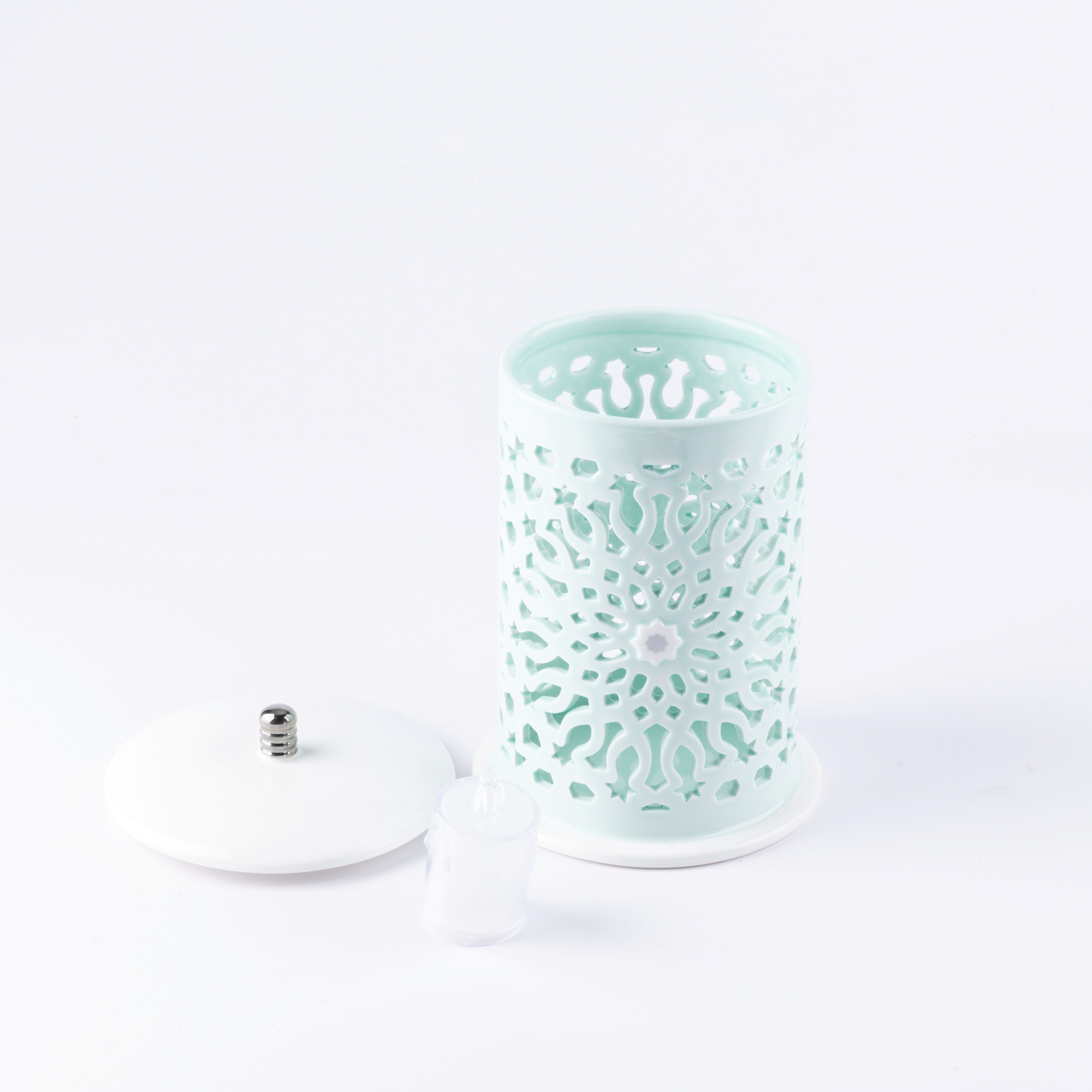 يأتي هذا الشمعدان الإلكتروني من أصالة بتصميم عصري ومميز، حيث يتسم بالفخامة والدقة، فهو مصنوع من البورسلان الفاخر، ليمنحك إضاءة هادئة وأجواء دافئة في كل زاوية، ويتألف الشمعدان من قطعتين رئيسيتين: الجسم الفاخر المصنوع من البورسلان المتقن والغطاء المميز الذي يعزز من أناقة التصميم، وبفضل حجمه المثالي وخفته، يعتبر هذا الشمعدان الخيار المثالي لتزيين أي مساحة سواء في المنزل أو المكتب، ليضيف لمسة فنية تجمع بين الأناقة والراحة.