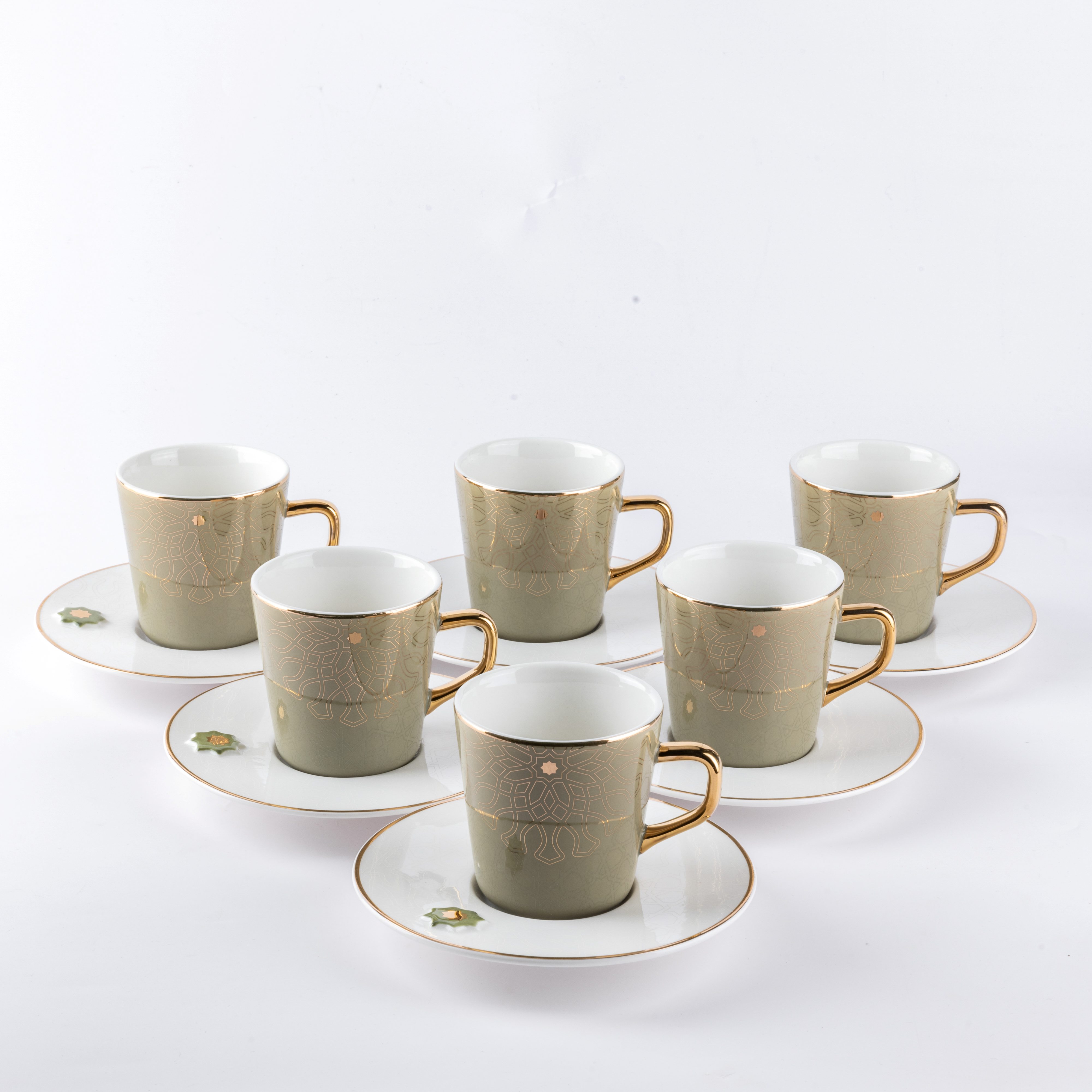 طقم أكواب الشاي 12 قطعة من أصالة -أخضر وذهبي