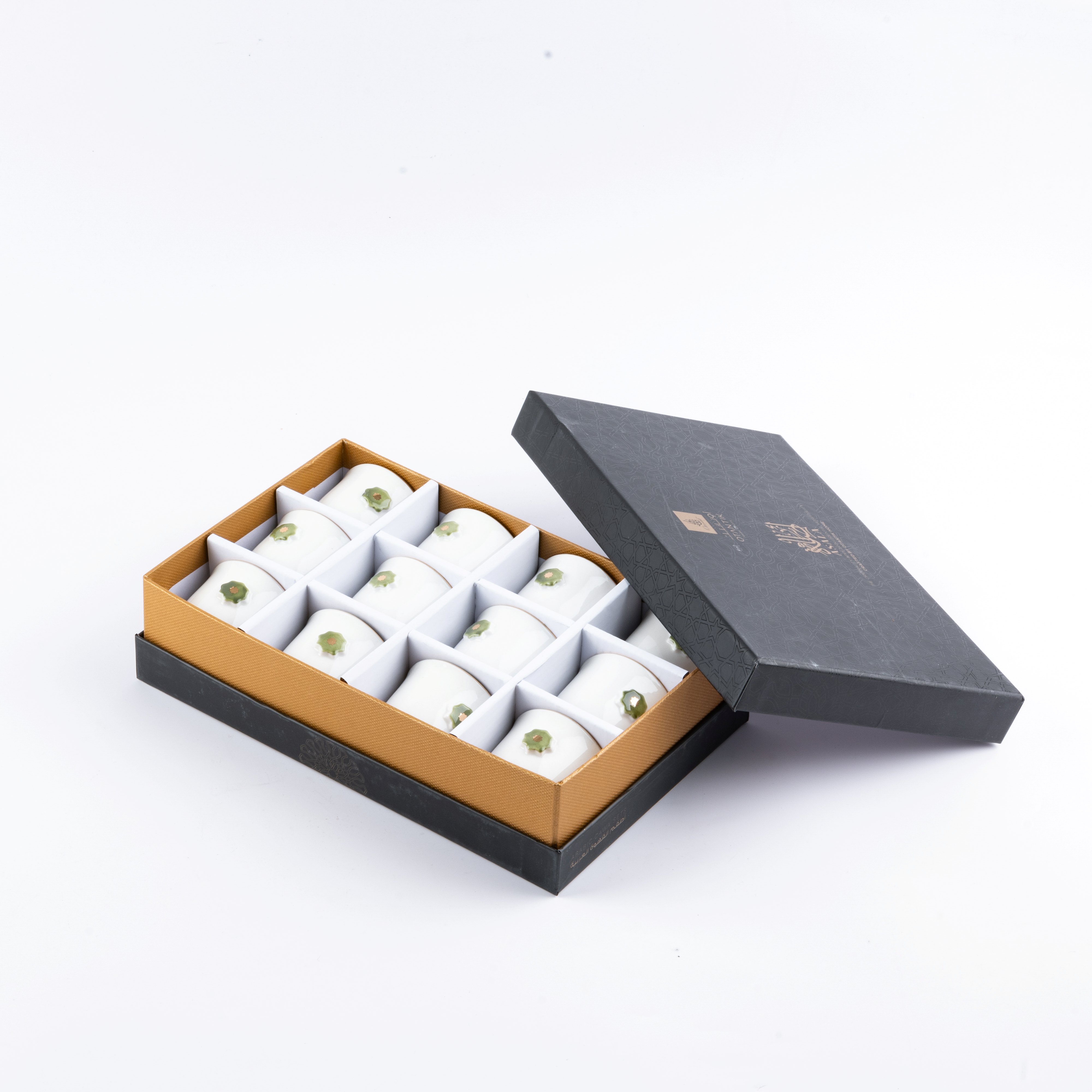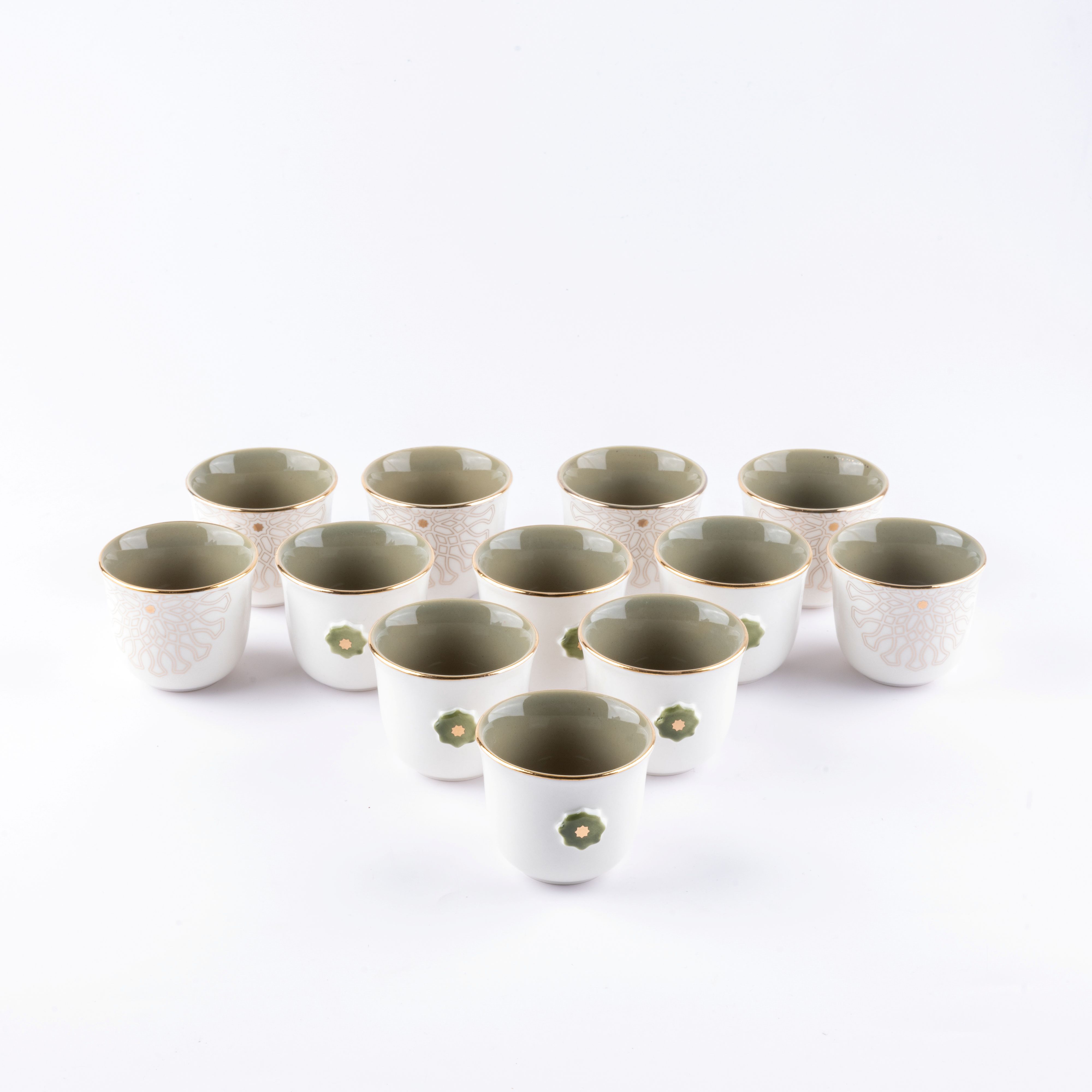 طقم القهوة العربية 12 قطعة من أصالة - أخضر و ذهبي