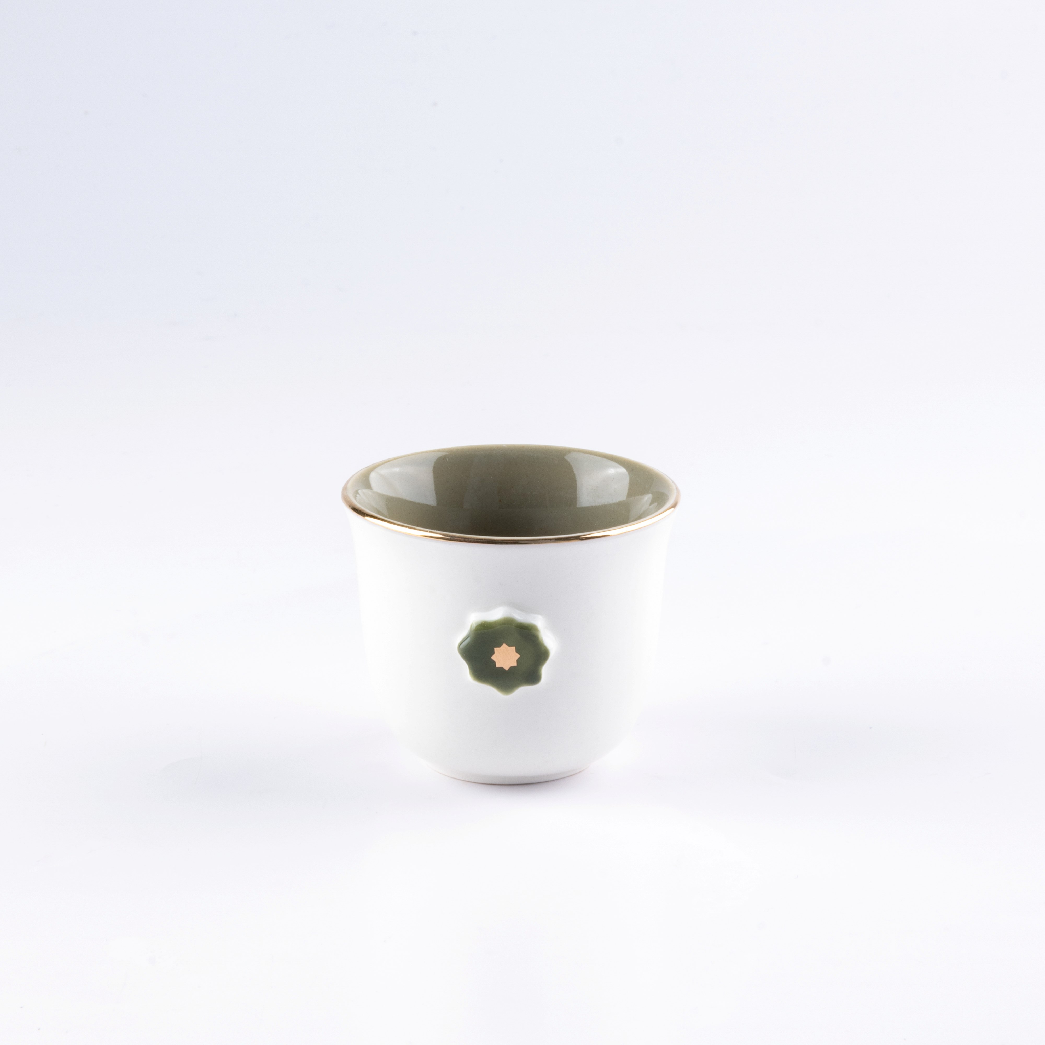 - الفنجان مزخرف بمجموعة من النقوشات العربية الإسلامية التي تعبر عن عبق التراث العربي.