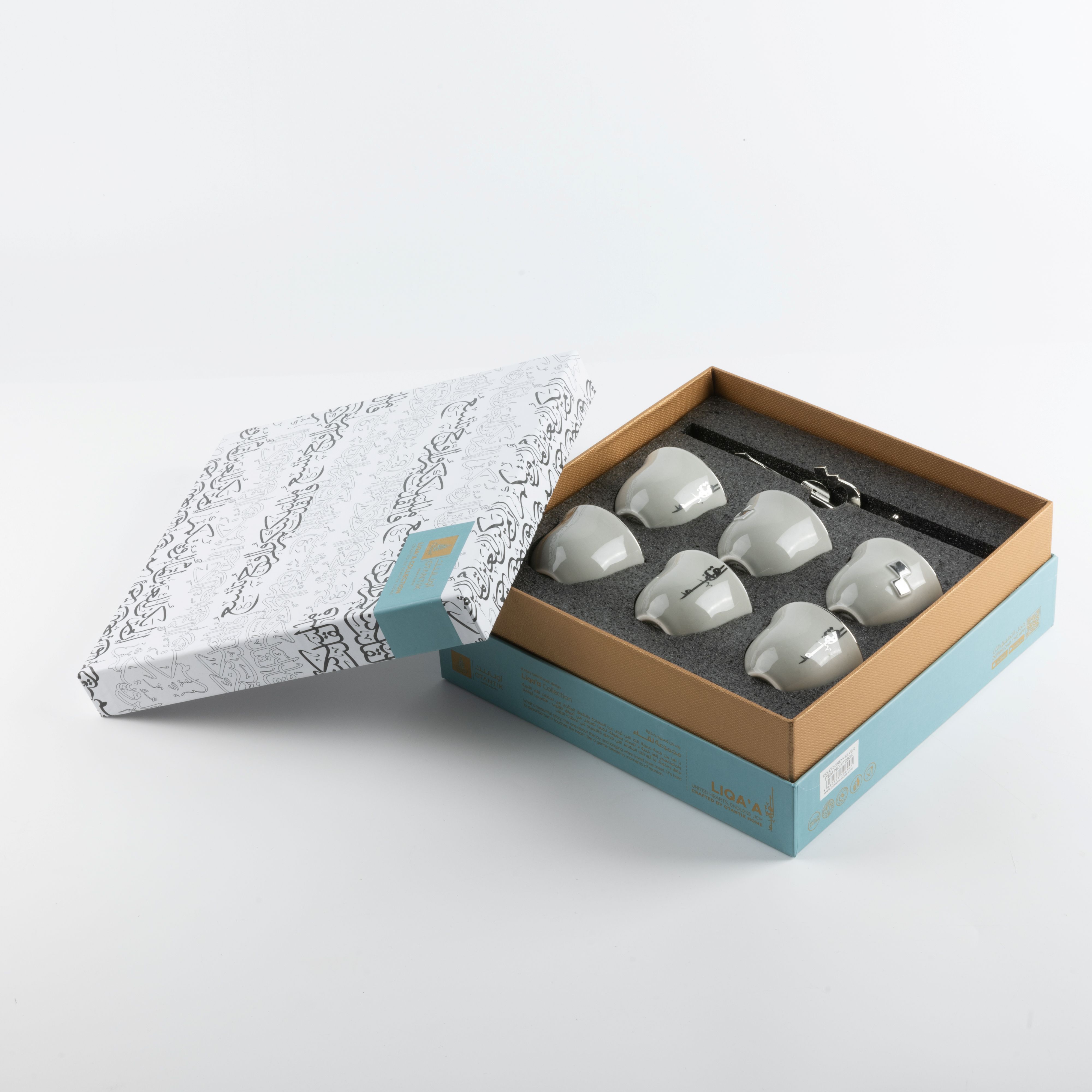 طقم القهوة العربية 7 قطع من لقاء - رمادي و فضي