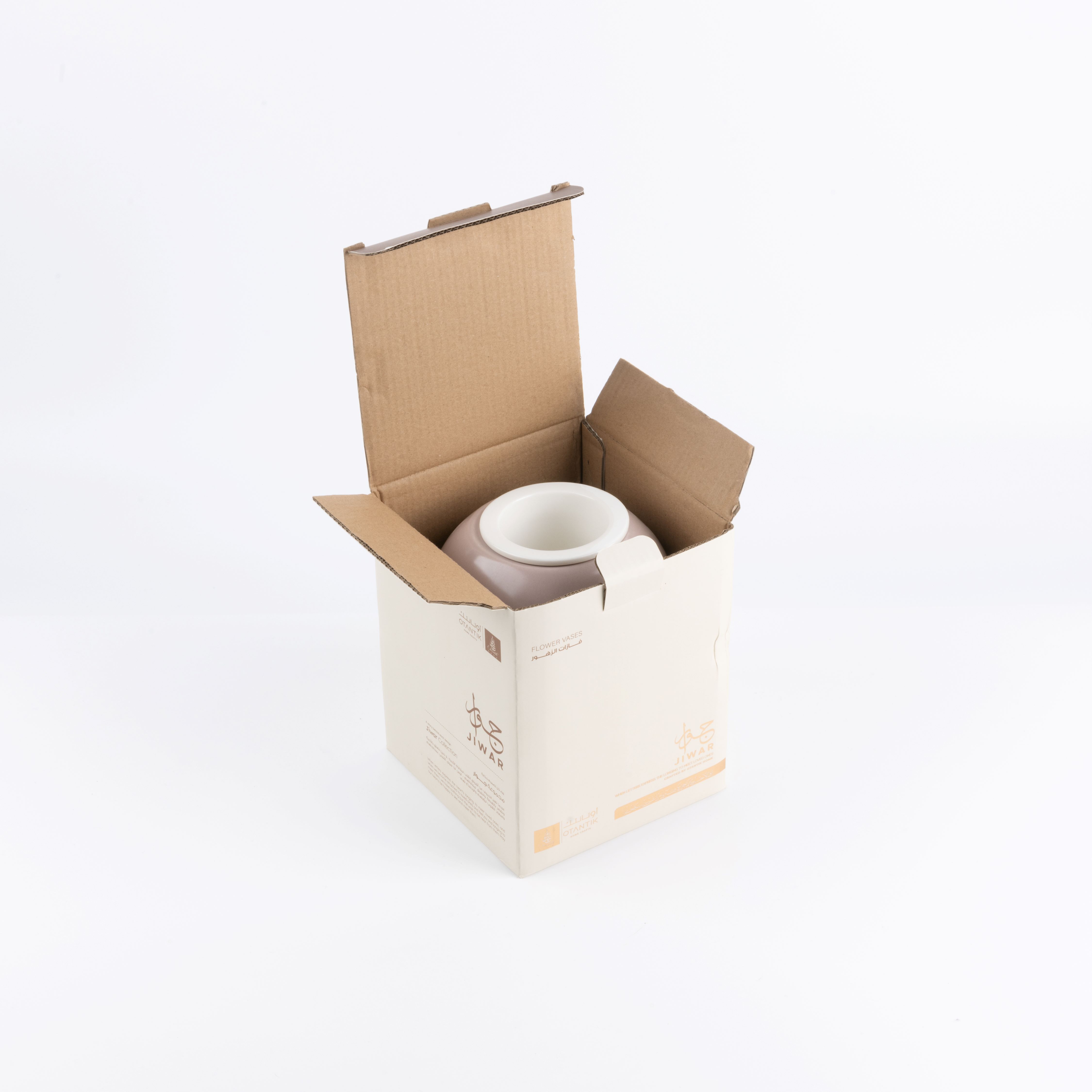 فازة فريدة لوضع الزهور، مصممة بشكل أنيق من جوار، ومزينة بالخط العربي الجميل الذي يحمل عبارات مميزة، تتسم هذه الفازة بحجمها المثالي، مما يجعلها مناسبة تمامًا لعرض باقة من الزهور لتجميل منزلك.