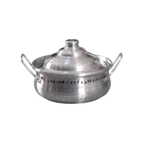 قدر بعلاق مسطح منقوش من الجريوي. متوفر في 4 أحجام.