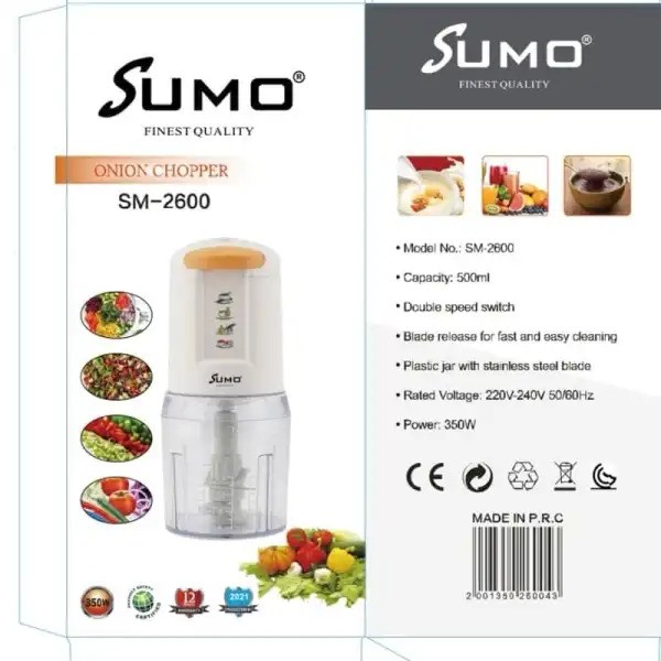 مفرمة البصل سومو بقوة 350 واط هي الرفيق المثالي في مطبخك لتقطيع وفرم البصل بسهولة وسرعة. تعمل بقوة عالية لتلبية كافة احتياجات الطهي بكفاءة. تصميمها المدمج يجعلها مناسبة لجميع مساحات الطهي، بينما تضمن لك الأداء المتفوق في كل مرة. اجعل إعداد الوجبات أسرع وأسهل مع هذه المفرمة القوية.