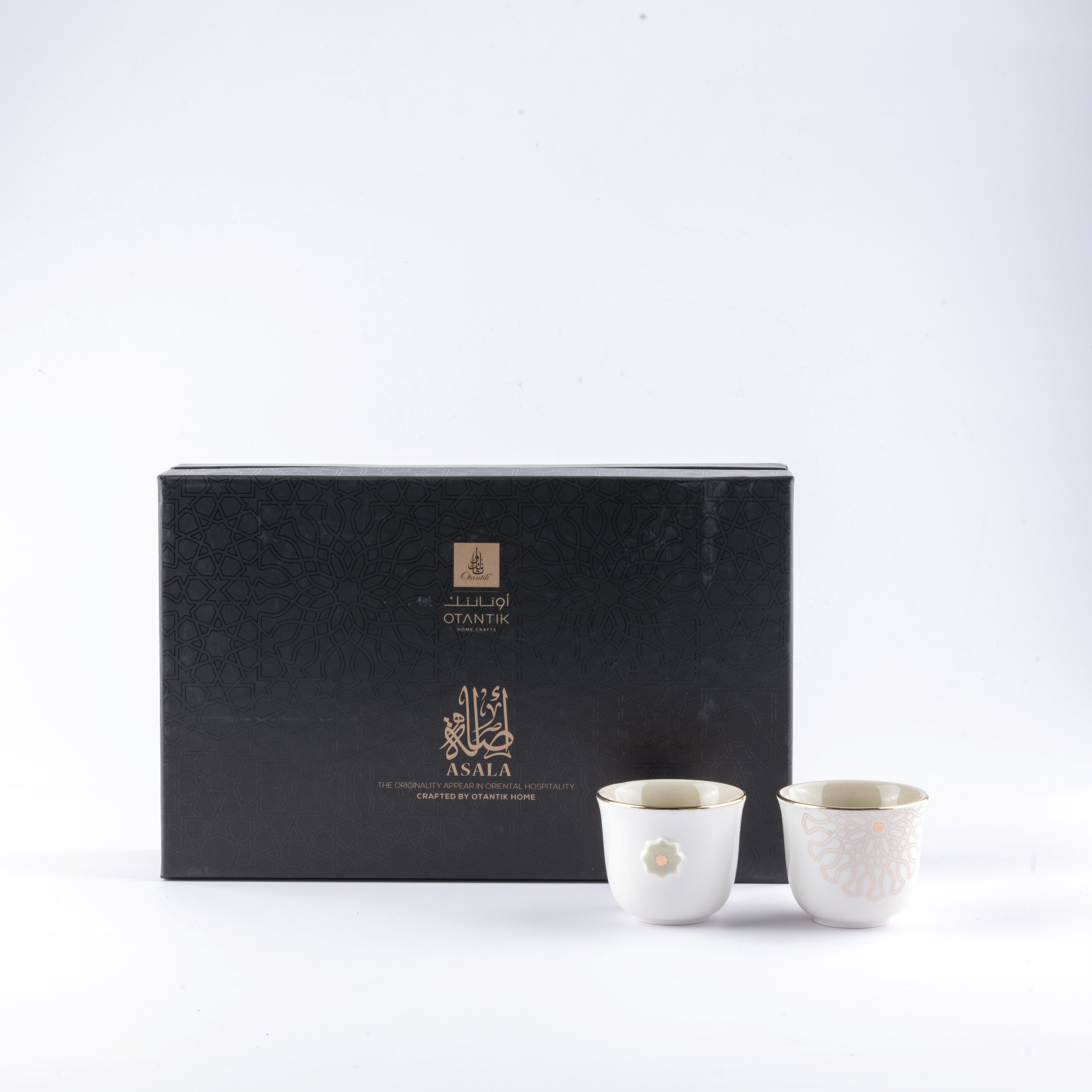 طقم القهوة العربية 12 قطعة من أصالة - بيج و ذهبي