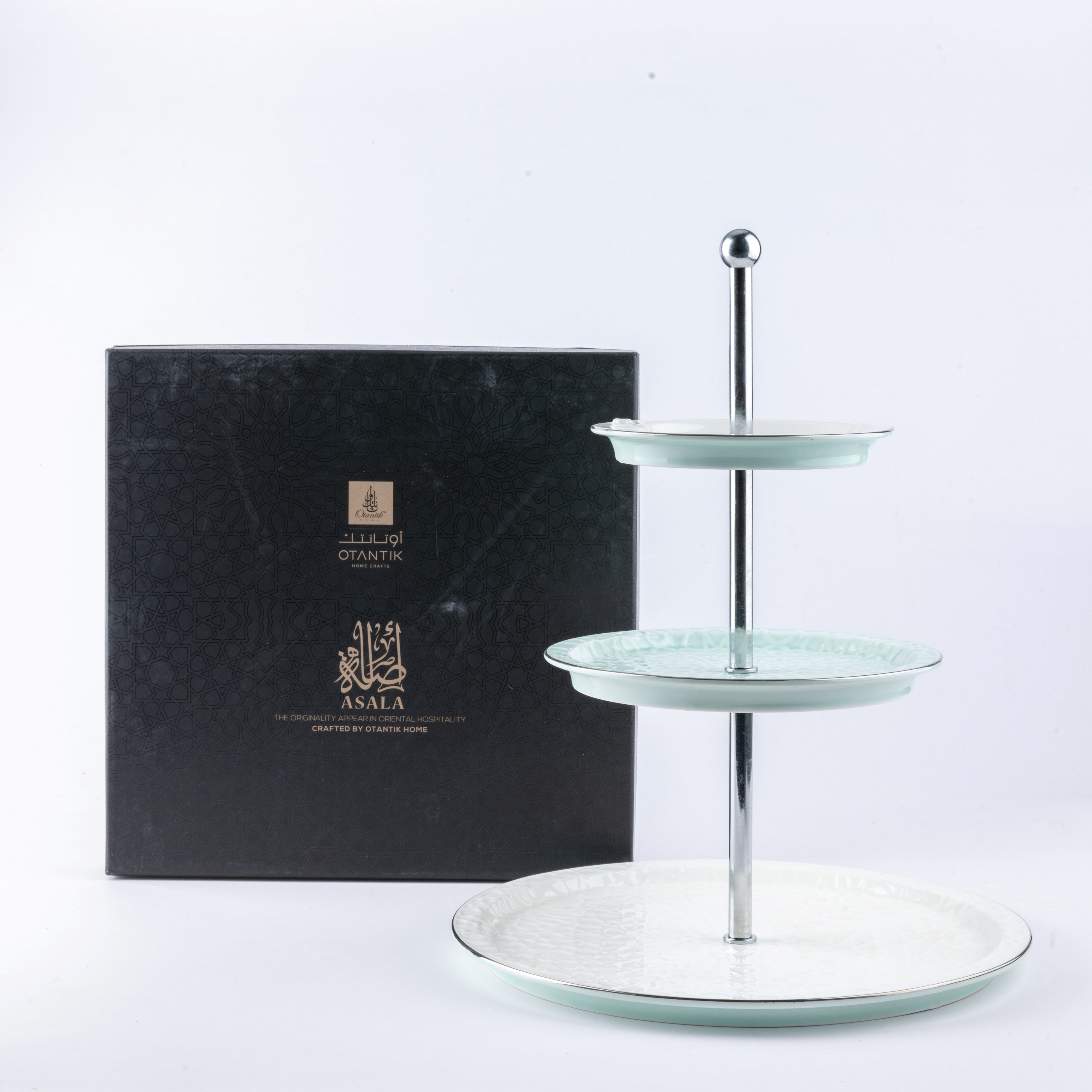 ستاند تقديم 3 طبقات من أصالة - تركواز وفضي