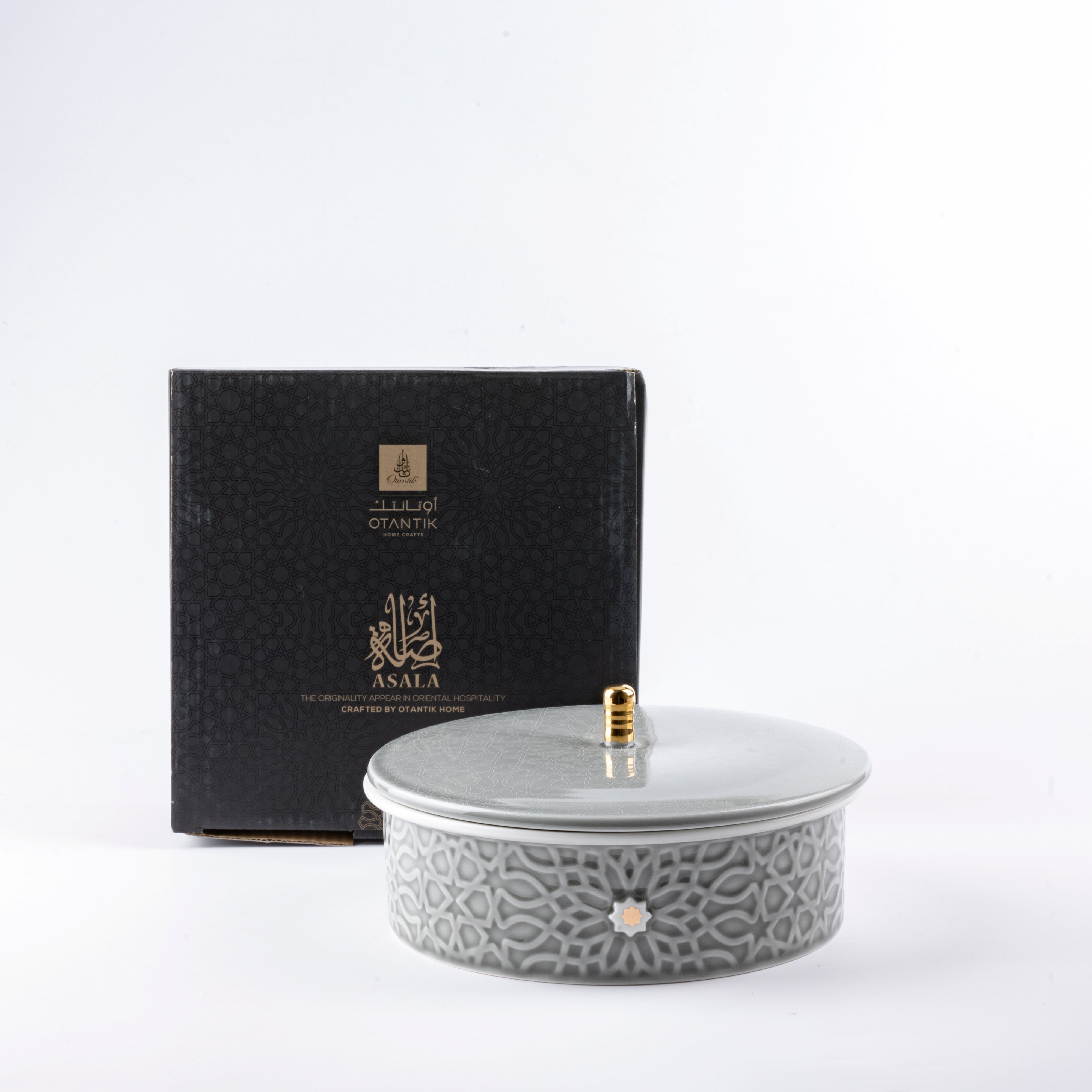 وعاء تقديم سلطة من أصالة - رمادي و ذهبي