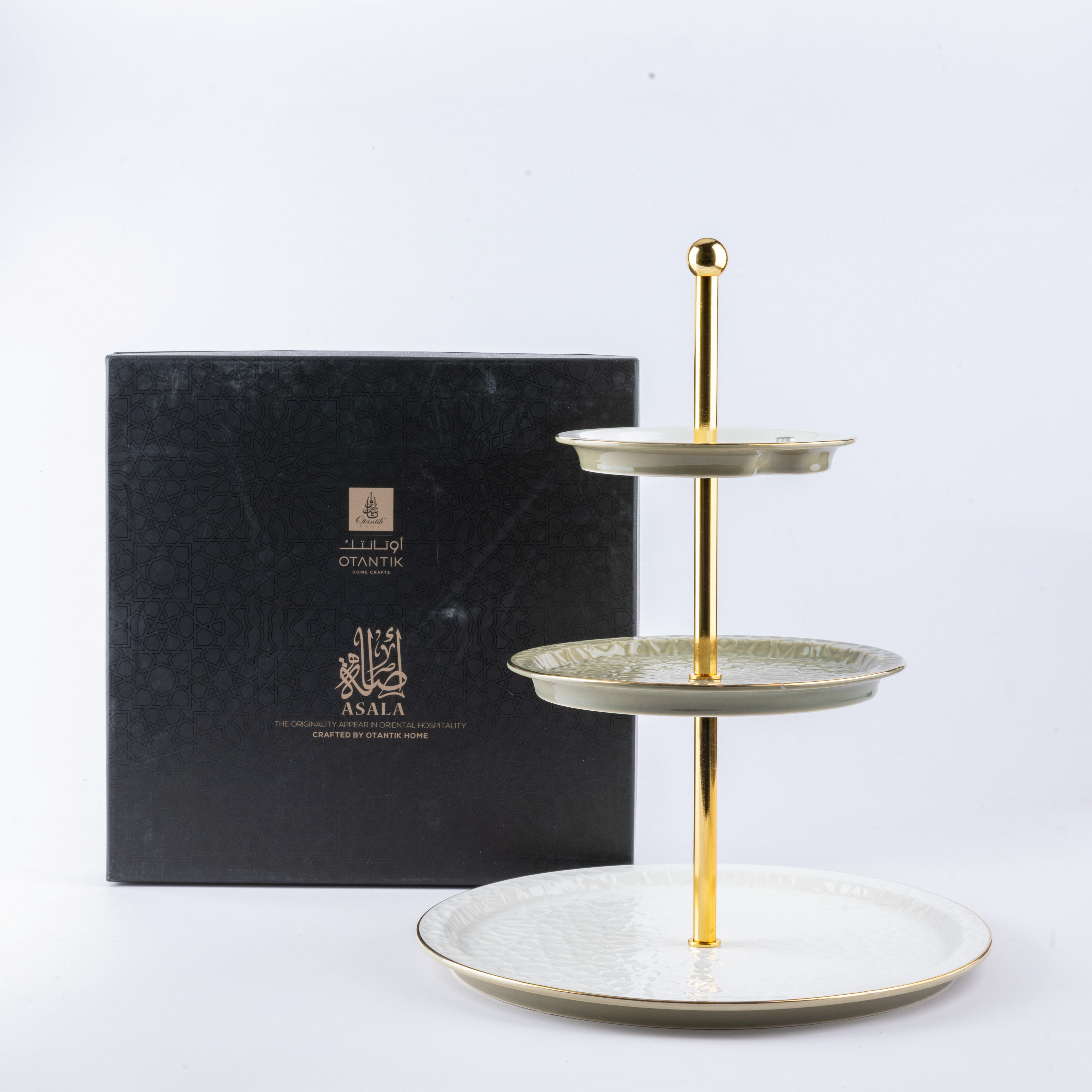ستاند تقديم 3 طبقات من أصالة - أخضر و ذهبي