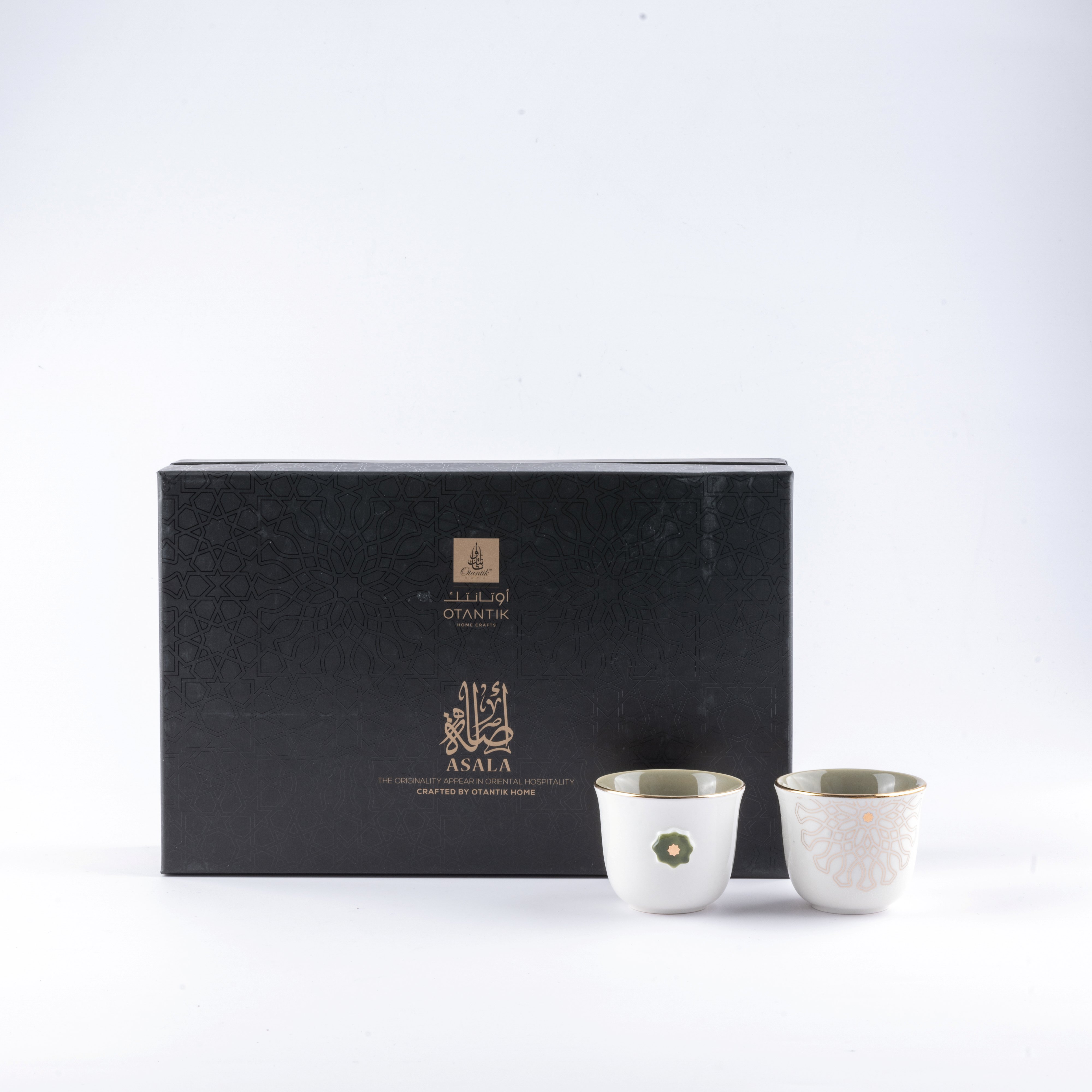 طقم القهوة العربية 12 قطعة من أصالة - أخضر و ذهبي