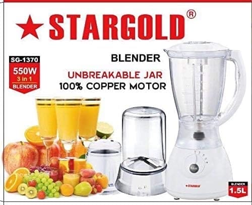 خلاط ستارجولد 550 وات وعاء غير قابل للكسر بمحرك نحاسي 100%
