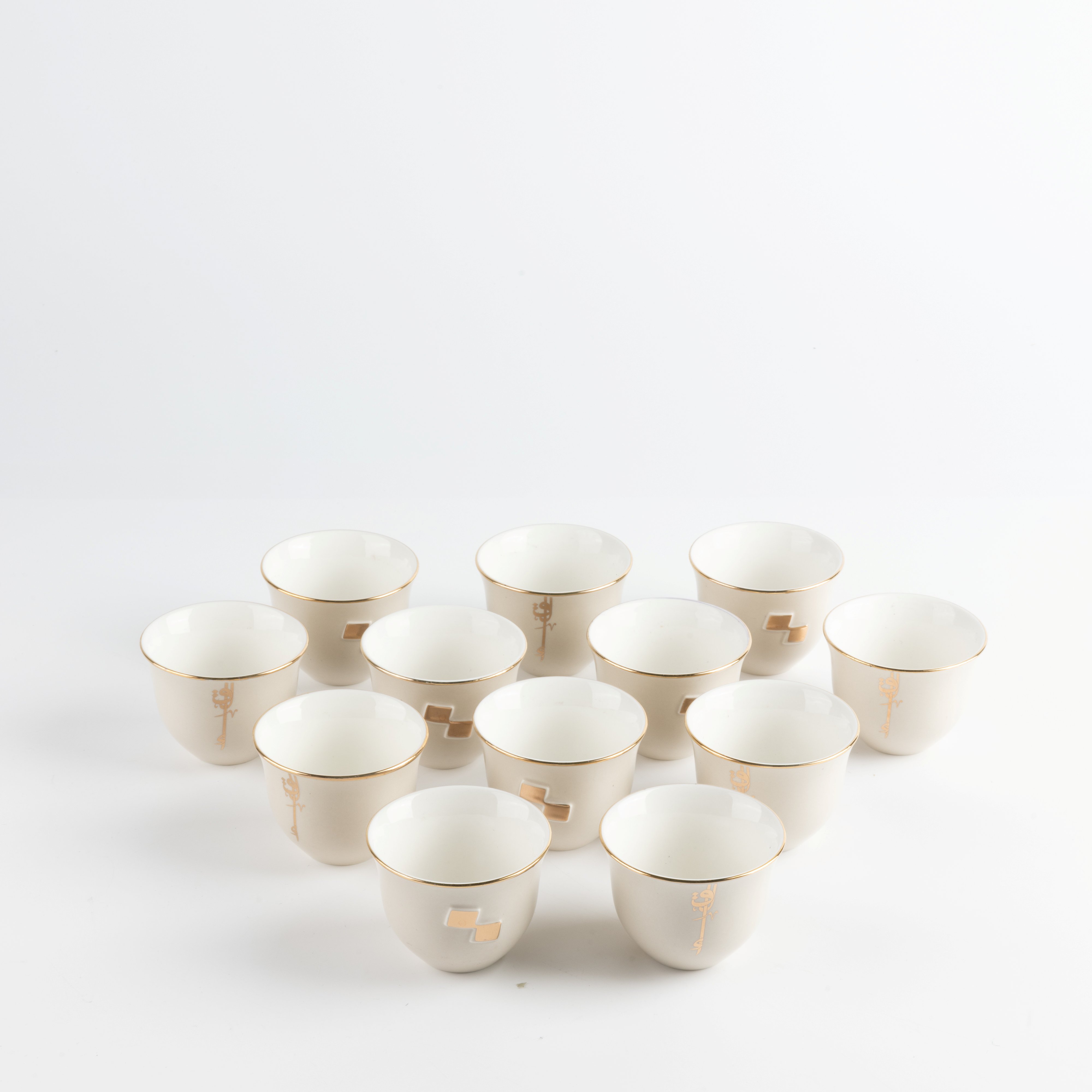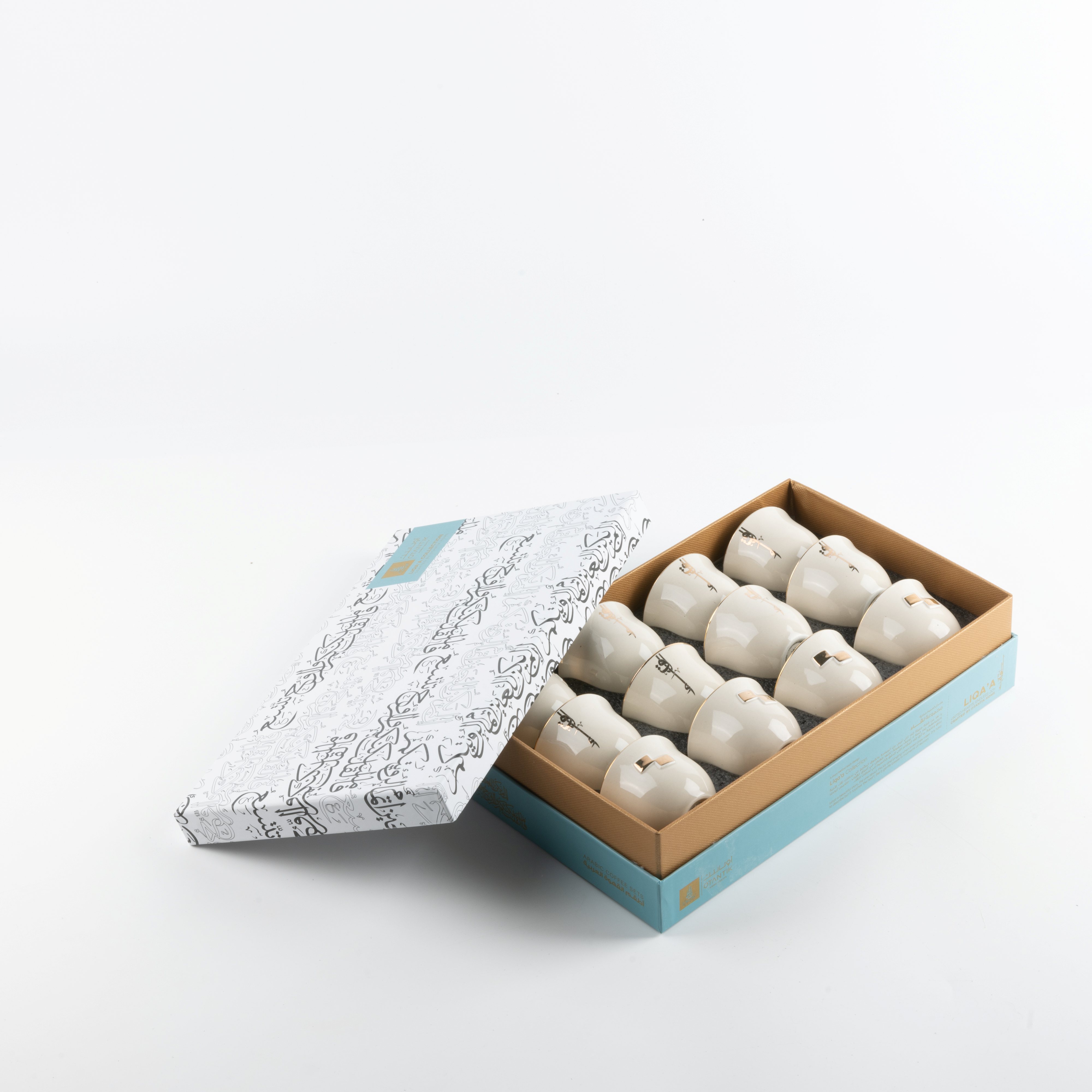 12 Pcs Arabic Coffee Cups From Liqaa - Beige + Gold