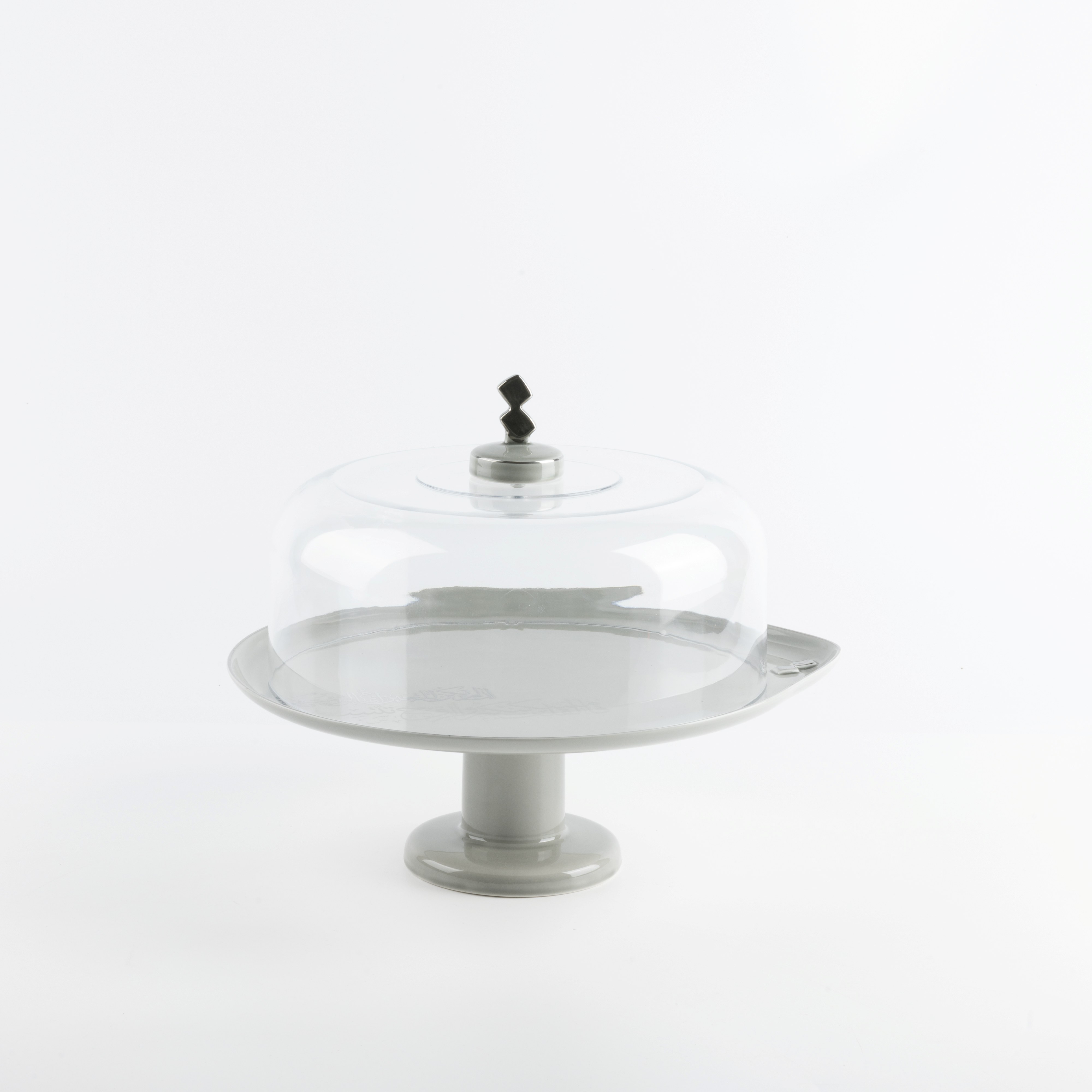 6 Plates And Stand With Acrylic Cover With Knife From Liqaa - Grey + Silver