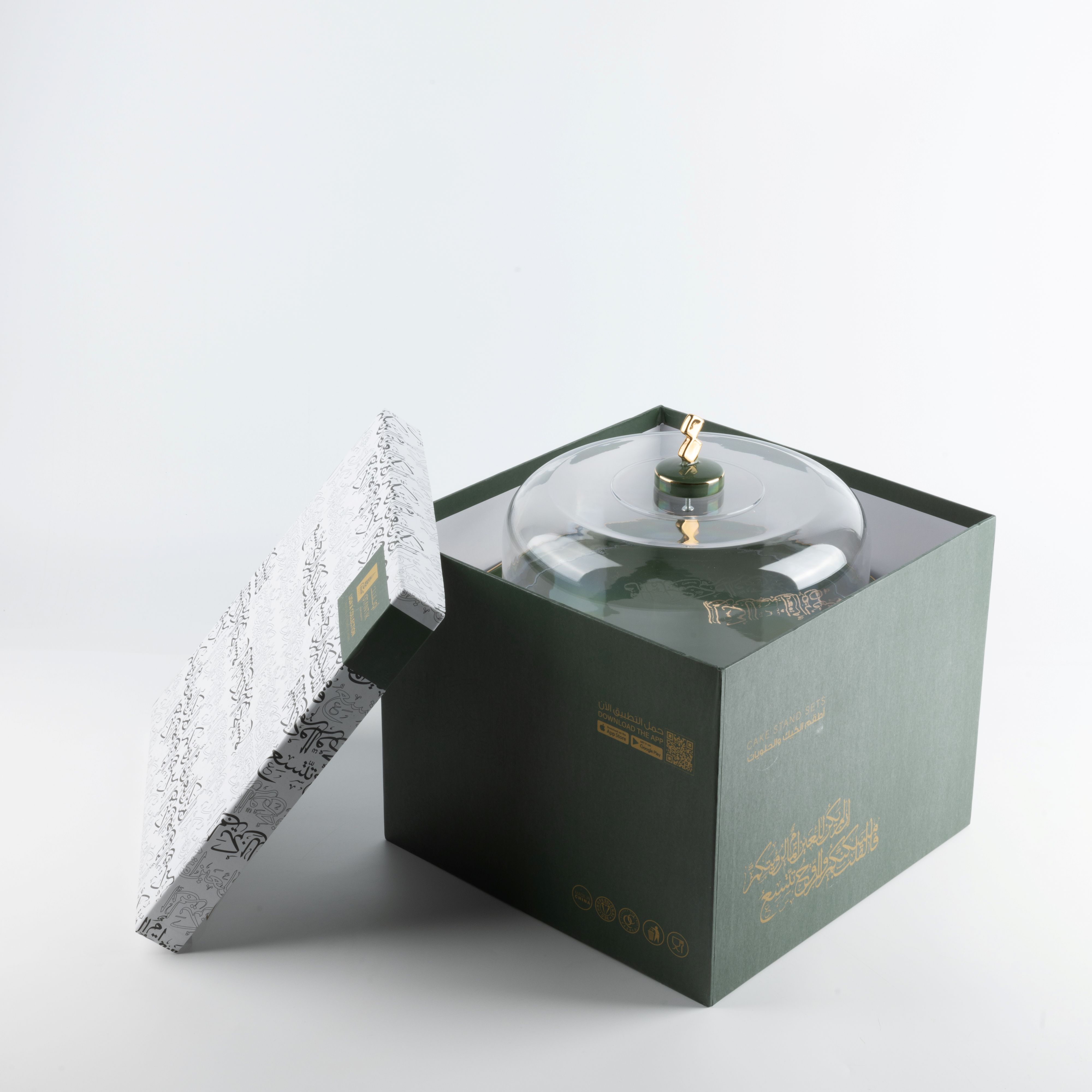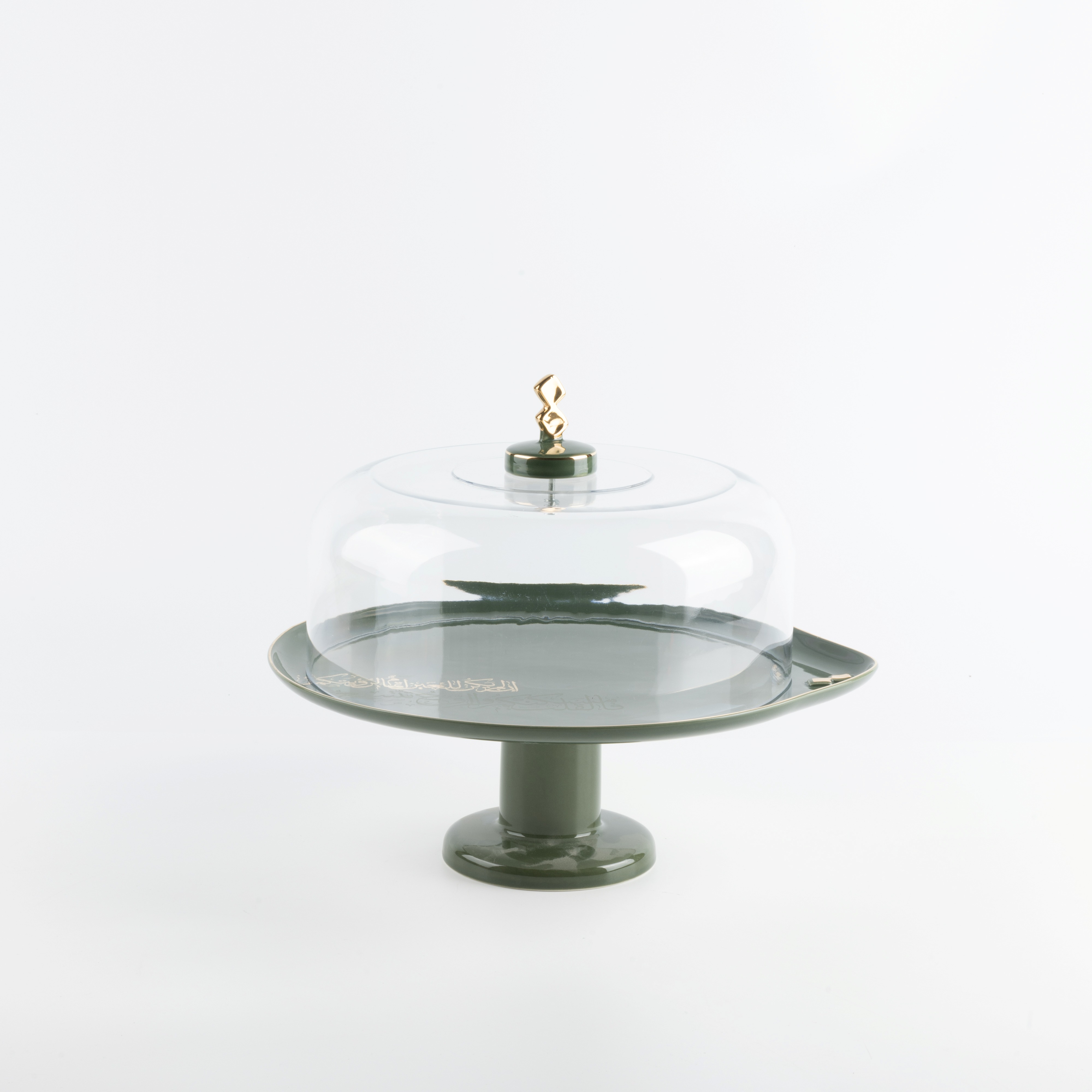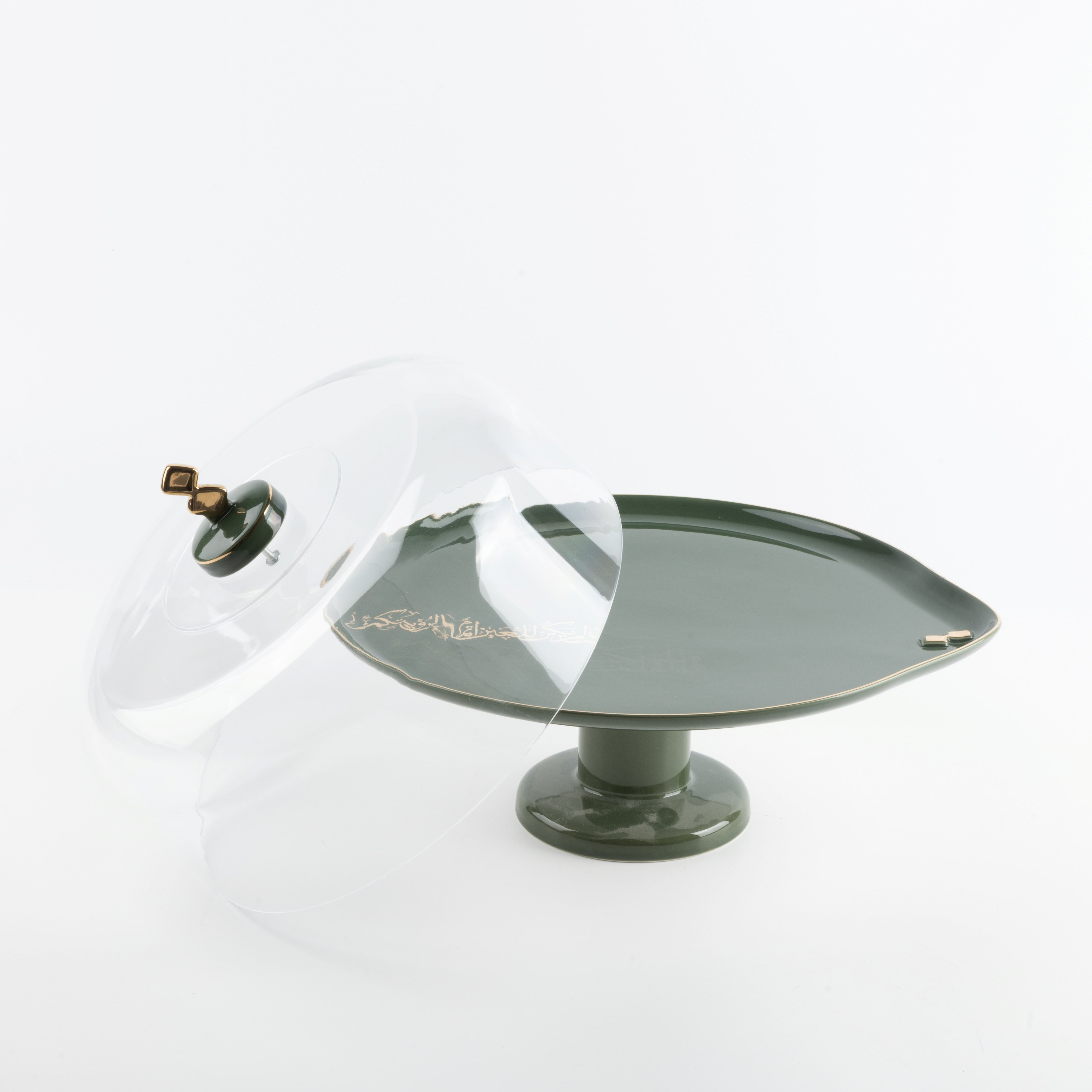 6 Plates And Stand With Acrylic Cover With Knife From Liqaa - Olive + Gold