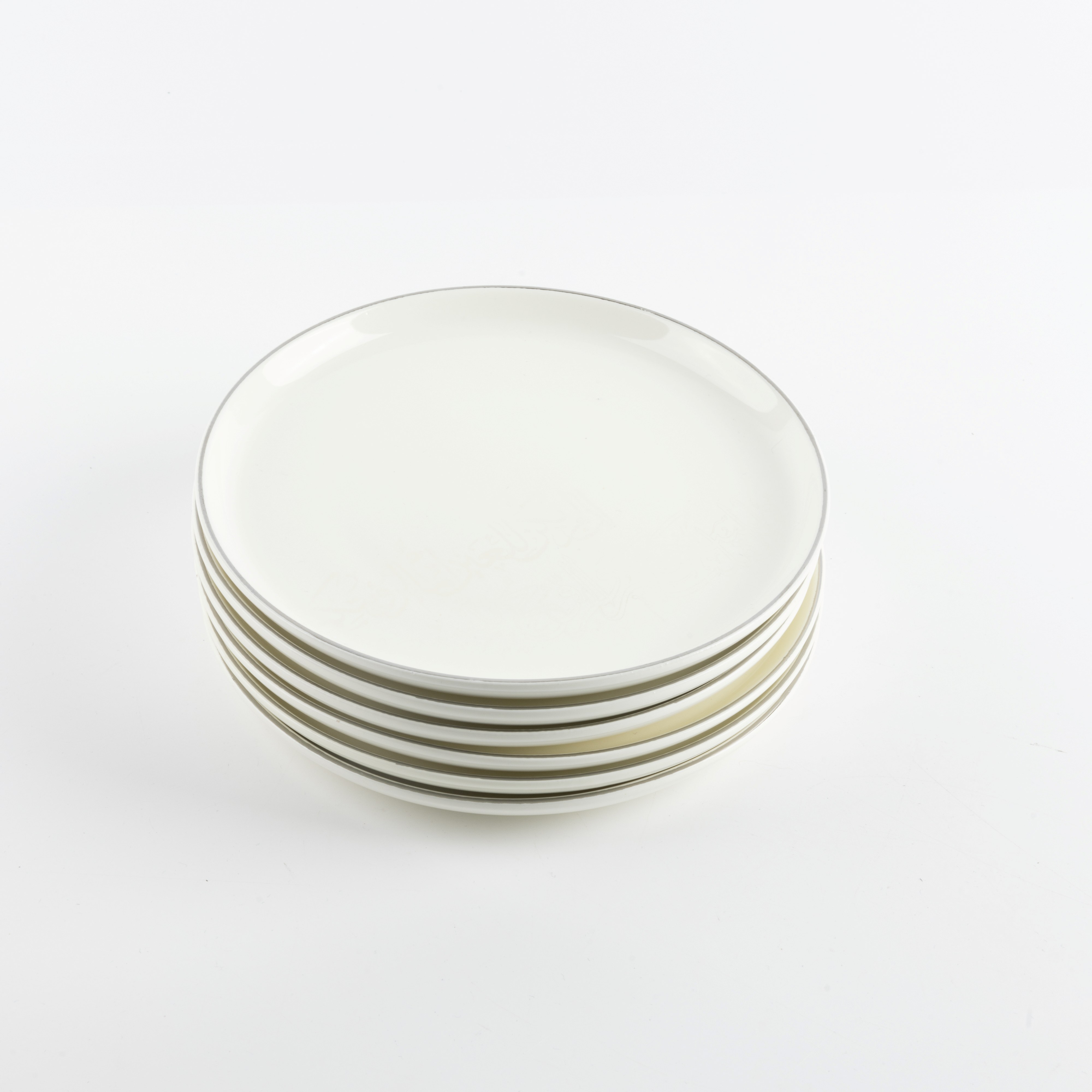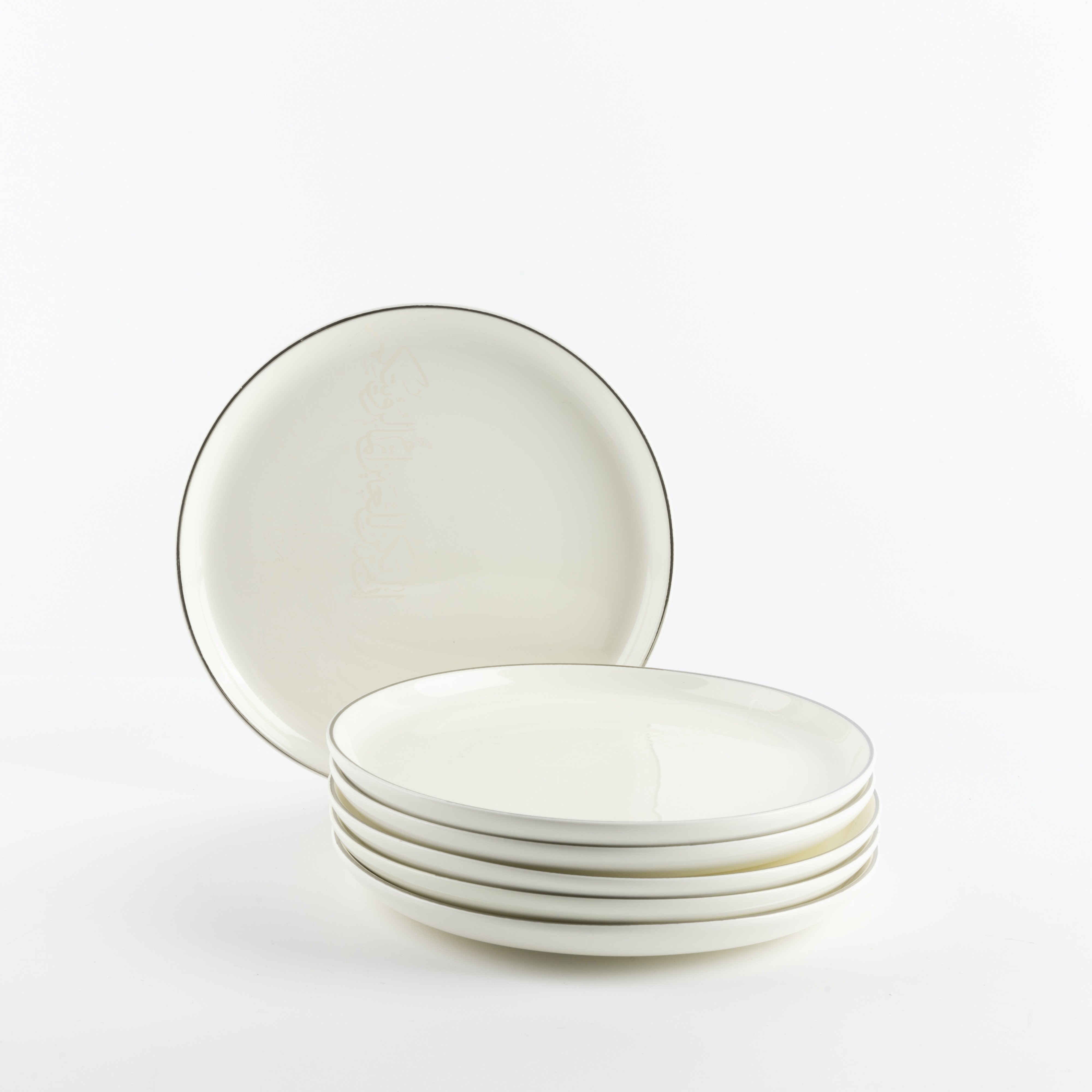 6 Serving Plates From Liqaa - Pearl White + Silver