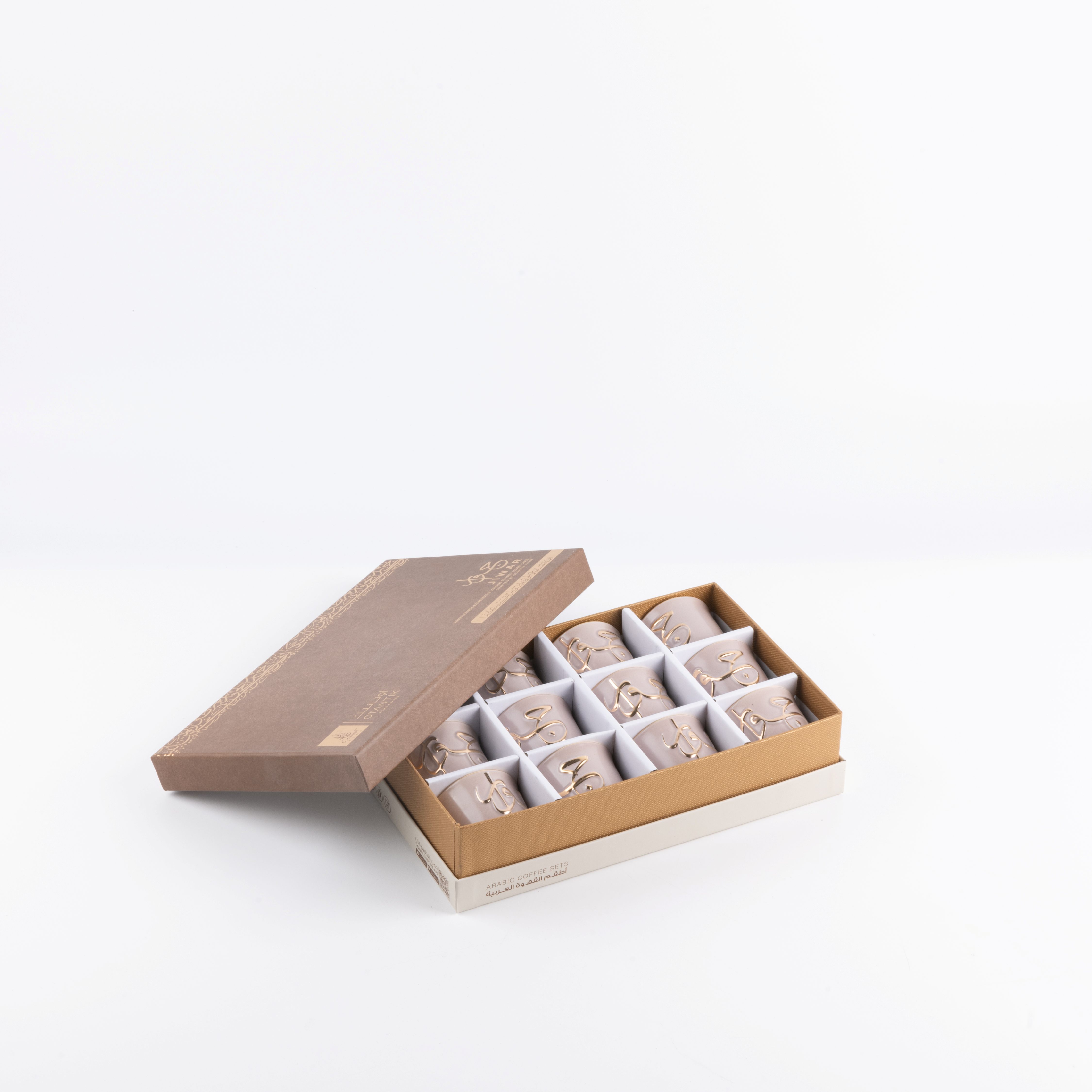The set consists of 12 coffee cups with an ideal capacity for serving Arabic coffee in small amounts, allowing you to enjoy every sip.