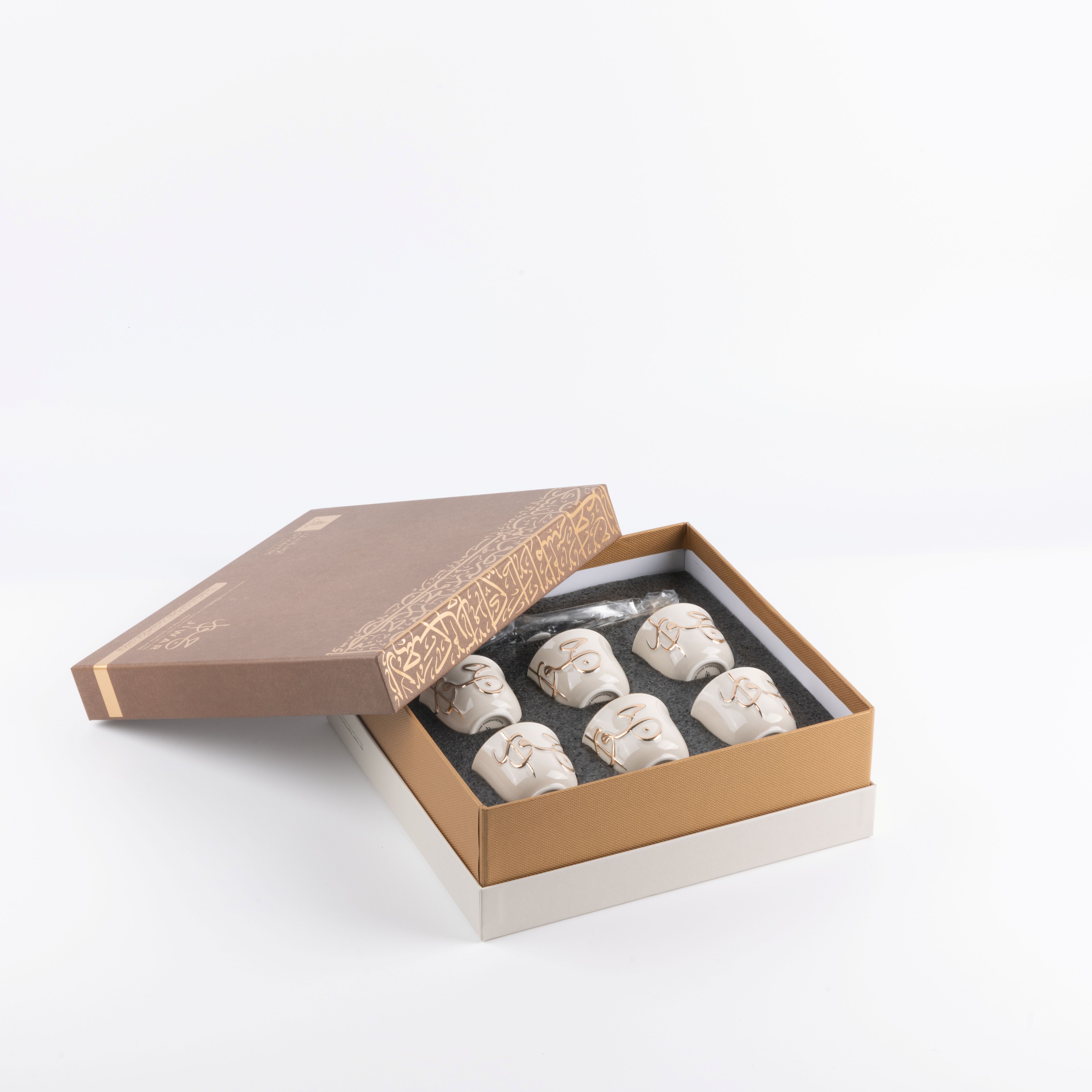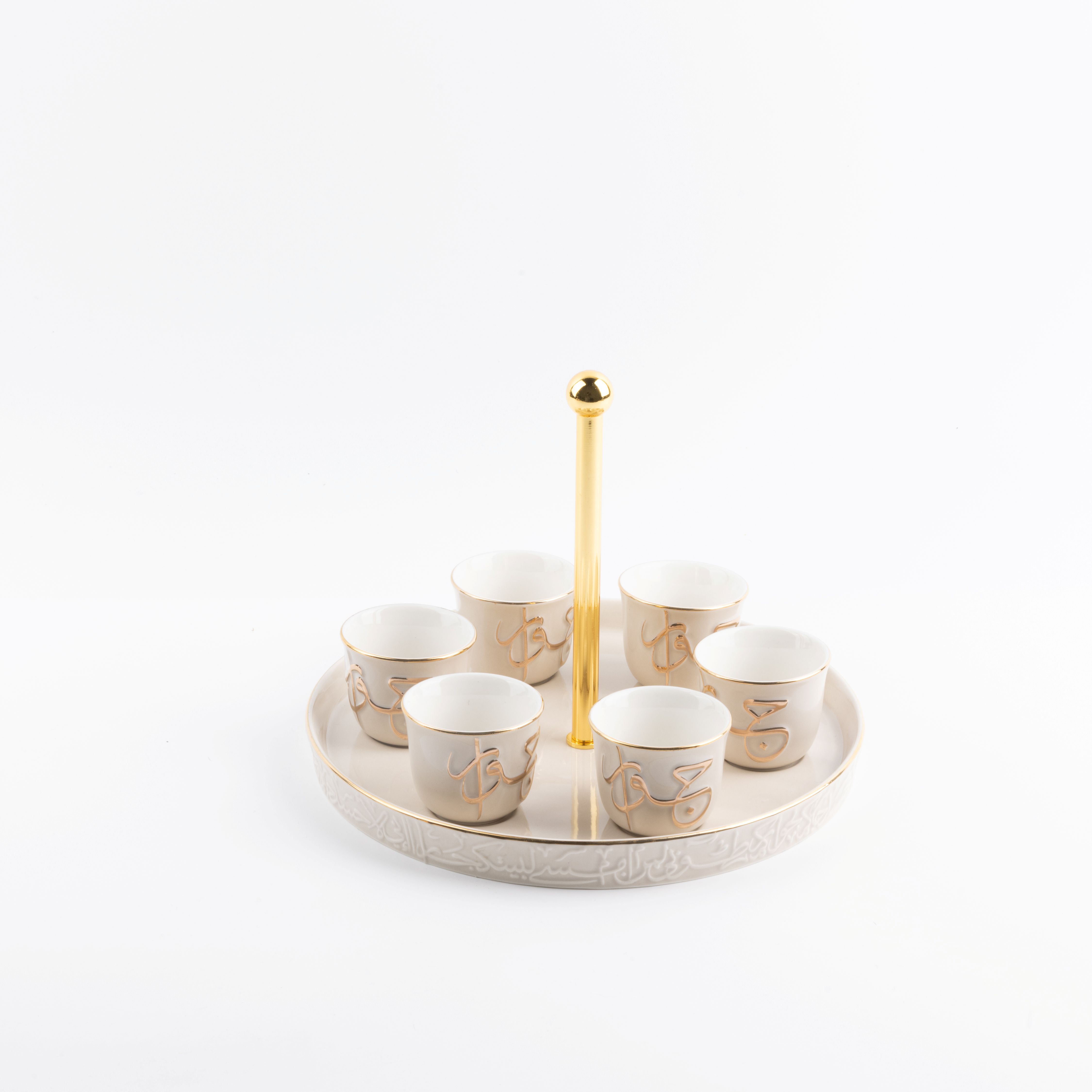 Arabic Coffee Set 7 Pcs From Jiwar - Beige + Gold