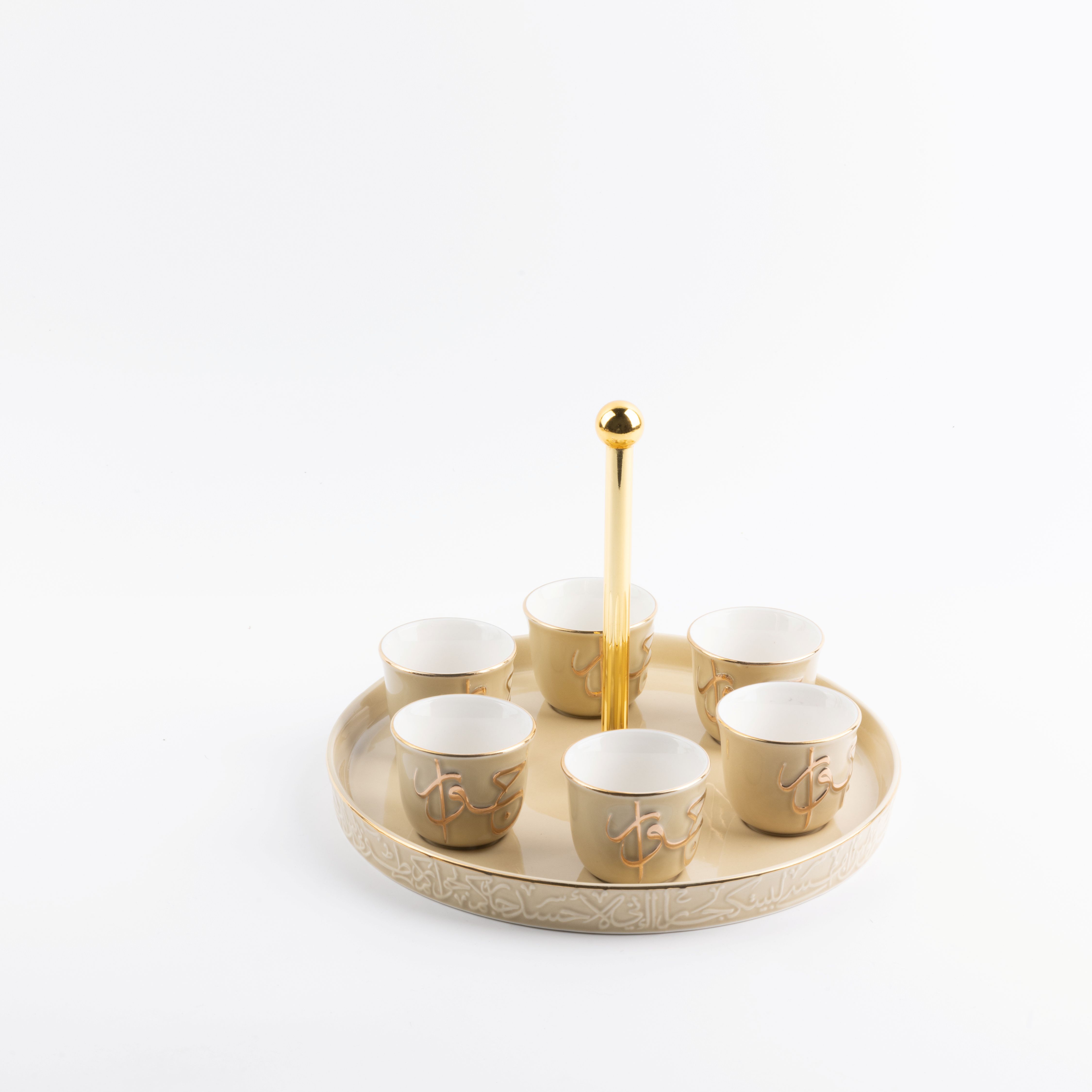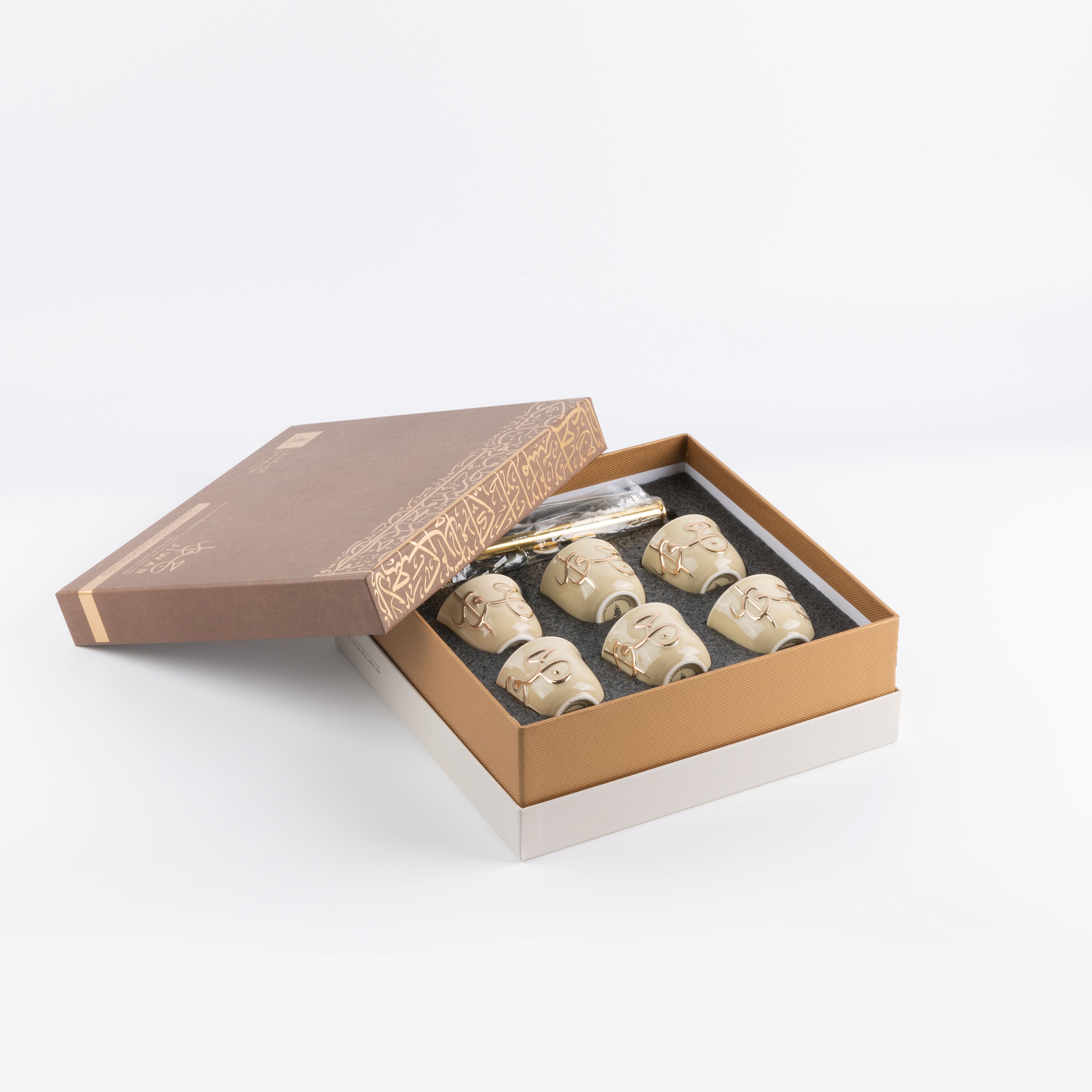 Arabic Coffee Set 7 Pcs From Jiwar - Ivory + Gold
