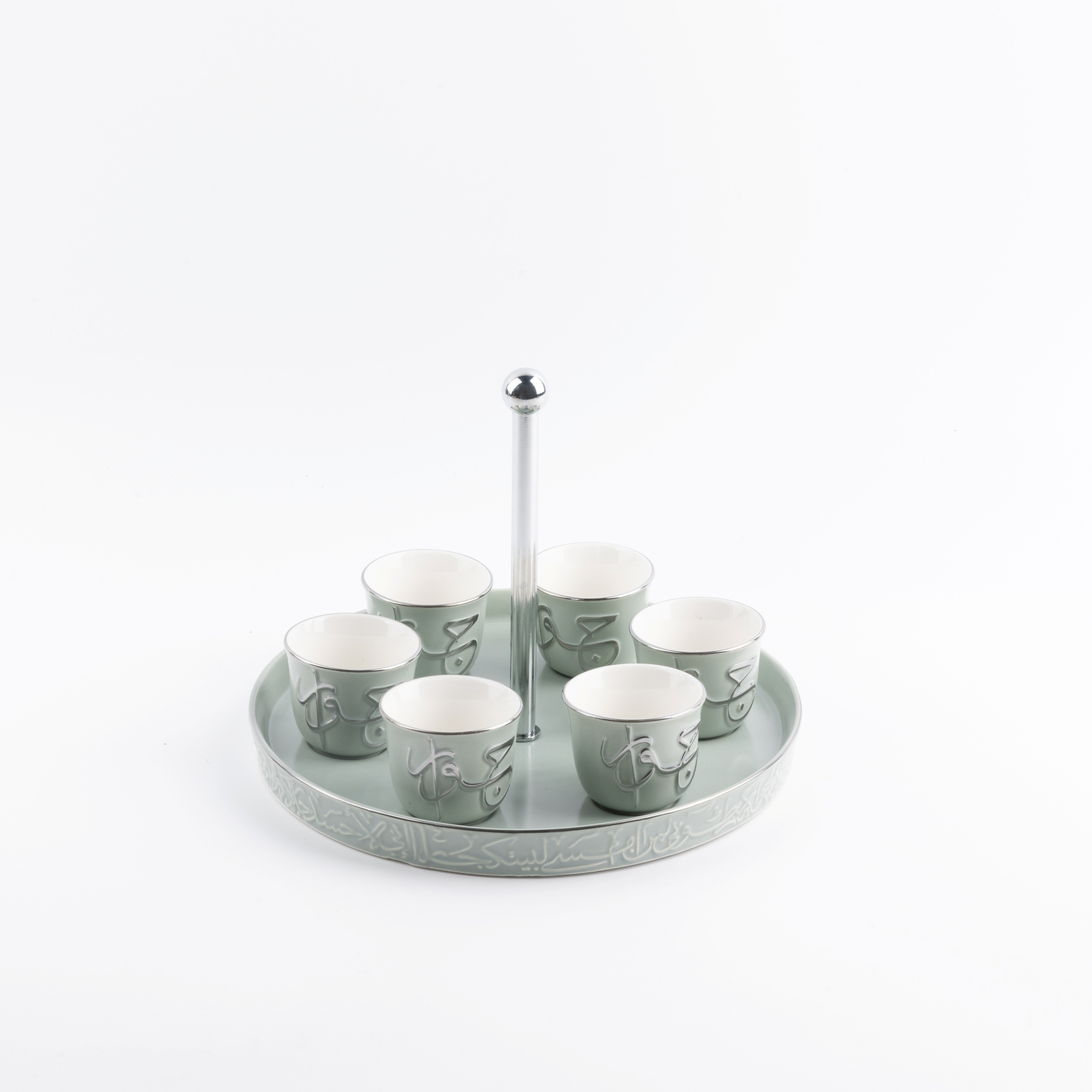 Arabic Coffee Set 7 Pcs From Jiwar - Light Green + Silver