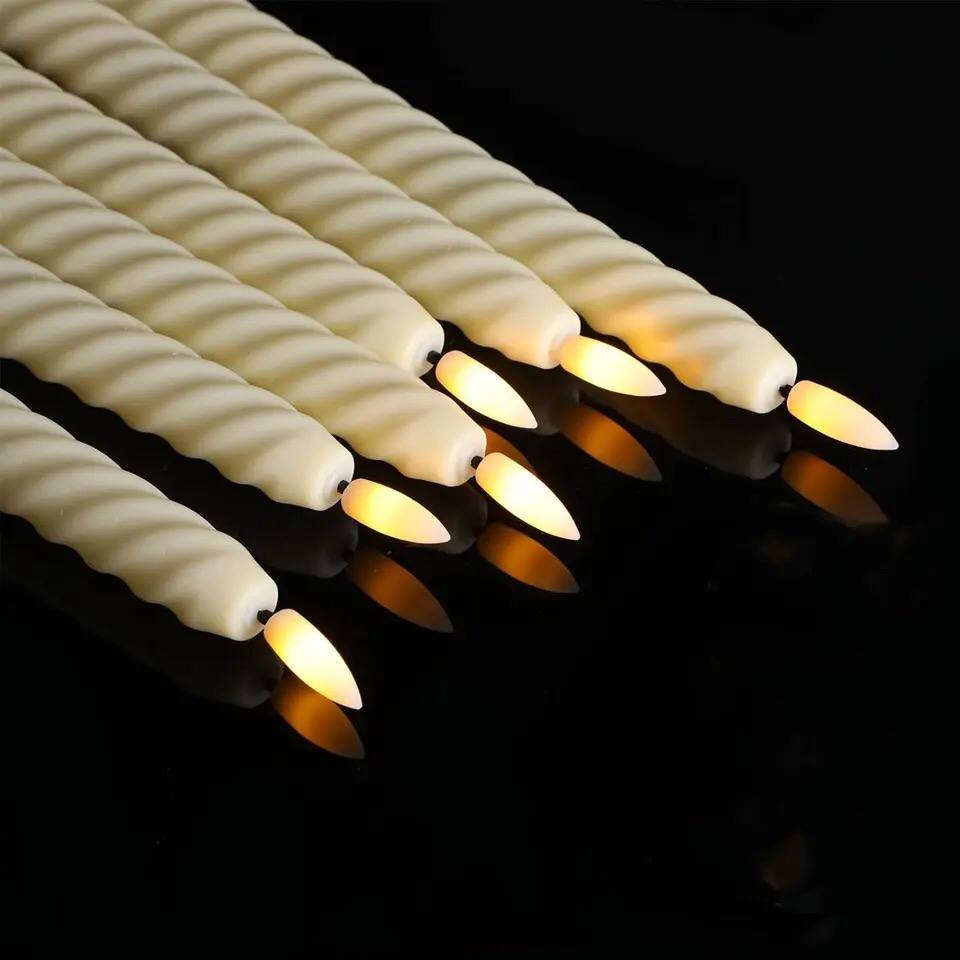 Simulation LED Taper Spiral Pattern Battery Powered LED Candles Light Electronic Flameless Long Rod Candle Light Wedding