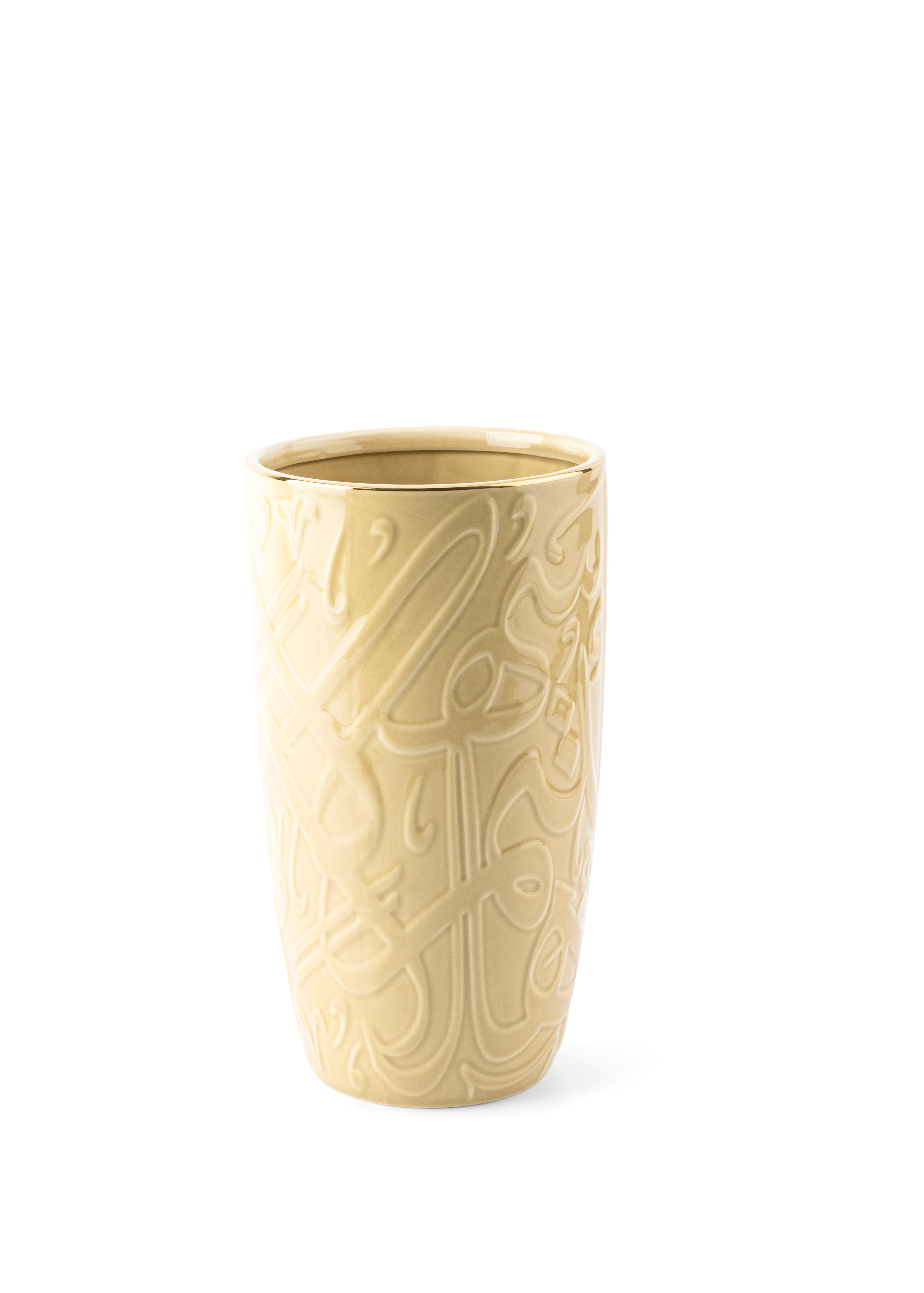 This Large Decorative Vase accommodates a beautiful bouquet and is distinguished by its elegant and refined design, adding a luxurious touch to any space it is placed in. It is made from the finest raw materials, ensuring durability and long-lasting use. The vase is adorned with the Arabic phrase "حللتم أهلًا ووطئتم سهلًا," reflecting the authenticity of traditional Arab heritage.