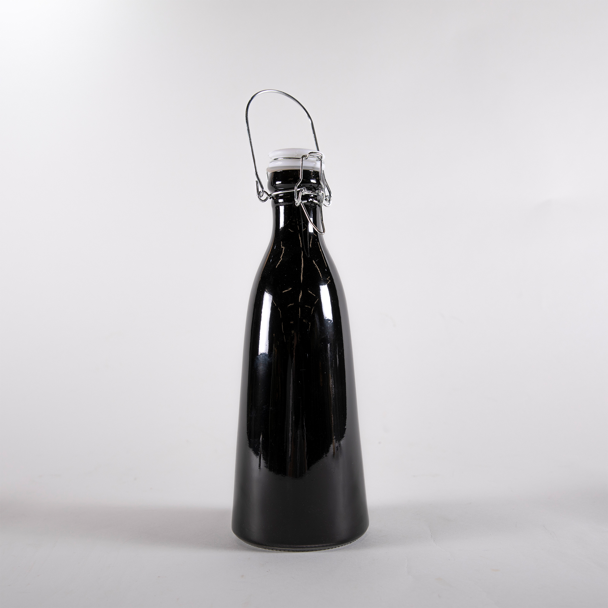 This elegant bottle comes with a modern and simple design, made of glossy black glass, making it ideal for storing cold or hot drinks. The bottle has an air-tight cap with a metal retainer to ensure that the contents do not leak. It can be used on trips, at home, or as a decorative piece in the kitchen. It is environmentally friendly and reusable, making it an ideal choice for anyone who seeks to preserve the environment. The bottle capacity is adequate to meet your daily fluid needs.
