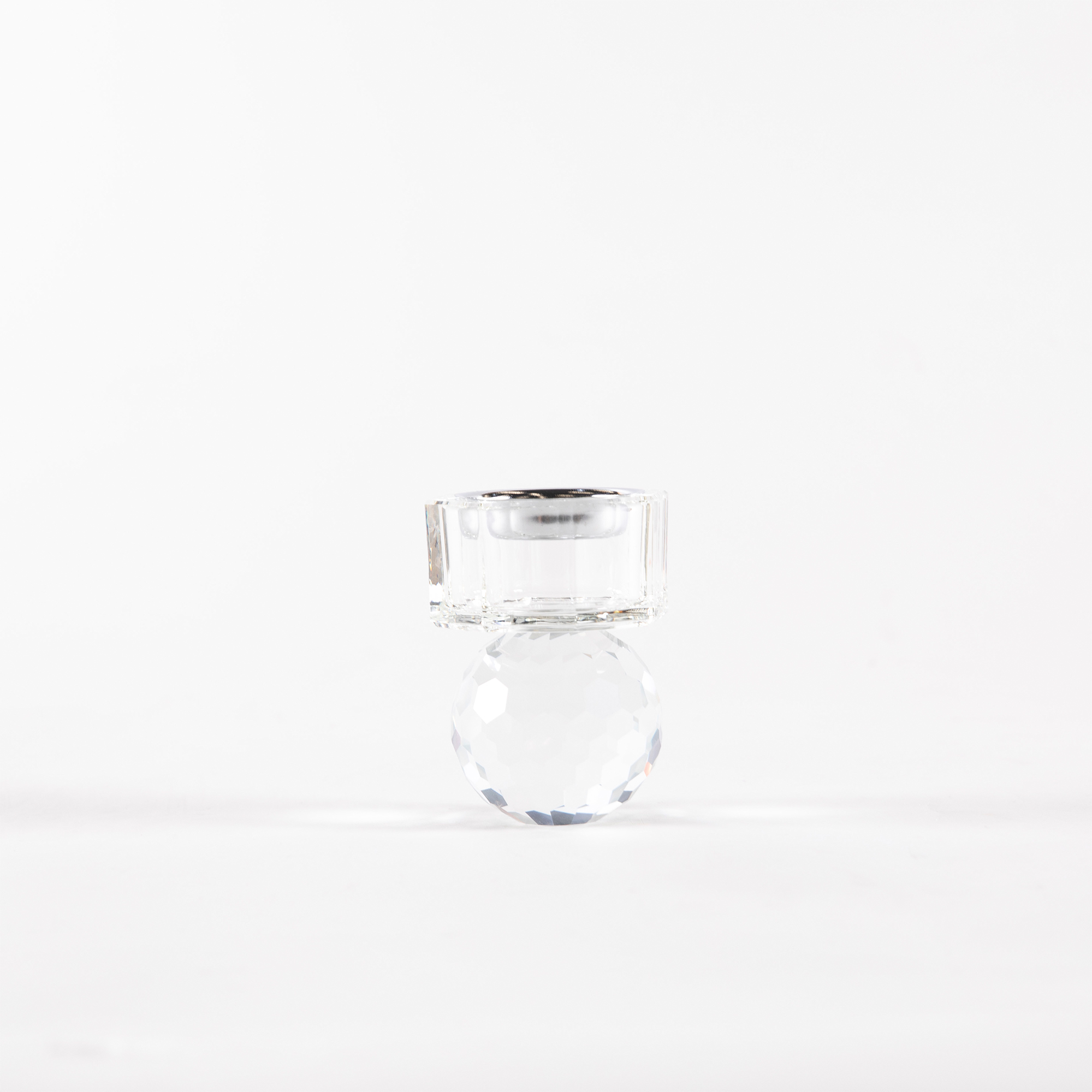 Enjoy an enchanting atmosphere with this elegant candle holder. Its design comes with a polished black spherical base and a clear top, creating a great contrast. This holder fits various types of candles, making it the perfect addition to any interior decor. Whether in the living room or bedroom, this stand will add a touch of luxury and elegance to your atmosphere. Made of high quality materials, ensuring long lasting use and beautiful appearance.
