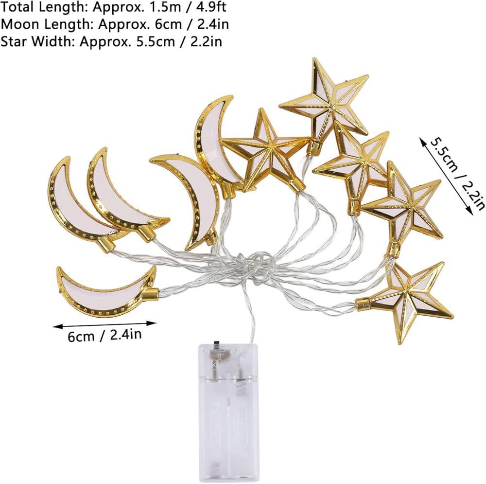 150 cm long battery lighting rope adds charm and brightness to any place. It features exquisite detailing featuring five crescents and five stars, making it perfect for decorating occasions and holidays. It operates on a battery to provide you with brilliant lighting at all times. Easy to install and use, making it an excellent addition to your home decor.