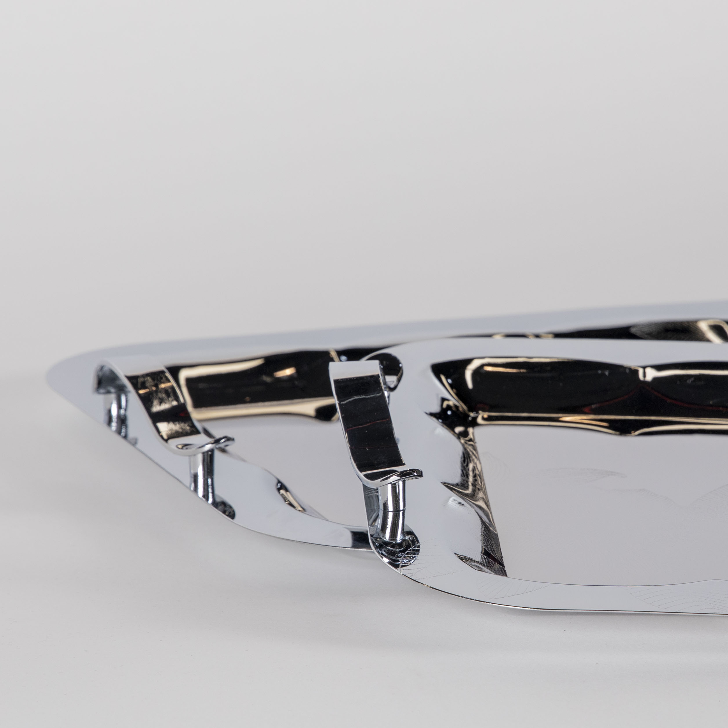 Trays appear beautifully and elegantly. The trays come in two different sizes, with curved edges and a simple decorative design on the surface, adding an artistic touch. Each of them has two handles on the sides, making it easy to carry and use for serving food or drinks on different occasions. They can be used to decorate the table or as an attraction at any social gathering.