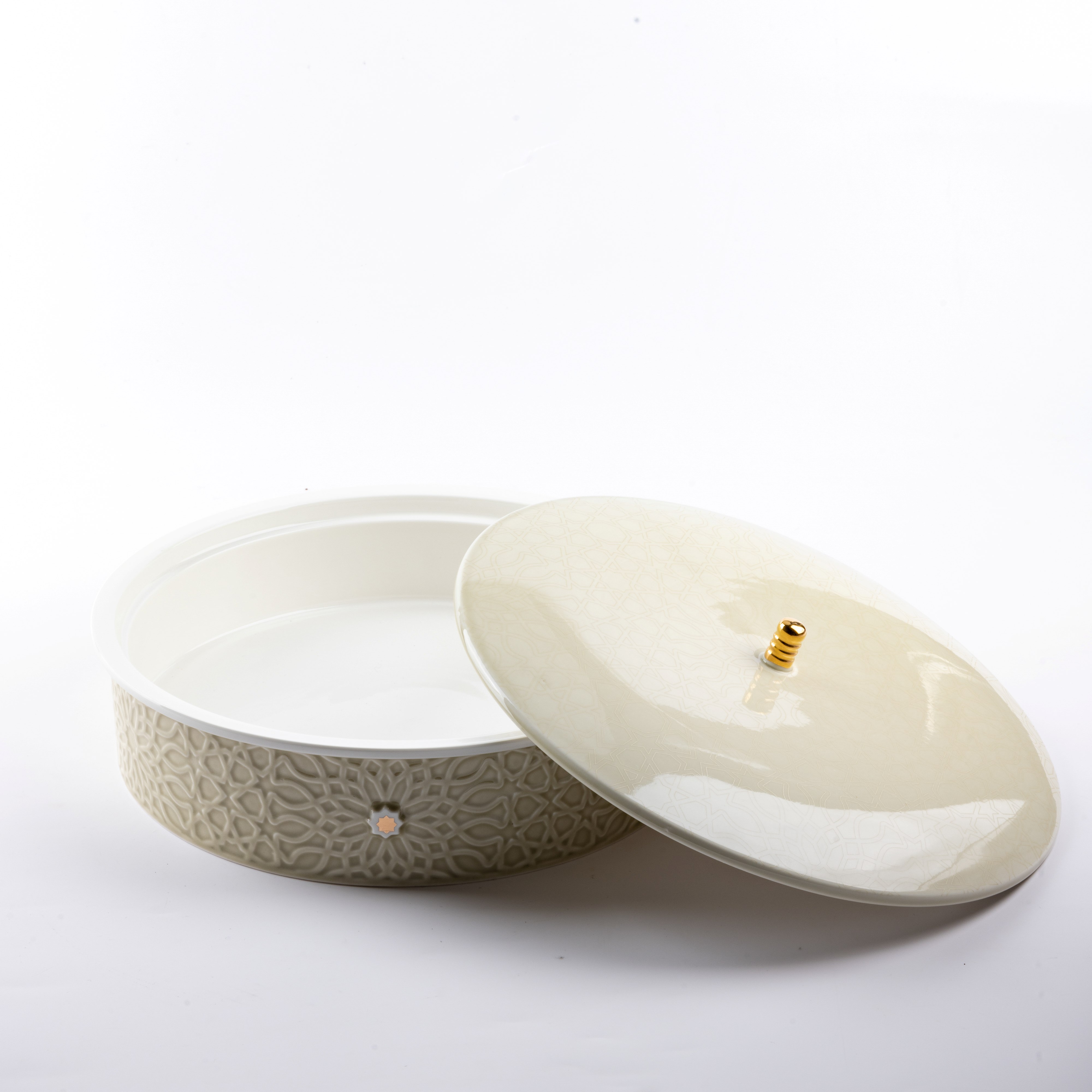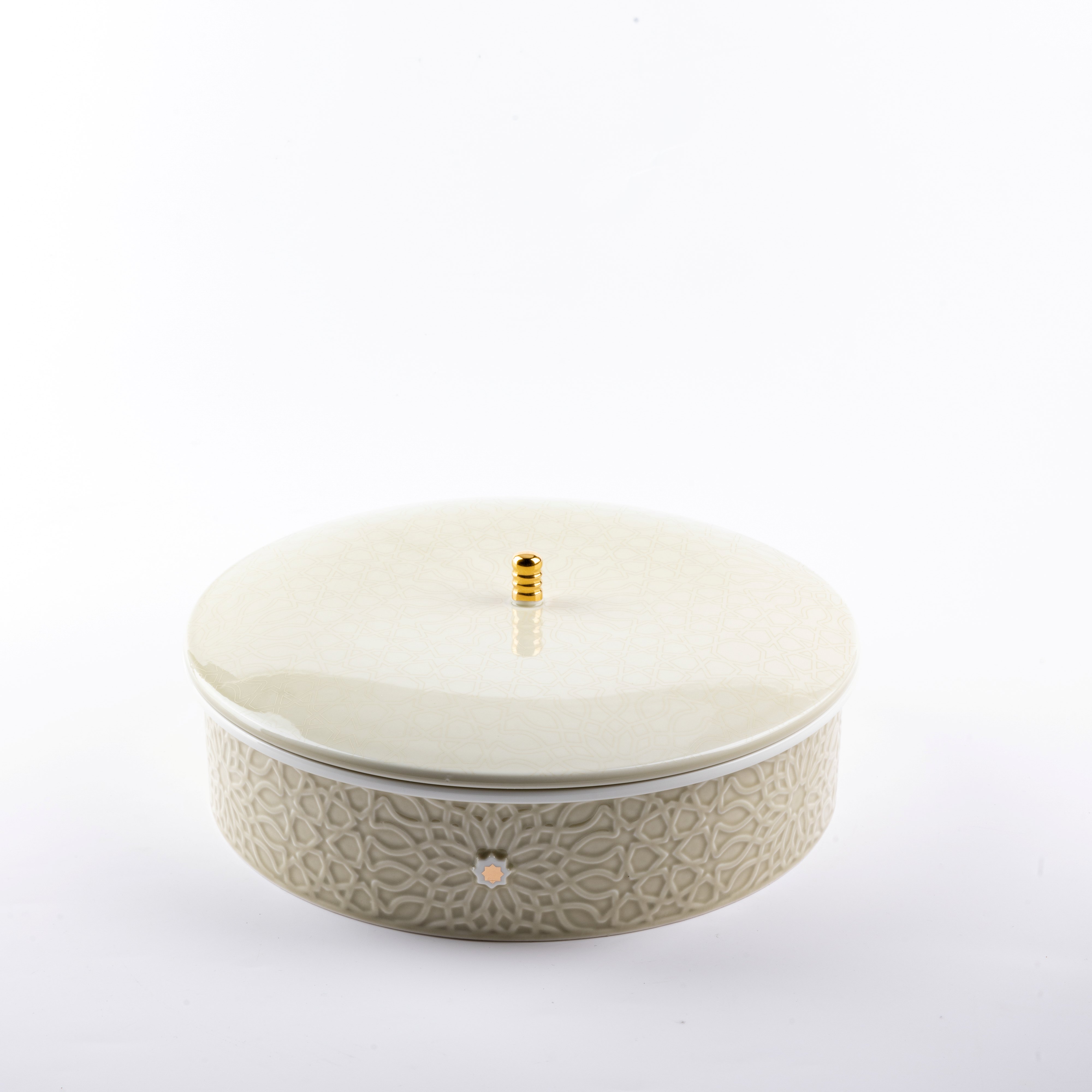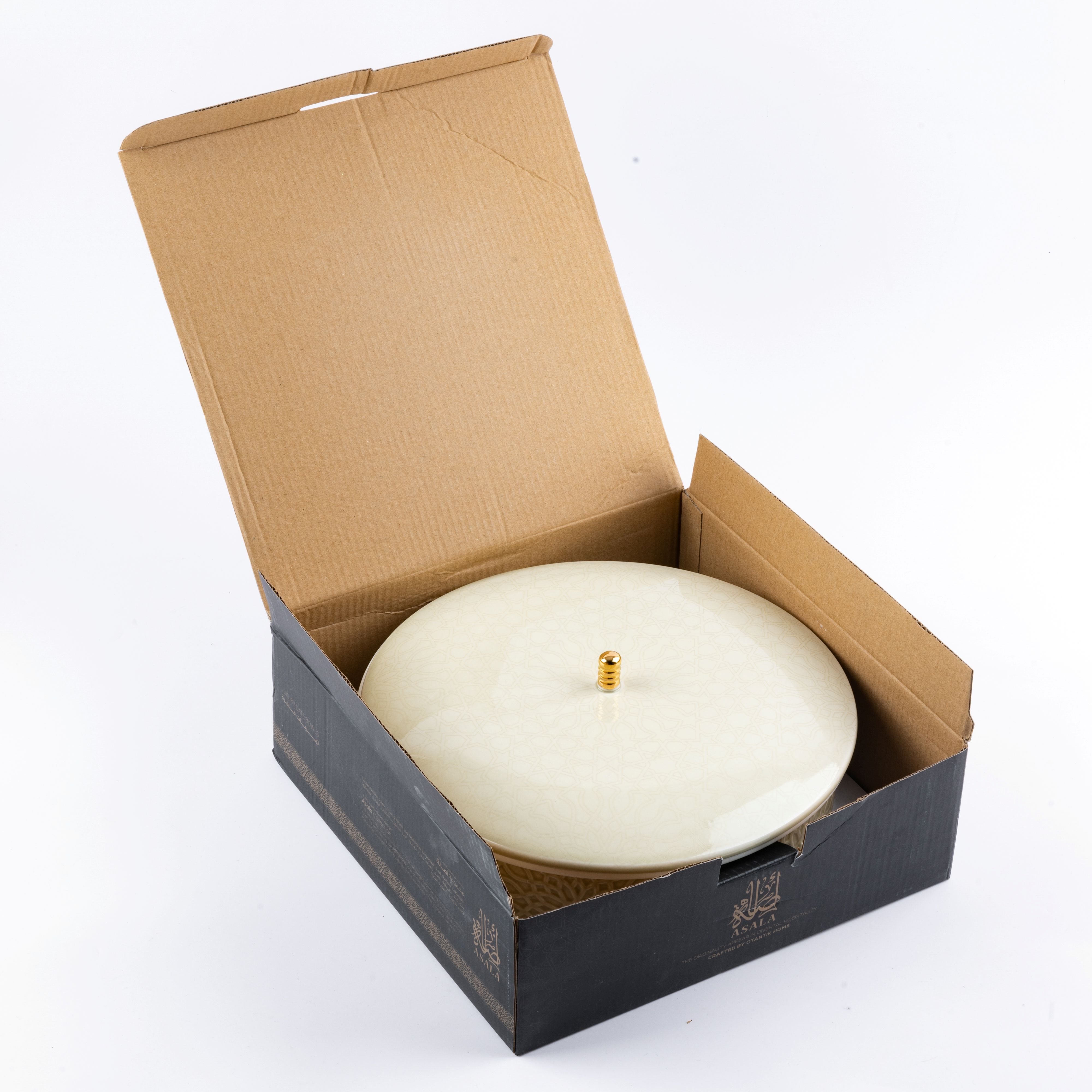 - Protective Lid: Designed to shield dates from dust or contaminants, featuring a convenient size and harmonious design. The lid includes a golden handle for easy lifting, adding a relaxed and luxurious element to the date-serving experience. Its elegant yet practical design makes serving dates effortless and comfortable.