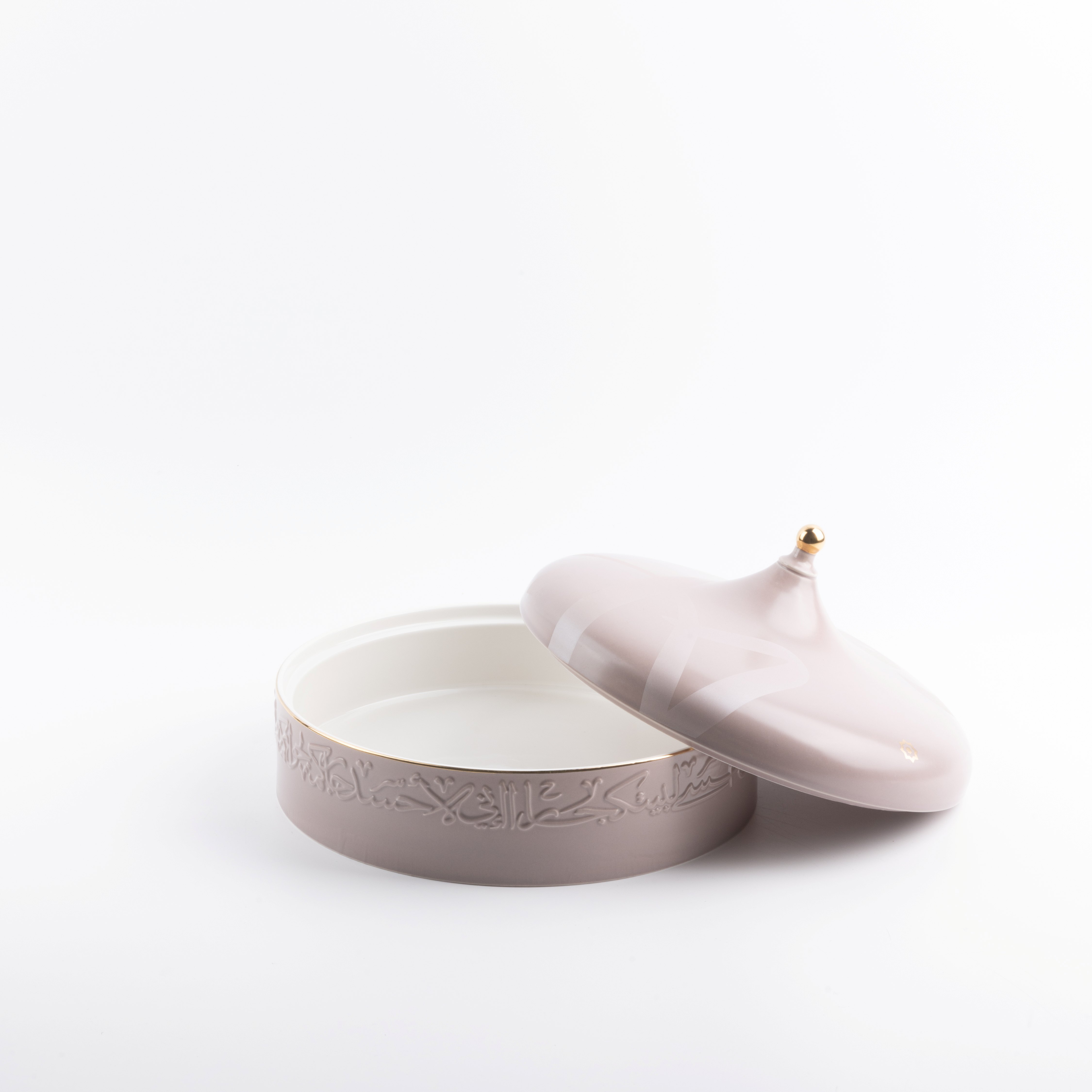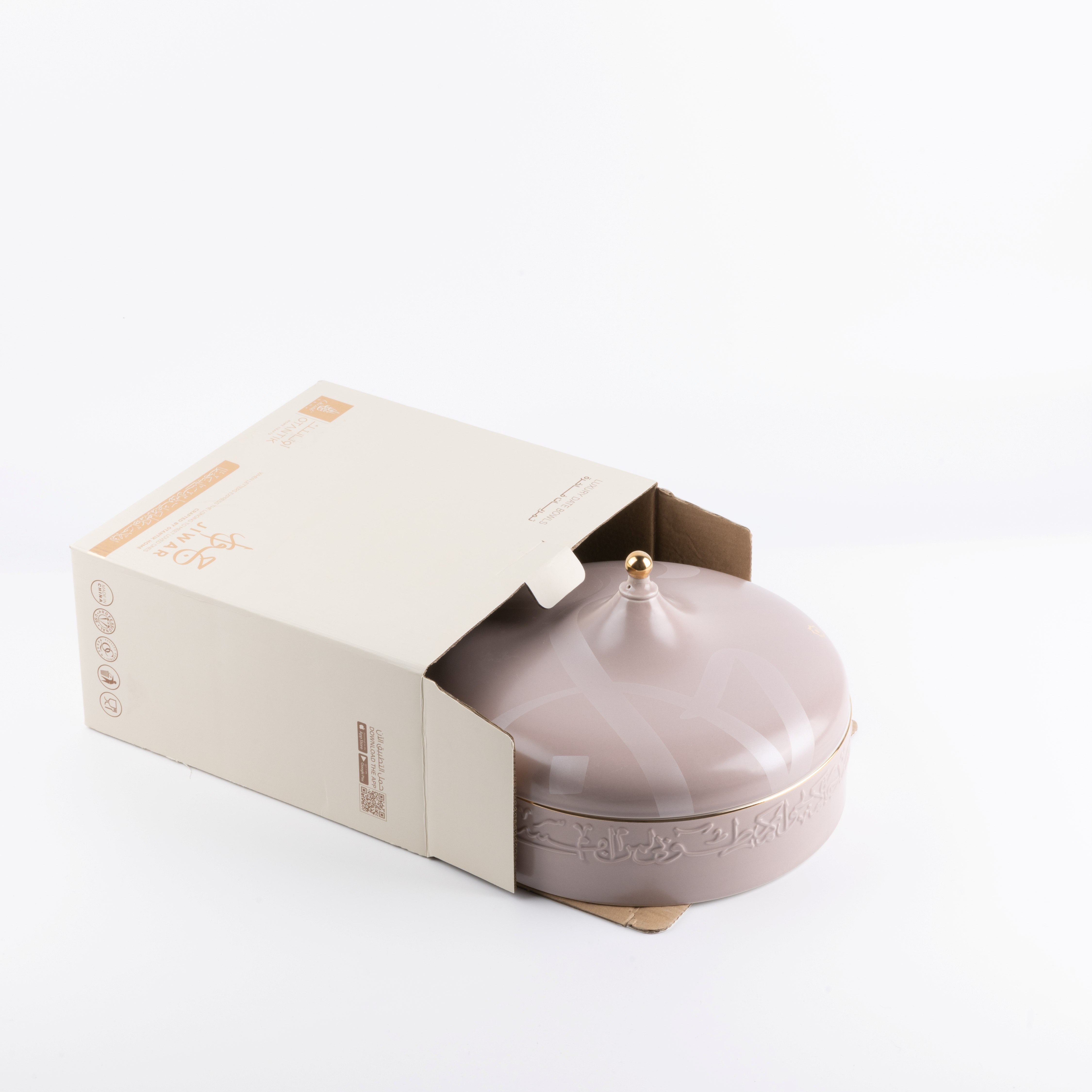 - The lid has a comfortable and coordinated design that protects the dates from dust and pollutants. It includes a golden piece for easy lifting, adding a touch of luxury and sophistication to the date-serving experience.