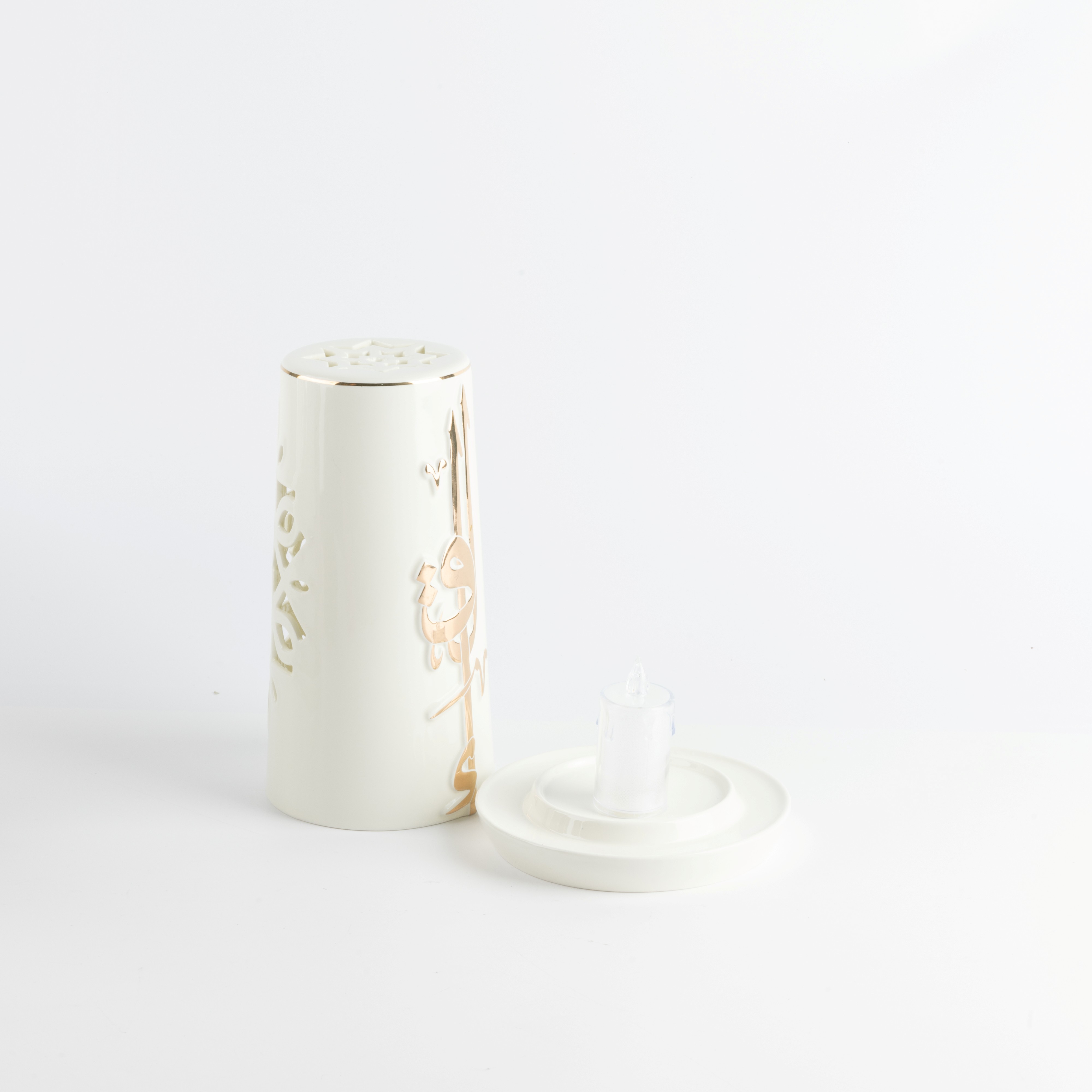 Large Electronic Candle From Liqaa - Pearl White + Gold