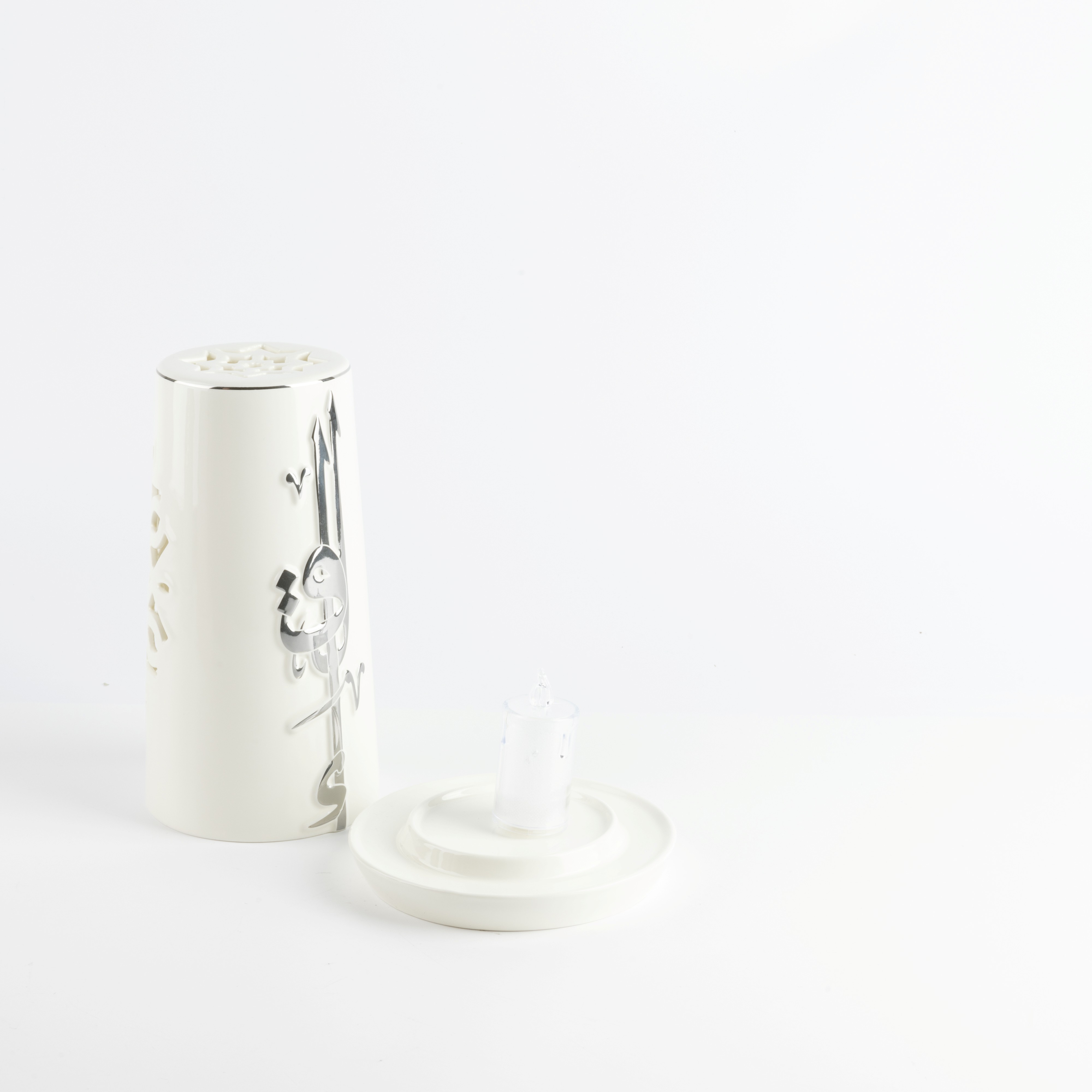 Large Electronic Candle From Liqaa - Pearl White + Silver