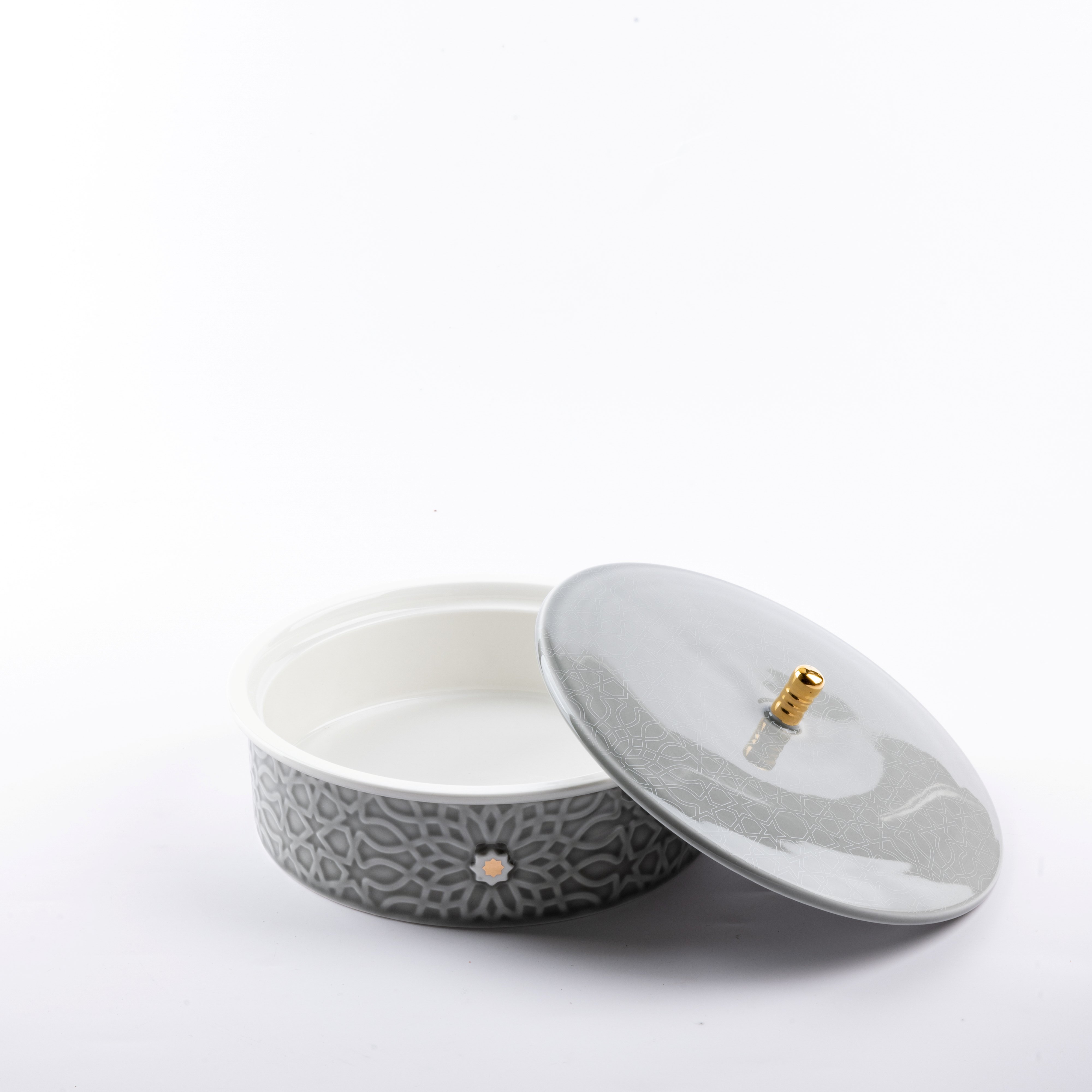 - Second Piece: A protective lid is designed to shield dates from dust and contaminants. With a suitable size and harmonious design, the lid features an elegant golden handle for easy lifting, adding a touch of luxury and relaxation to the experience of serving dates. Its practical and sophisticated design ensures that presenting dates is both comfortable and luxurious.