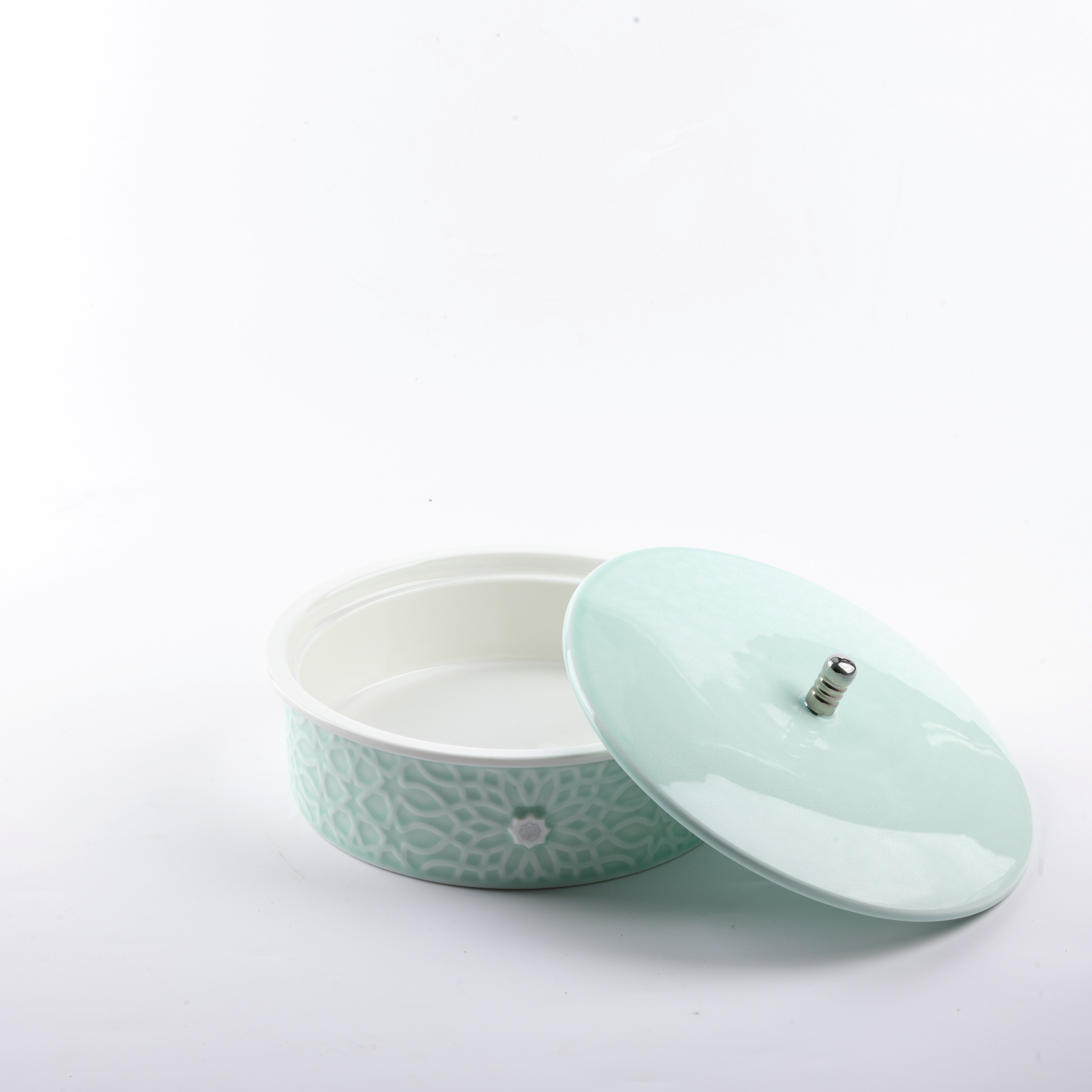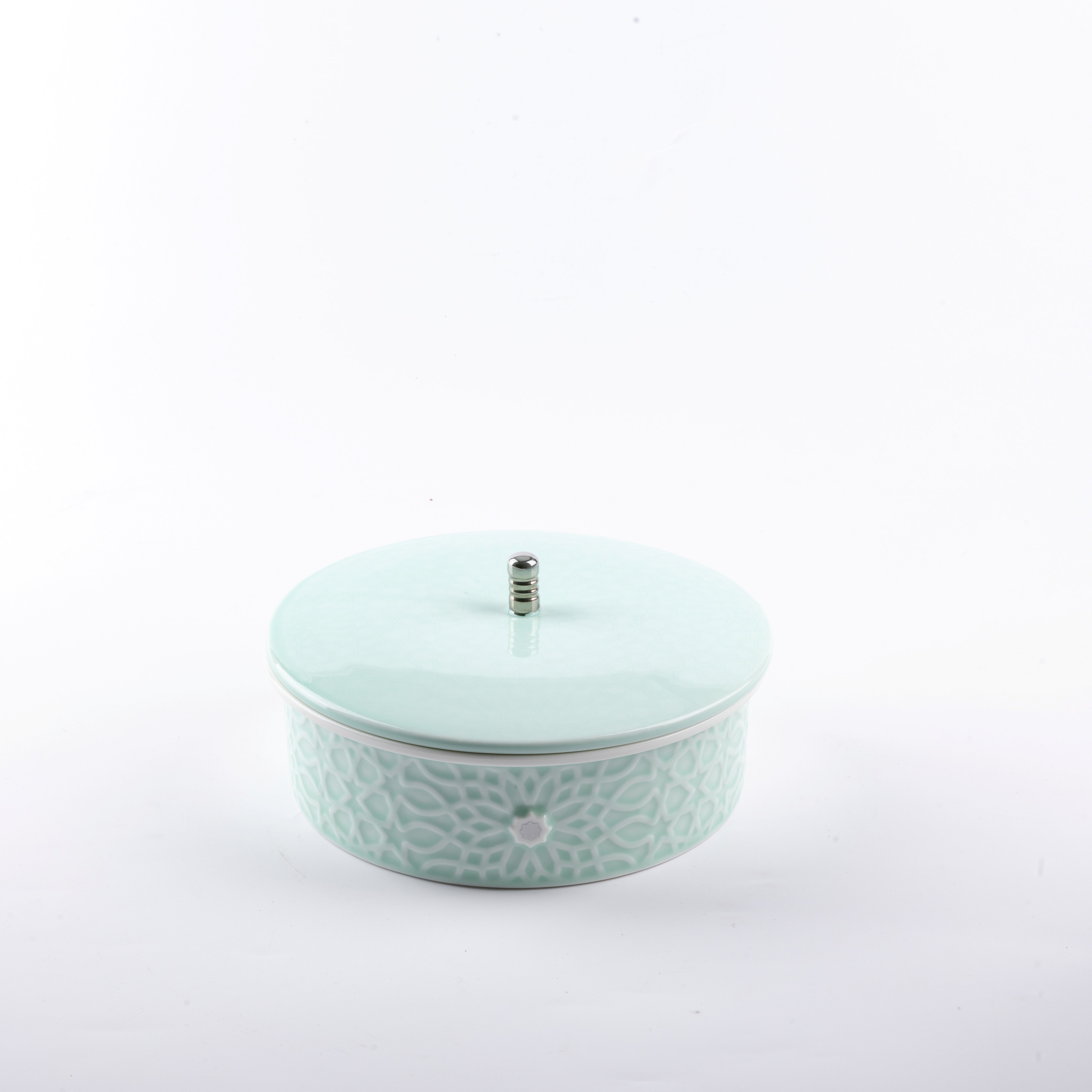 - Second Piece: A protective lid is designed to shield dates from dust and contaminants. With a suitable size and harmonious design, the lid features an elegant golden handle for easy lifting, adding a touch of luxury and relaxation to the experience of serving dates. Its practical and sophisticated design ensures that presenting dates is both comfortable and luxurious.