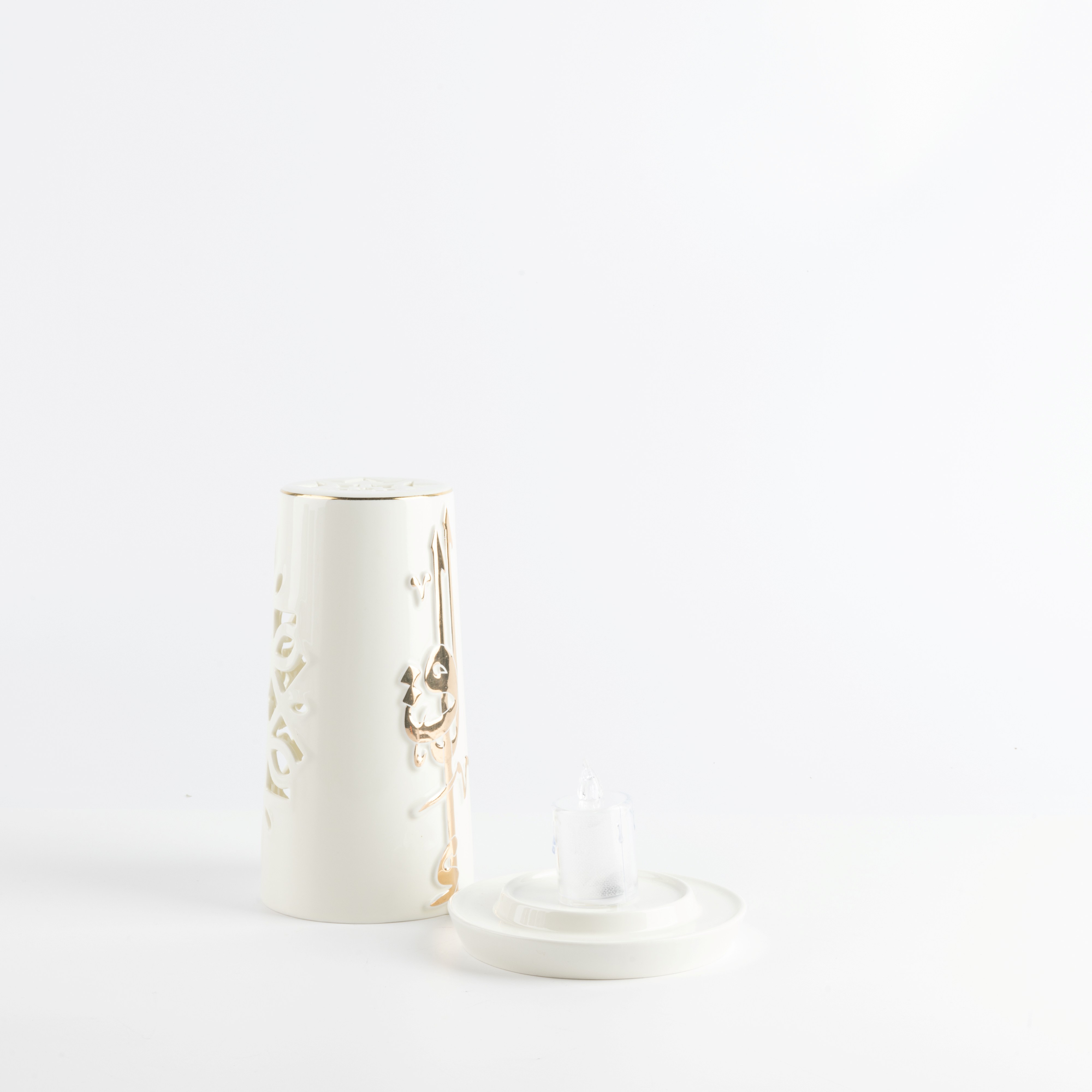 Medium Electronic Candle From Liqaa - Pearl White + Gold