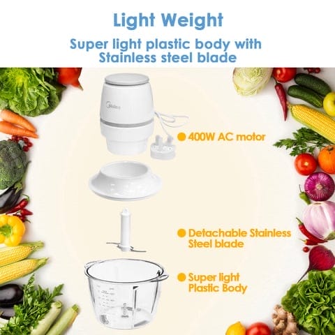 The Midea 1 Liter Food Chopper is the perfect solution for preparing food quickly and easily. Thanks to its practical design and large capacity, it provides you with outstanding performance in chopping various ingredients such as vegetables and meat. The Midea chopper comes with a powerful motor that ensures efficient operation, ideal for use in a modern kitchen. Experience convenience and utility with this innovative tool.