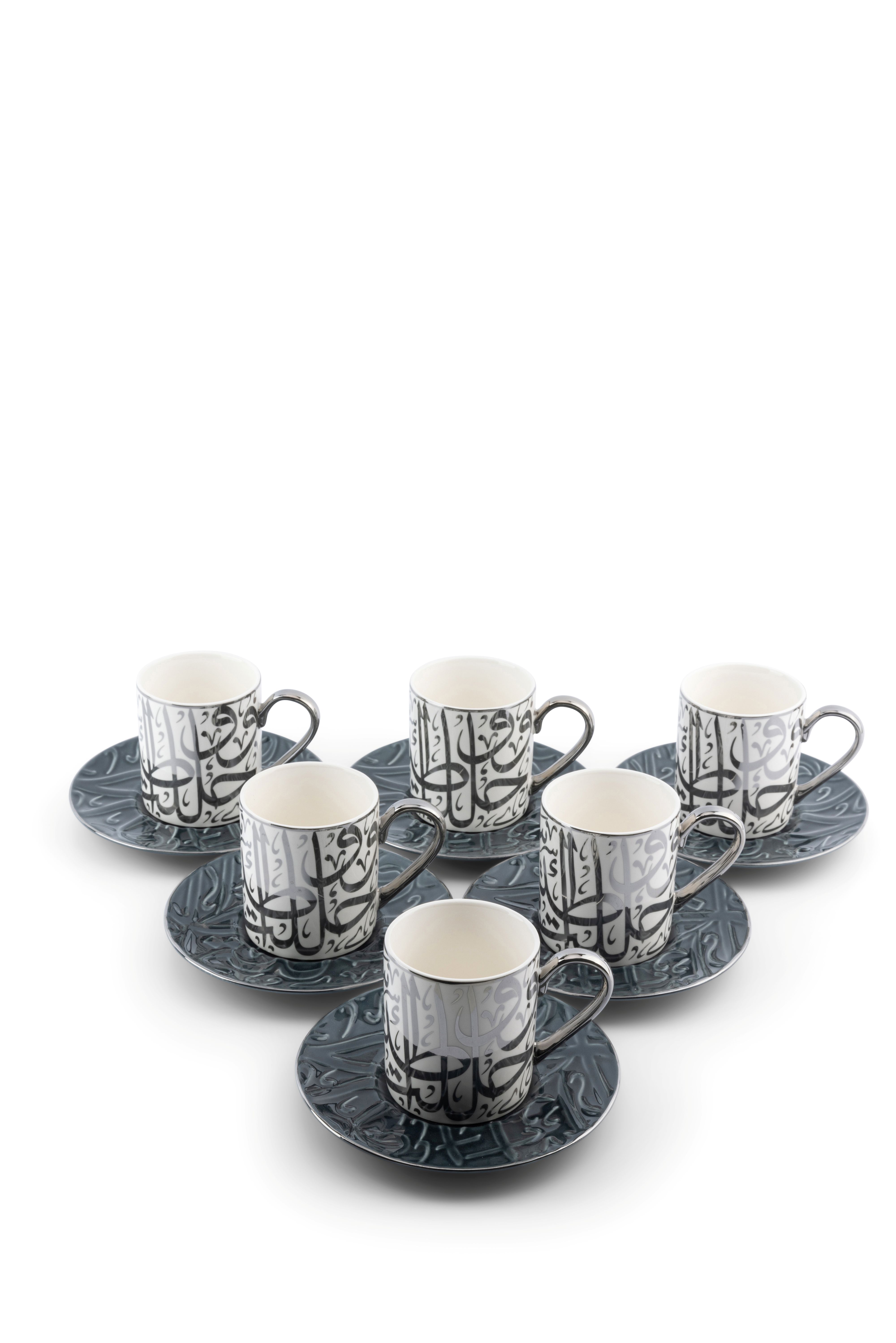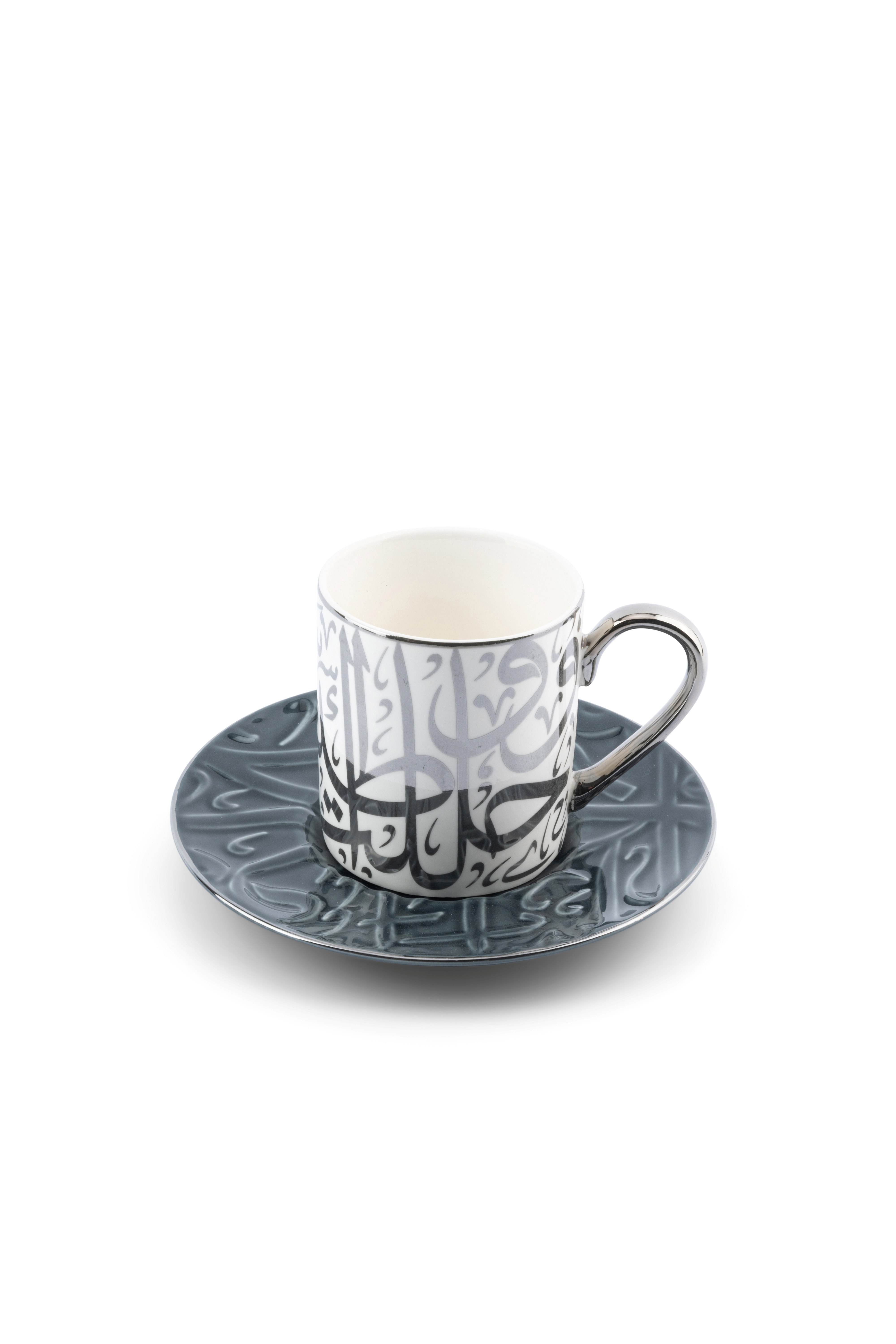 The saucers are perfectly sized to complement the cups, resulting in an elegant and harmonious appearance. The set's beauty is further enhanced by intricate Arabic calligraphy featuring the phrase “حللتم أهلًا ووطئتم سهلًا,” a signature of the Diwan brand, symbolizing the authenticity and sophistication of Arab heritage.