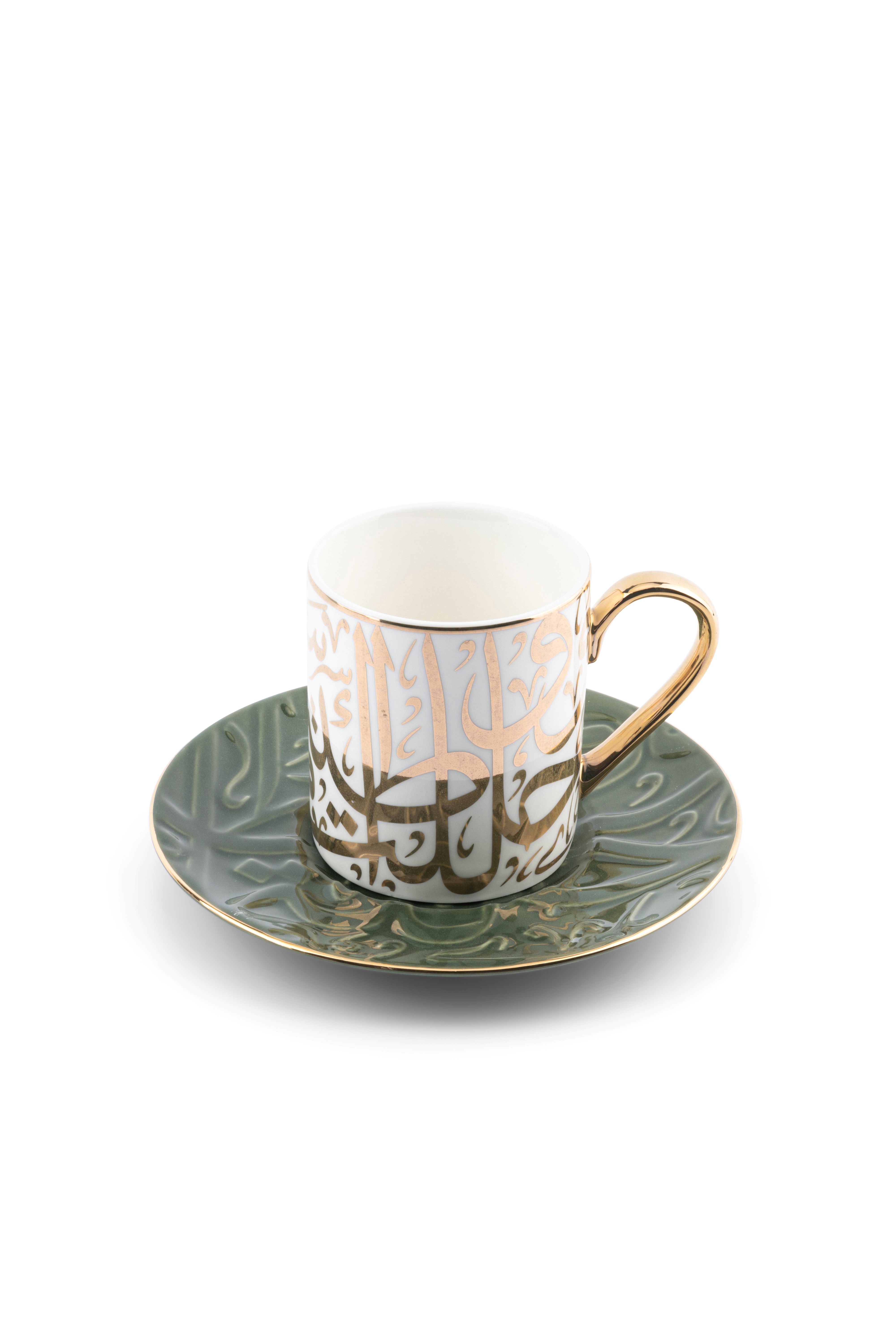 The saucers are perfectly sized to complement the cups, resulting in an elegant and harmonious appearance. The set's beauty is further enhanced by intricate Arabic calligraphy featuring the phrase “حللتم أهلًا ووطئتم سهلًا,” a signature of the Diwan brand, symbolizing the authenticity and sophistication of Arab heritage.