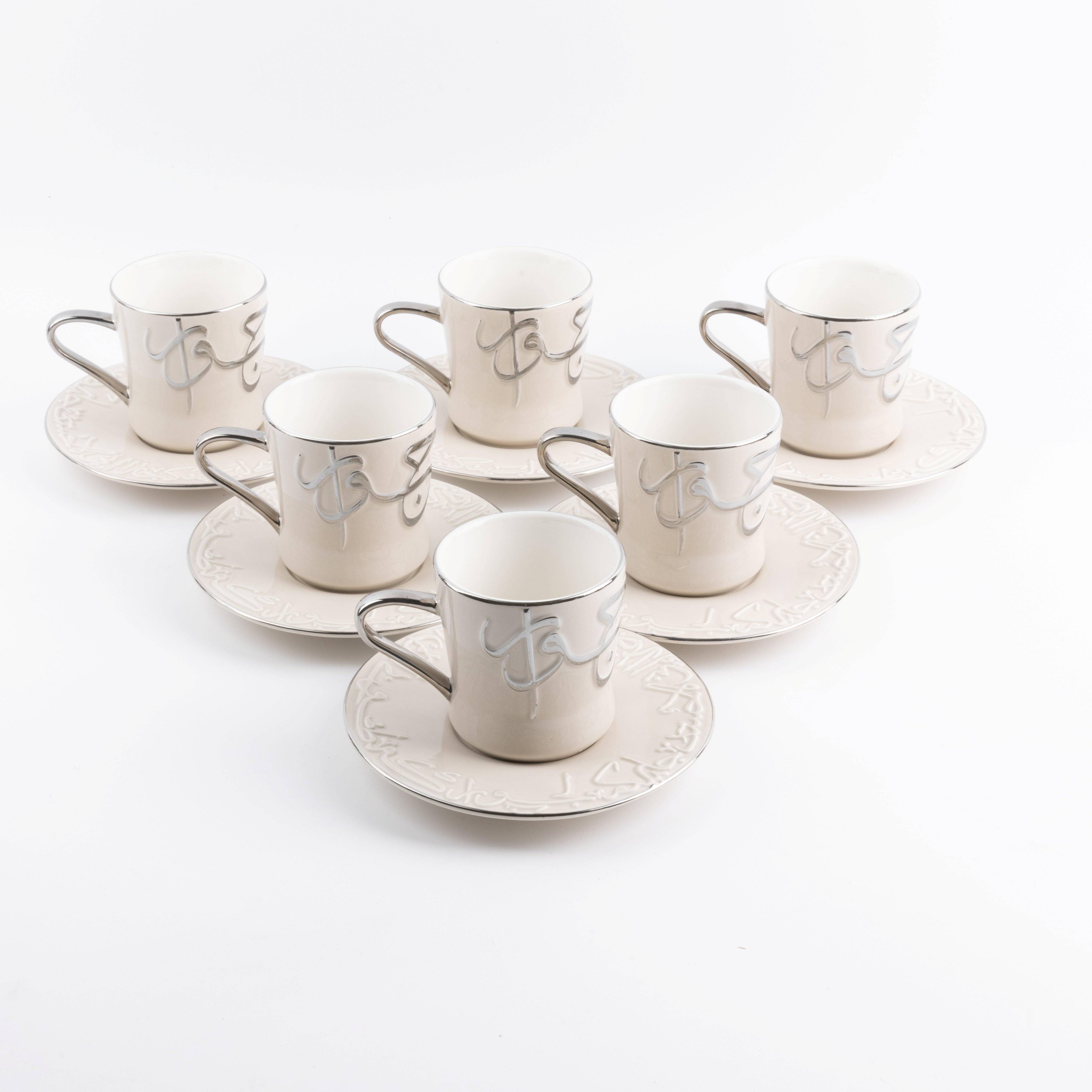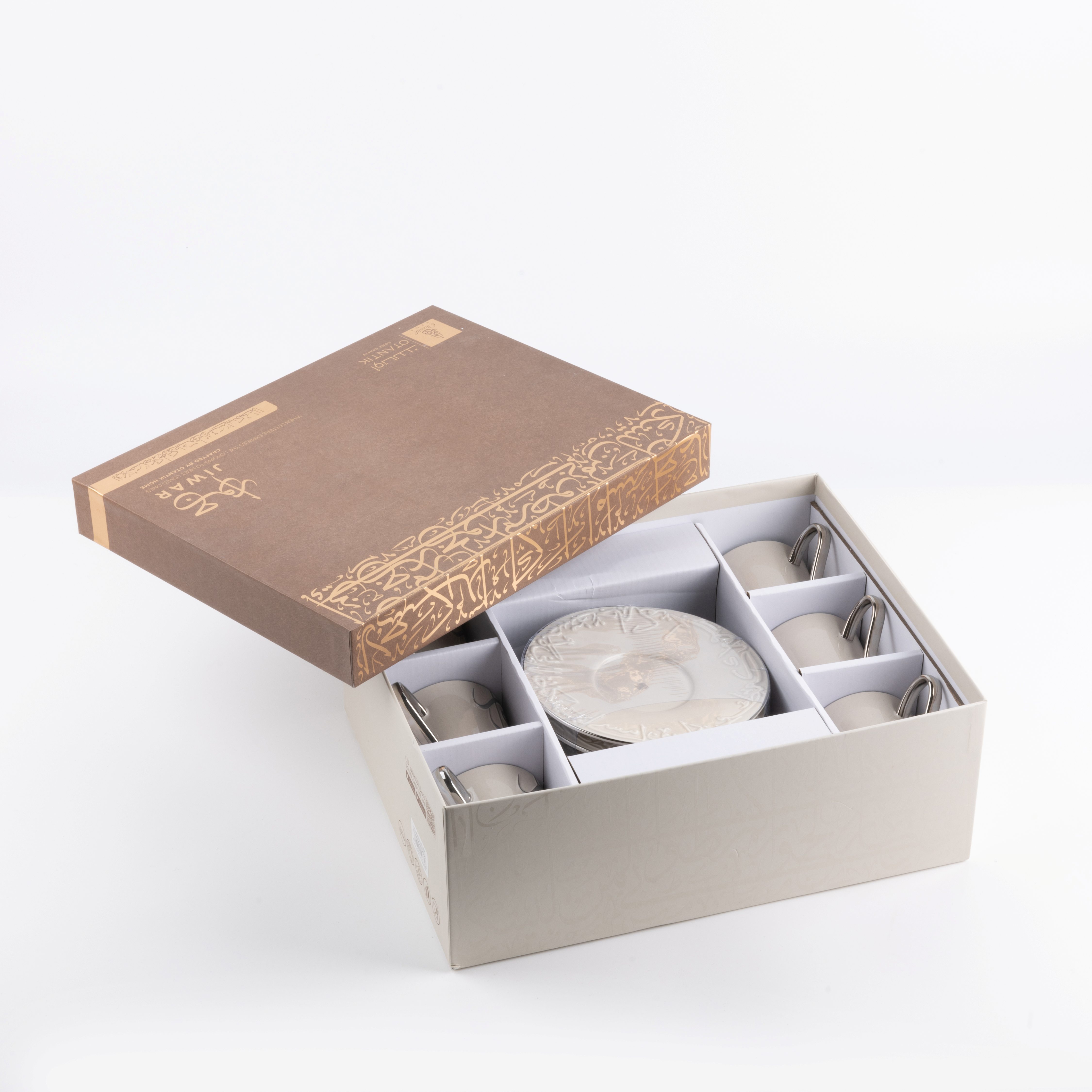 Porcelain Tea Set 12 Pcs From Jiwar - Beige + Silver